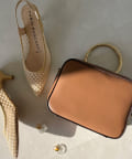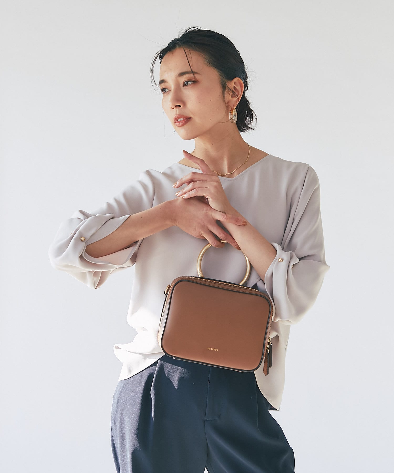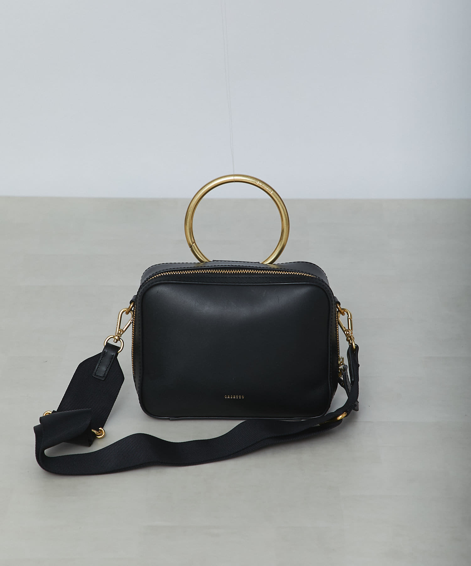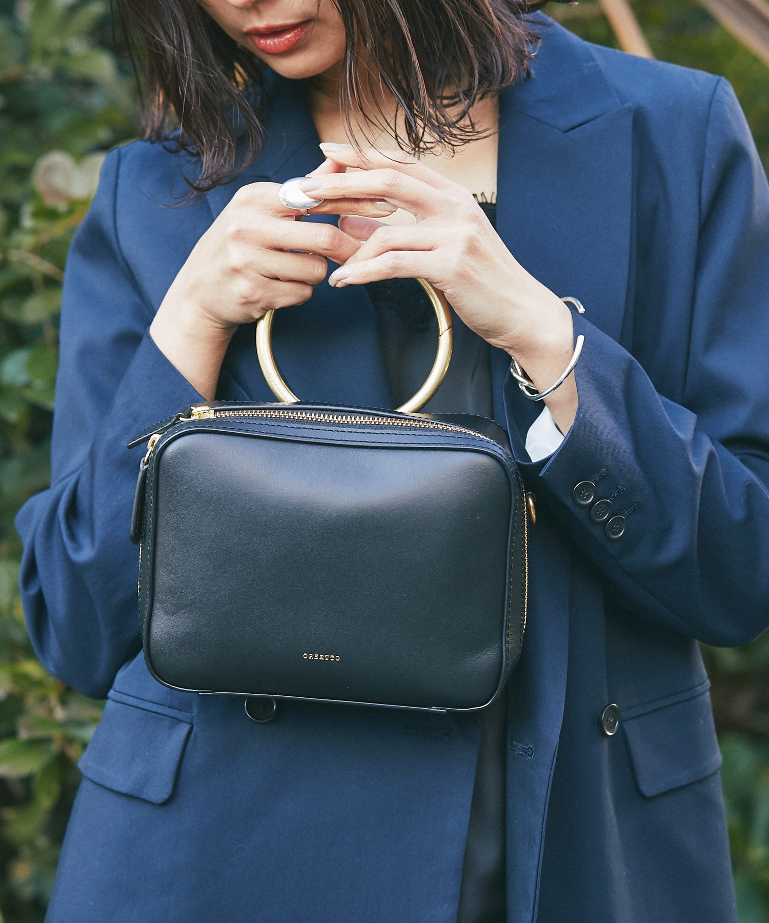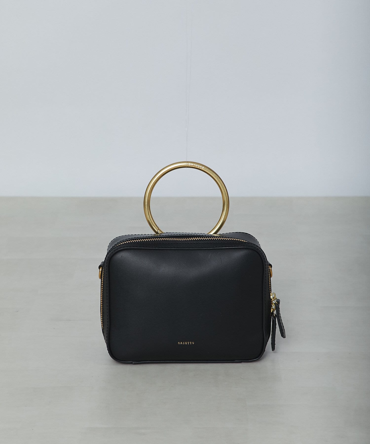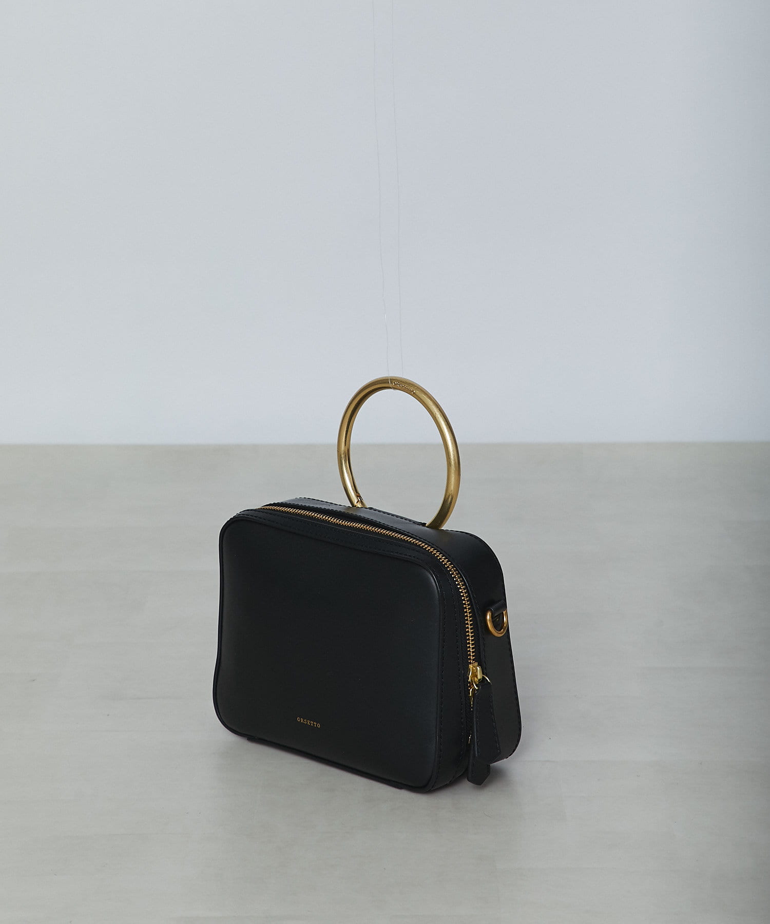 持ち手のゴールドリングがアクセントになっているバッグ。