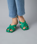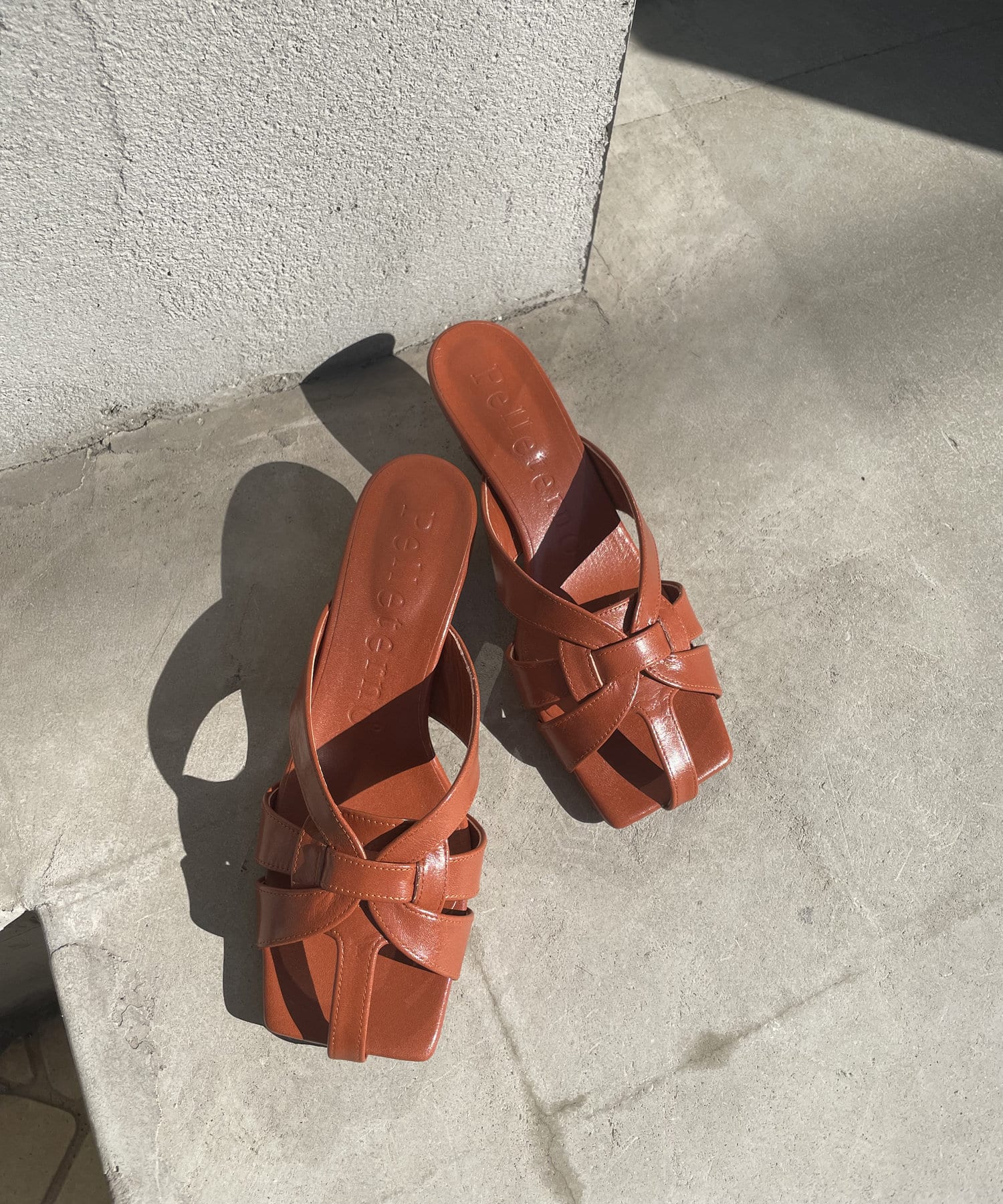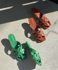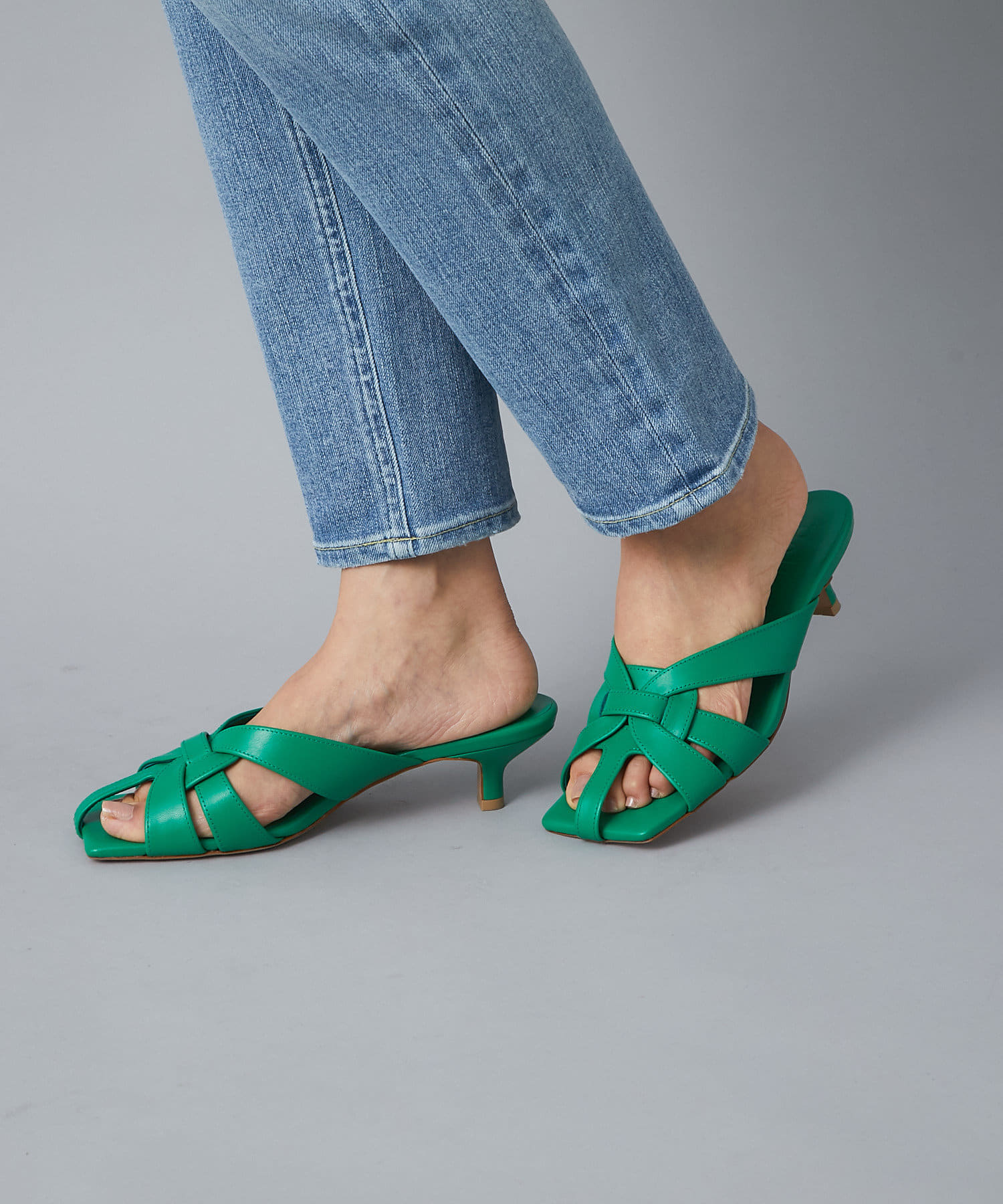 編みデザインで今シーズンらしいPelleternoのカラーミュール