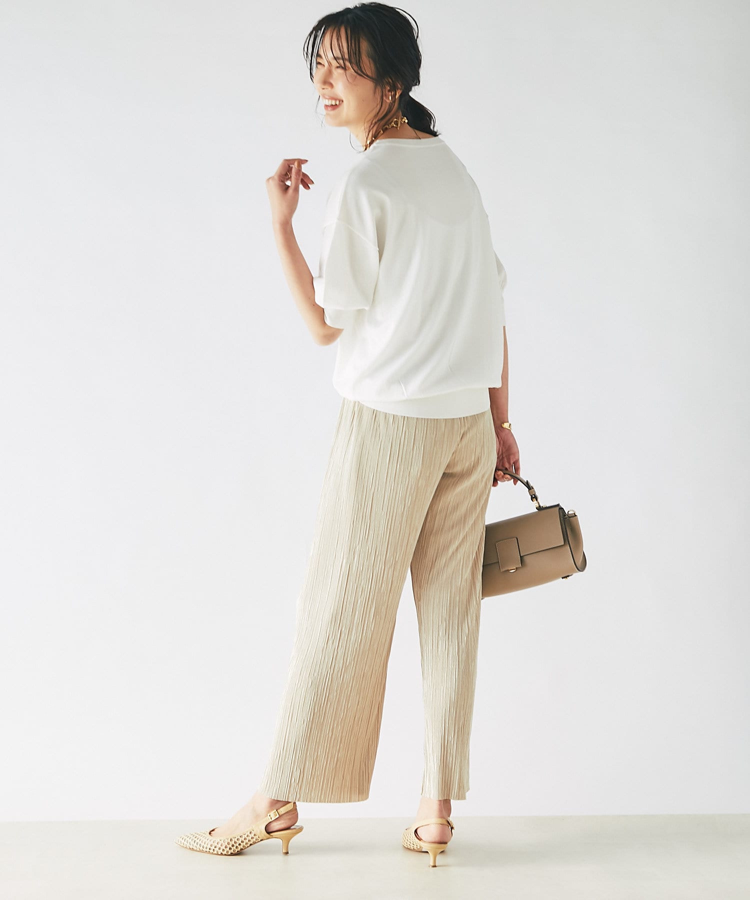 さりげない肌見せが大人のスタイリングにワンランク上のオシャレを楽しめます。