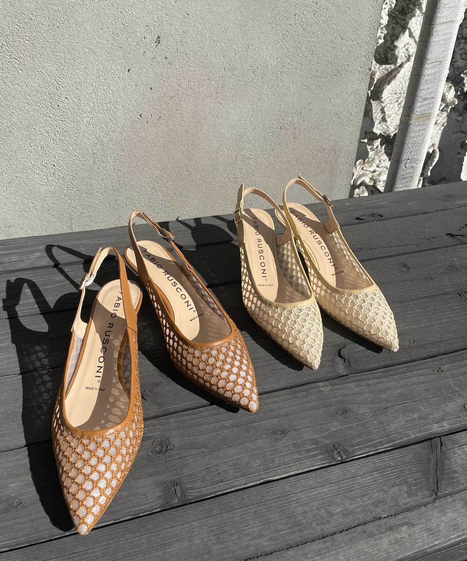 【FABIO RUSCONI】メッシュバックストラップパンプス