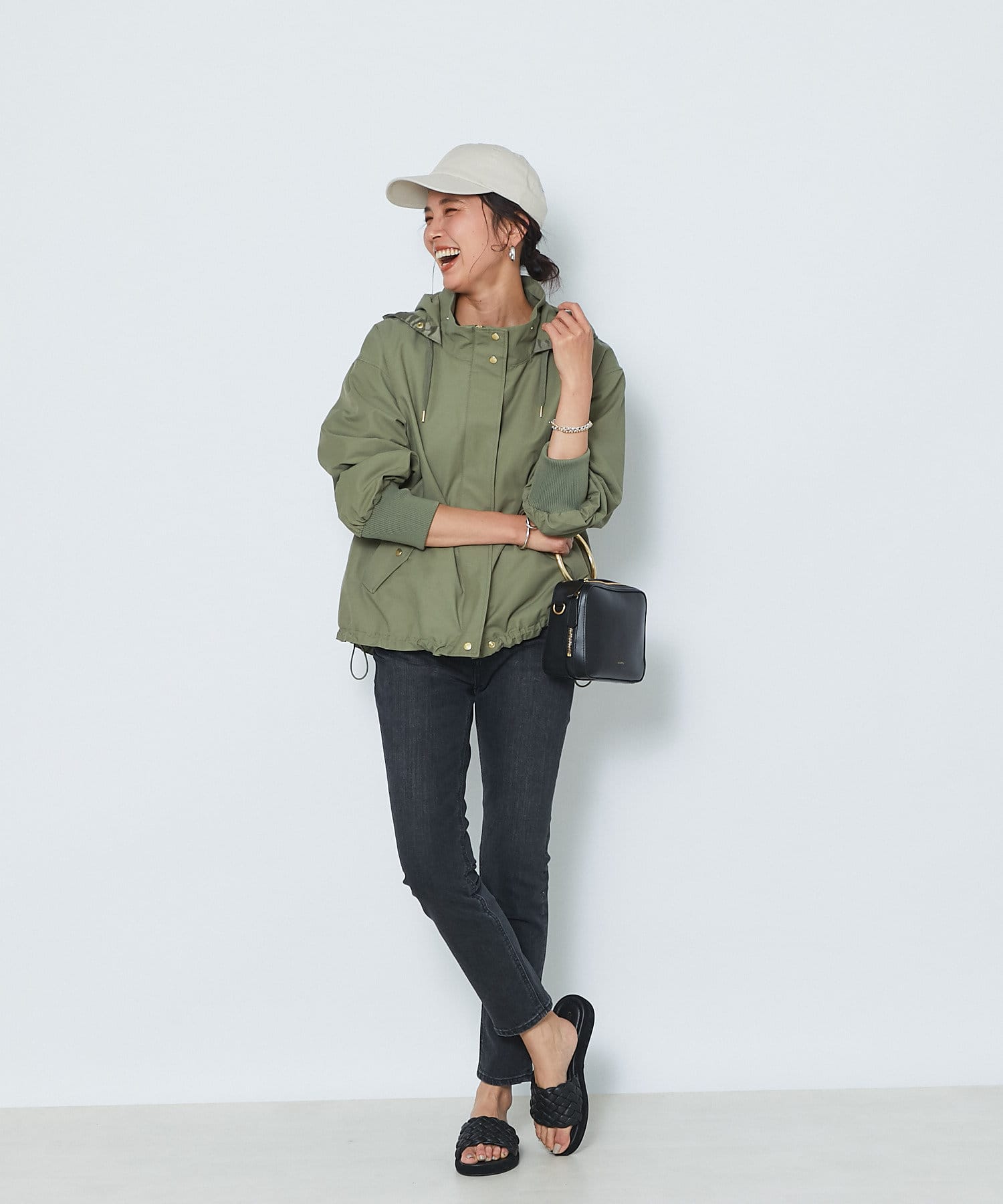 トレンドのグリーンアイテムは、深みのある落ち着いた色味で大人っぽさも兼ね備えている点は嬉しいポイント。タウンユースはもちろん、アウトドアシーンでも活躍すること間違いなしのアイテムです。