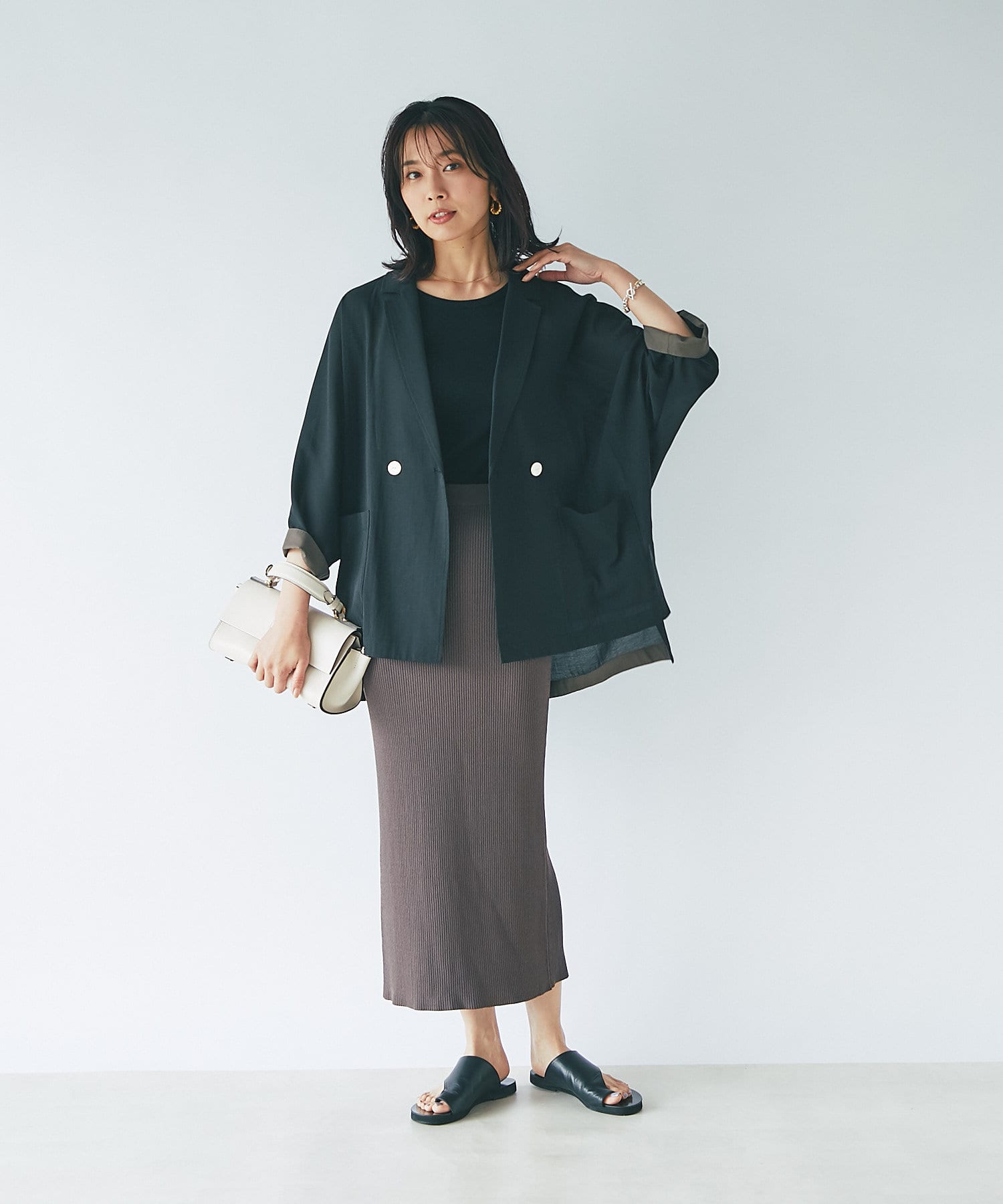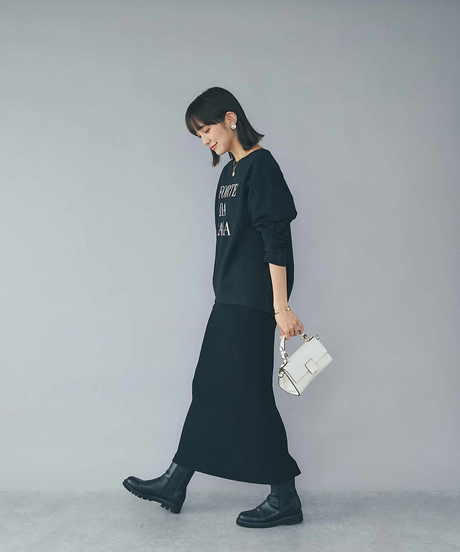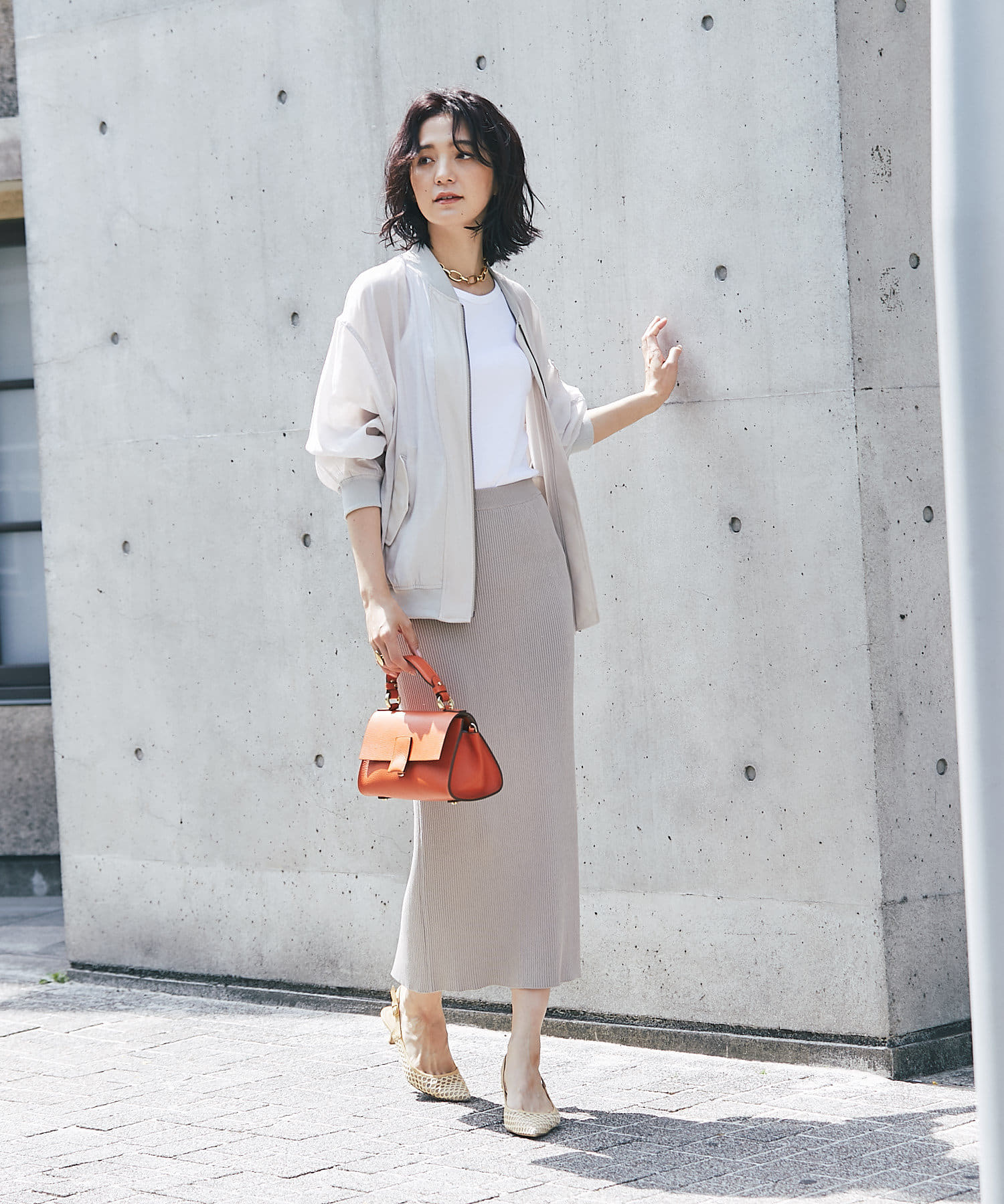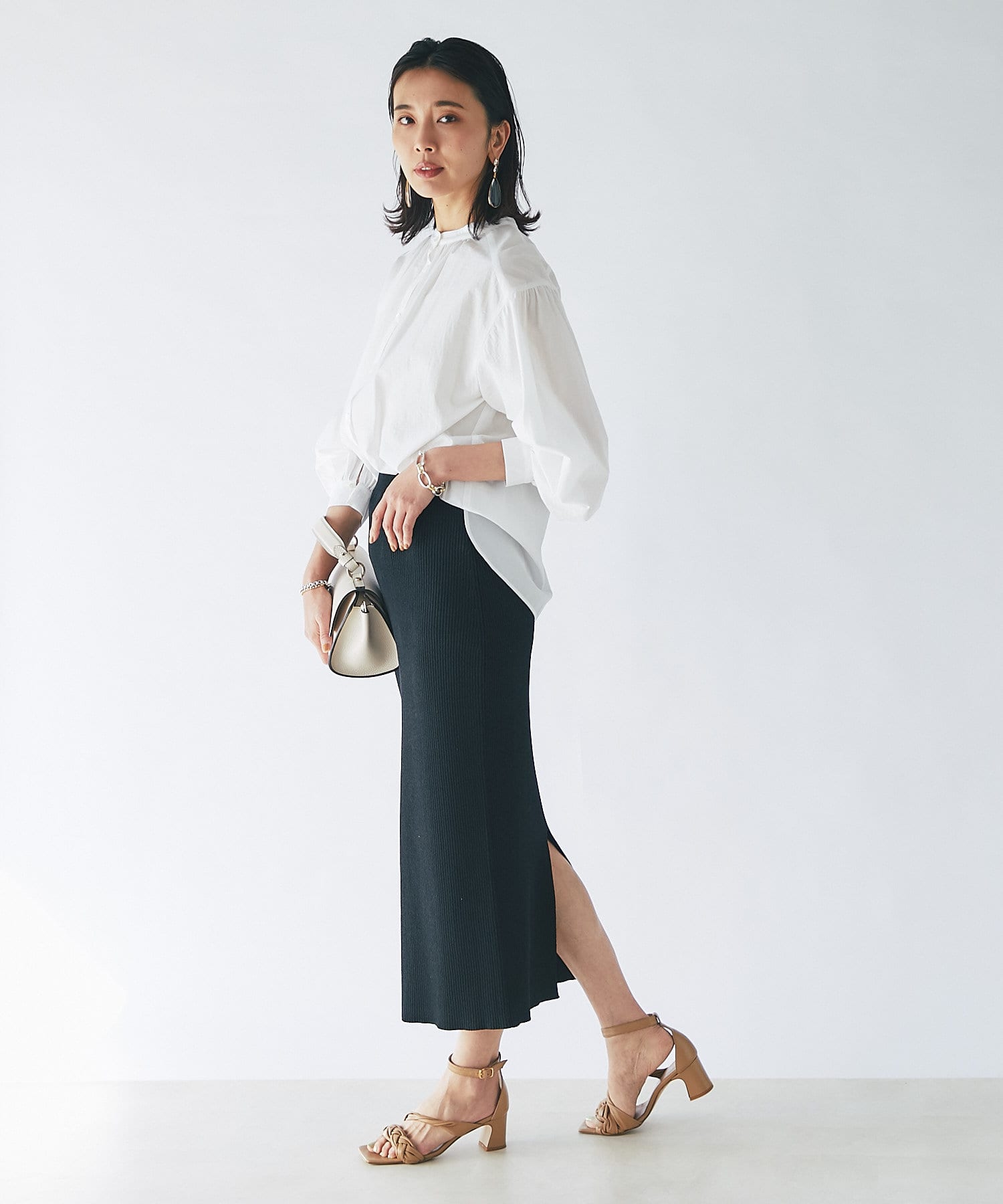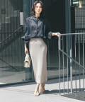 Iラインシルエットのスカートは細見えしつつストレッチ性もあり、