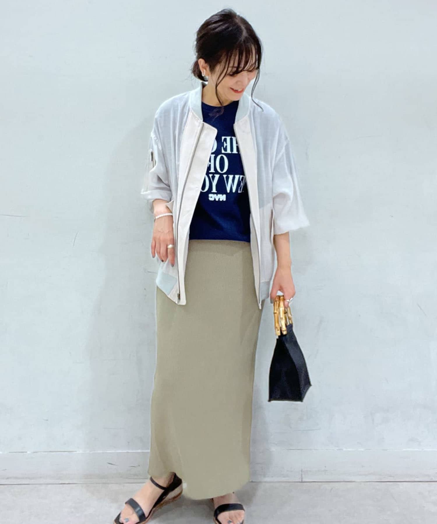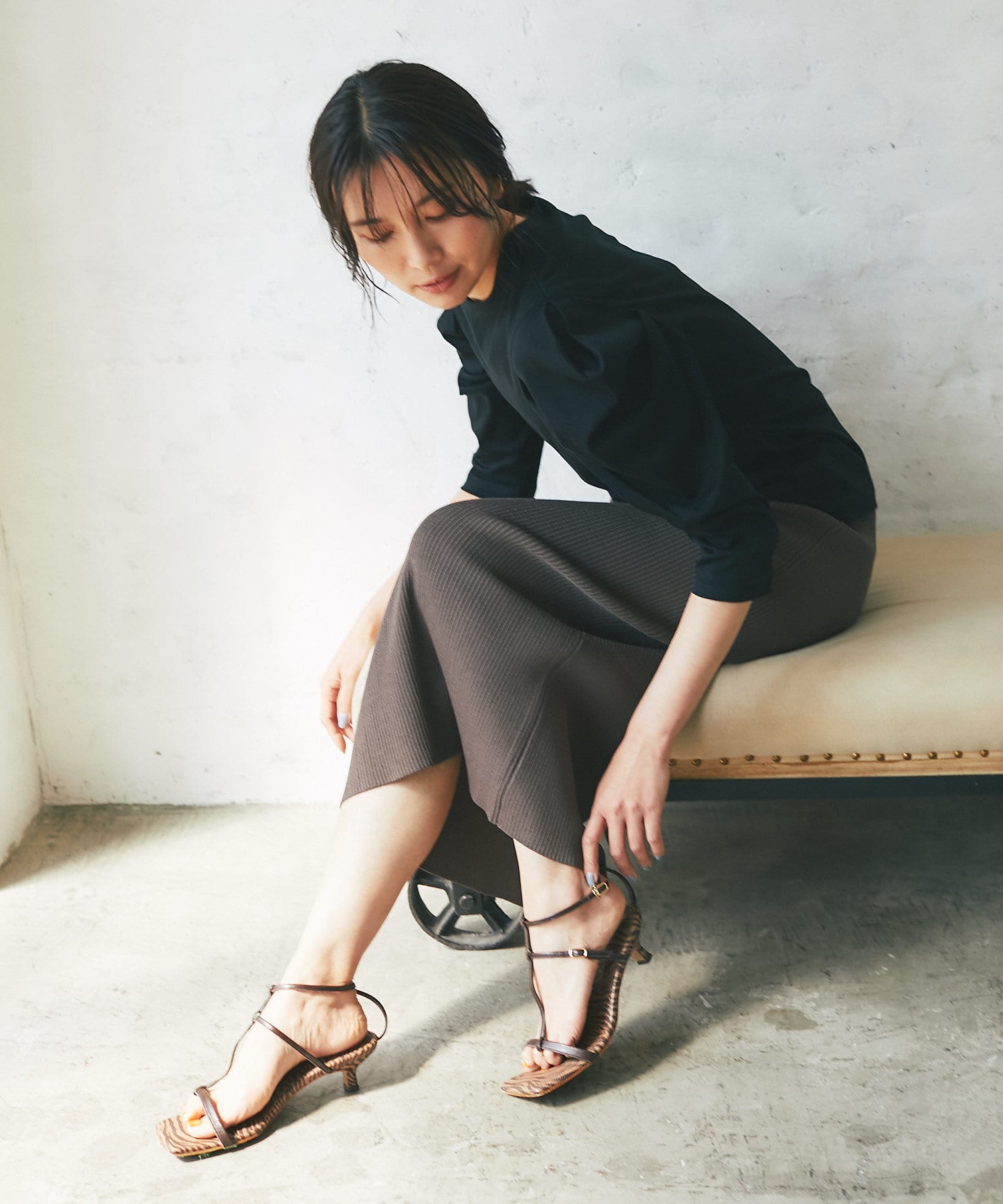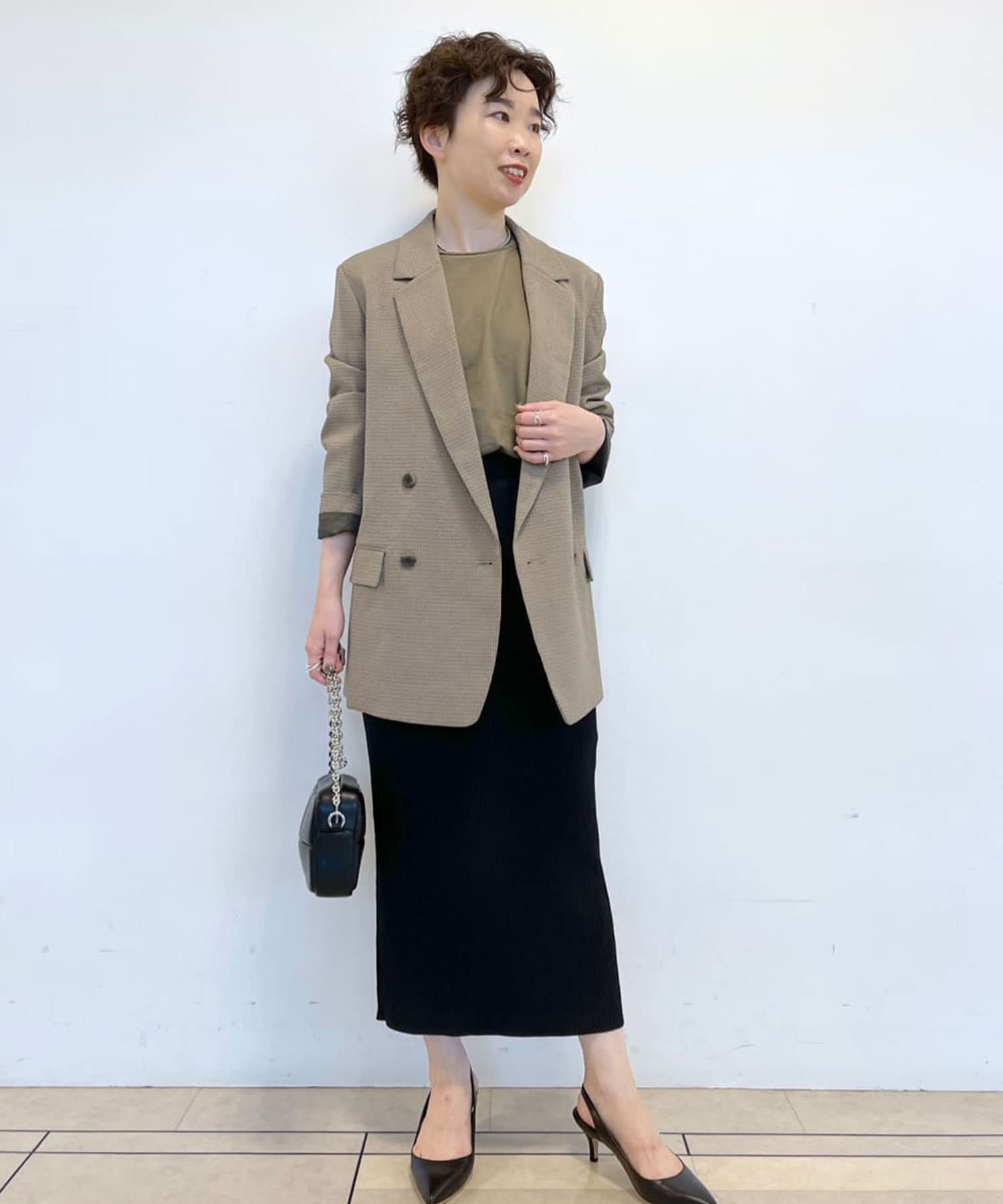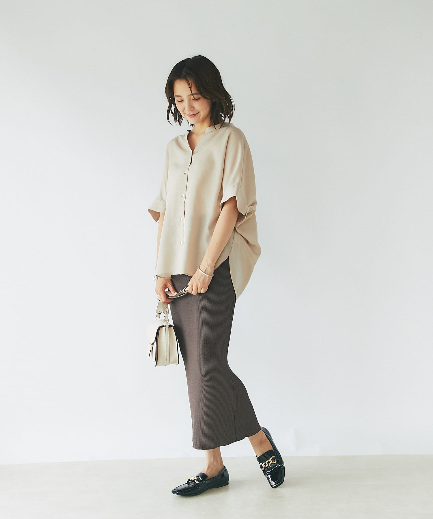 Iラインシルエットのスカートは細見えしつつストレッチ性もあり、