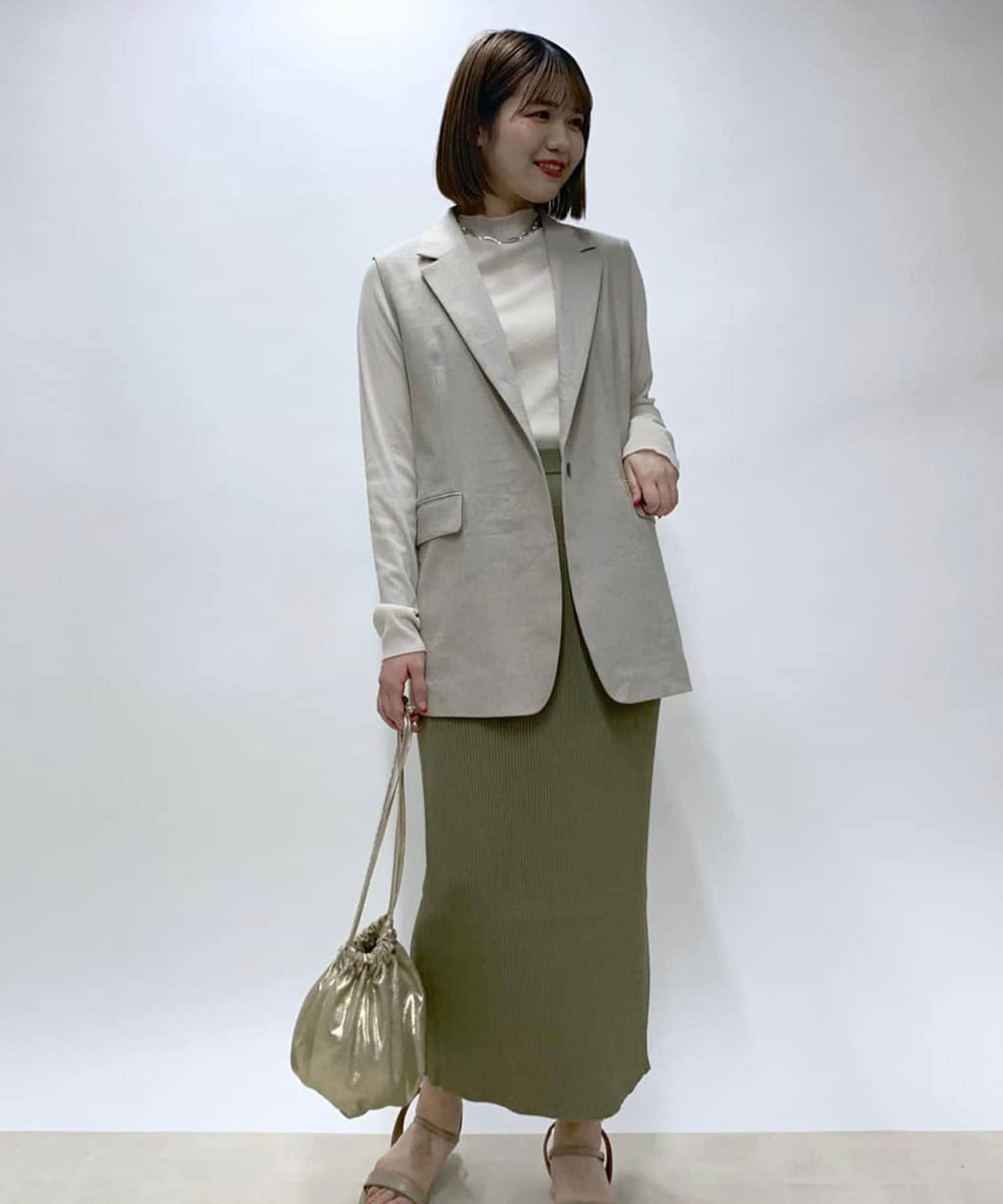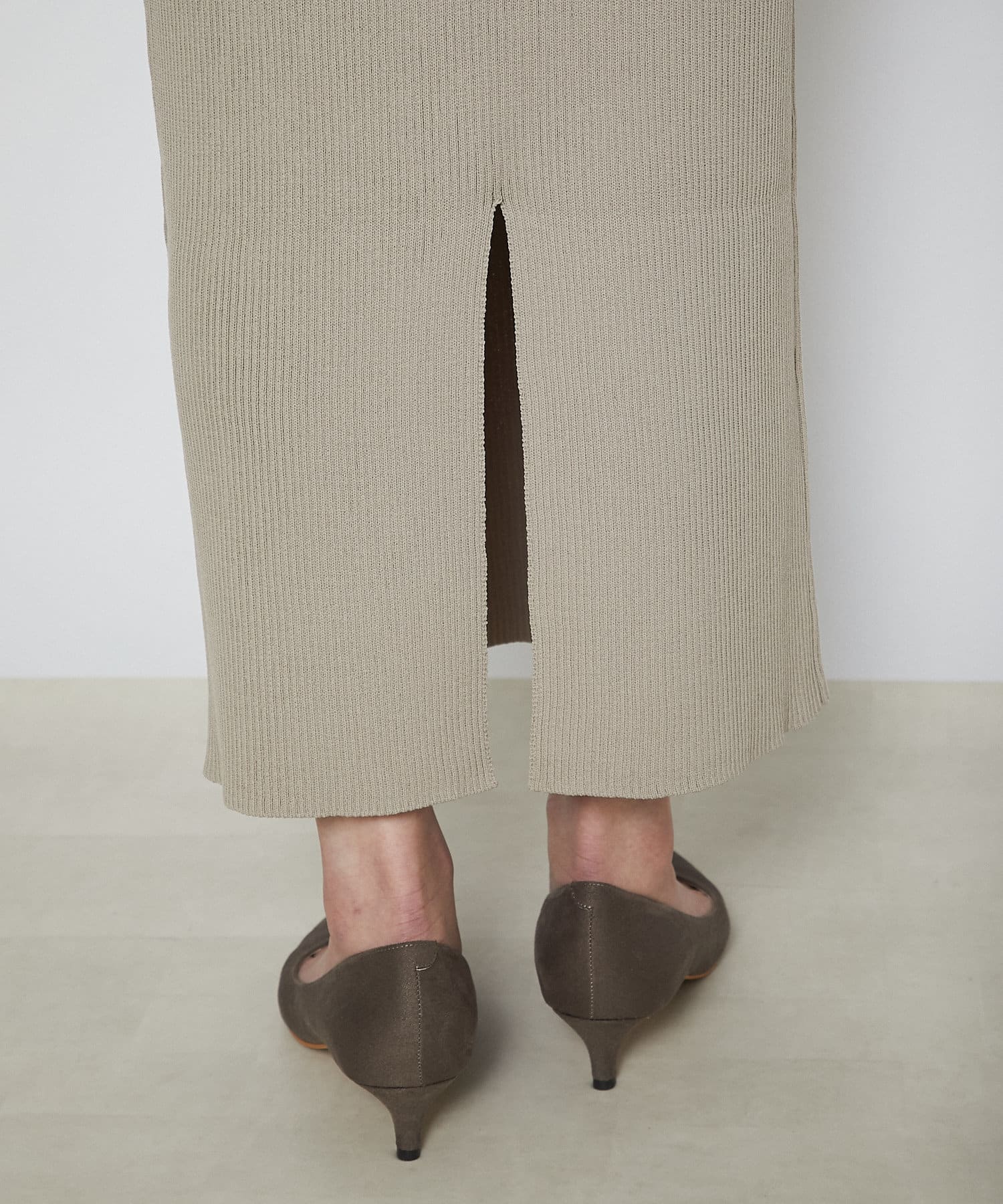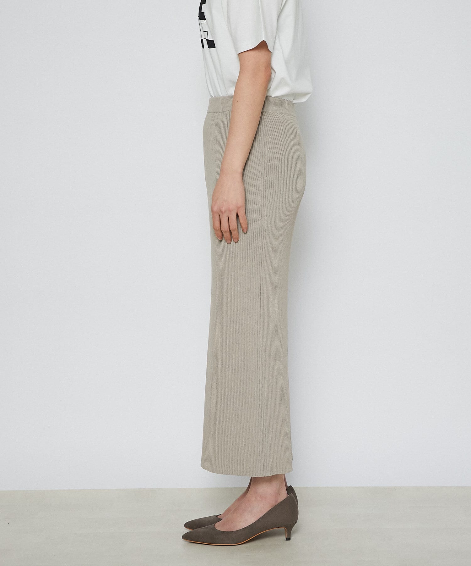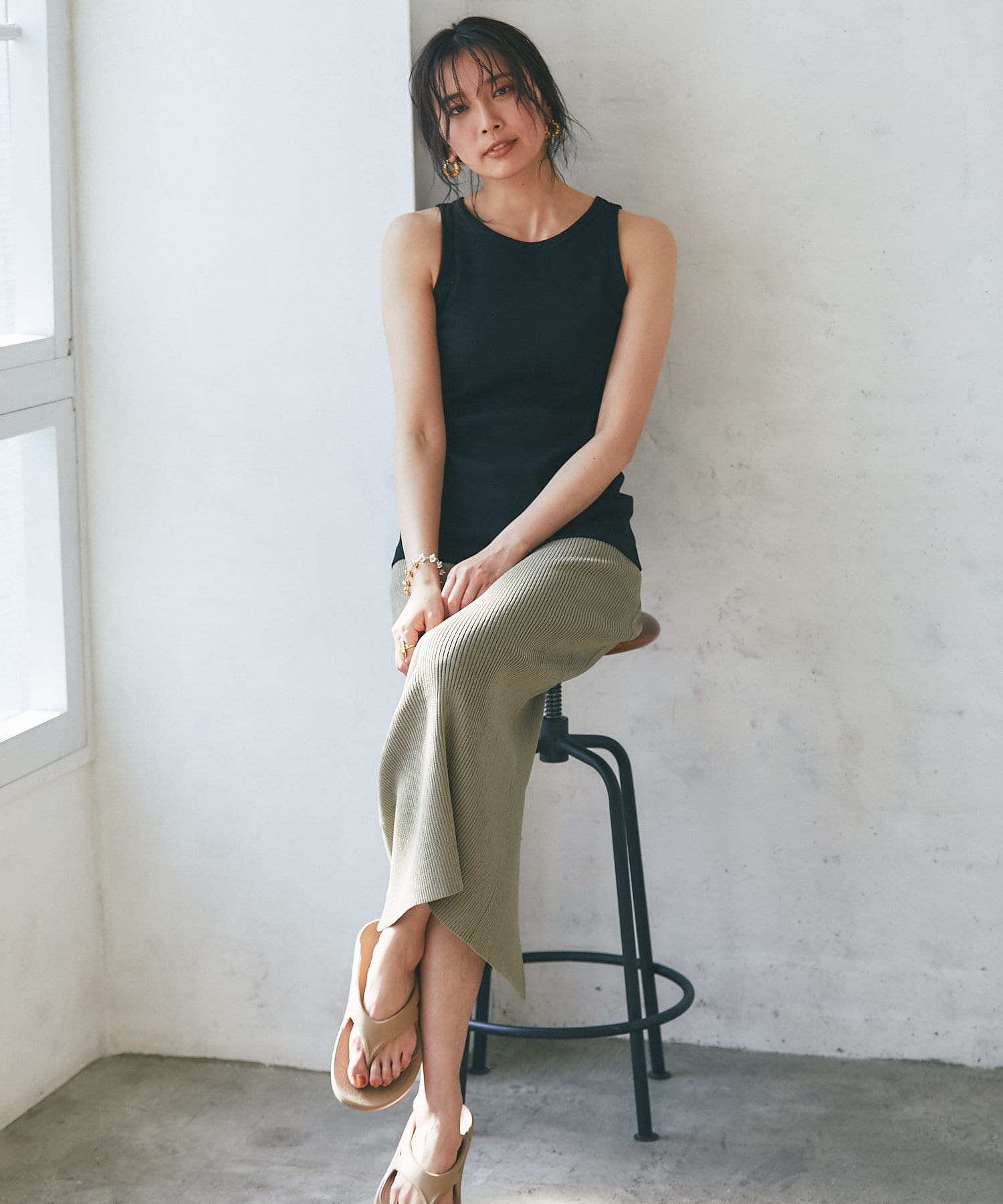 履き心地抜群なリブタイトスカート。ストレッチが効いているのでIラインシルエットですがとても動きやすいです!38サイズを着用し、足首上の長さです。普段使いしやすいベージュとブラックはもちろん、春夏に履きたい鮮やかなグリーンもかなりオススメ◎