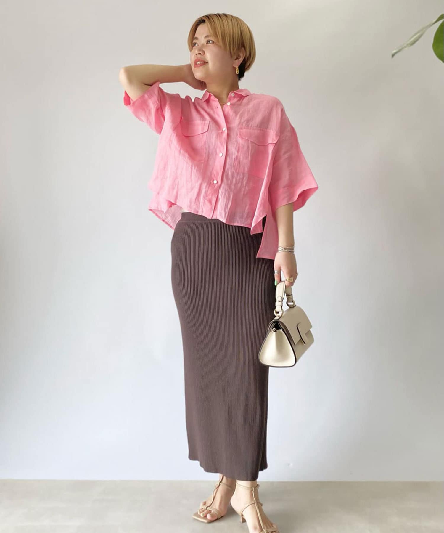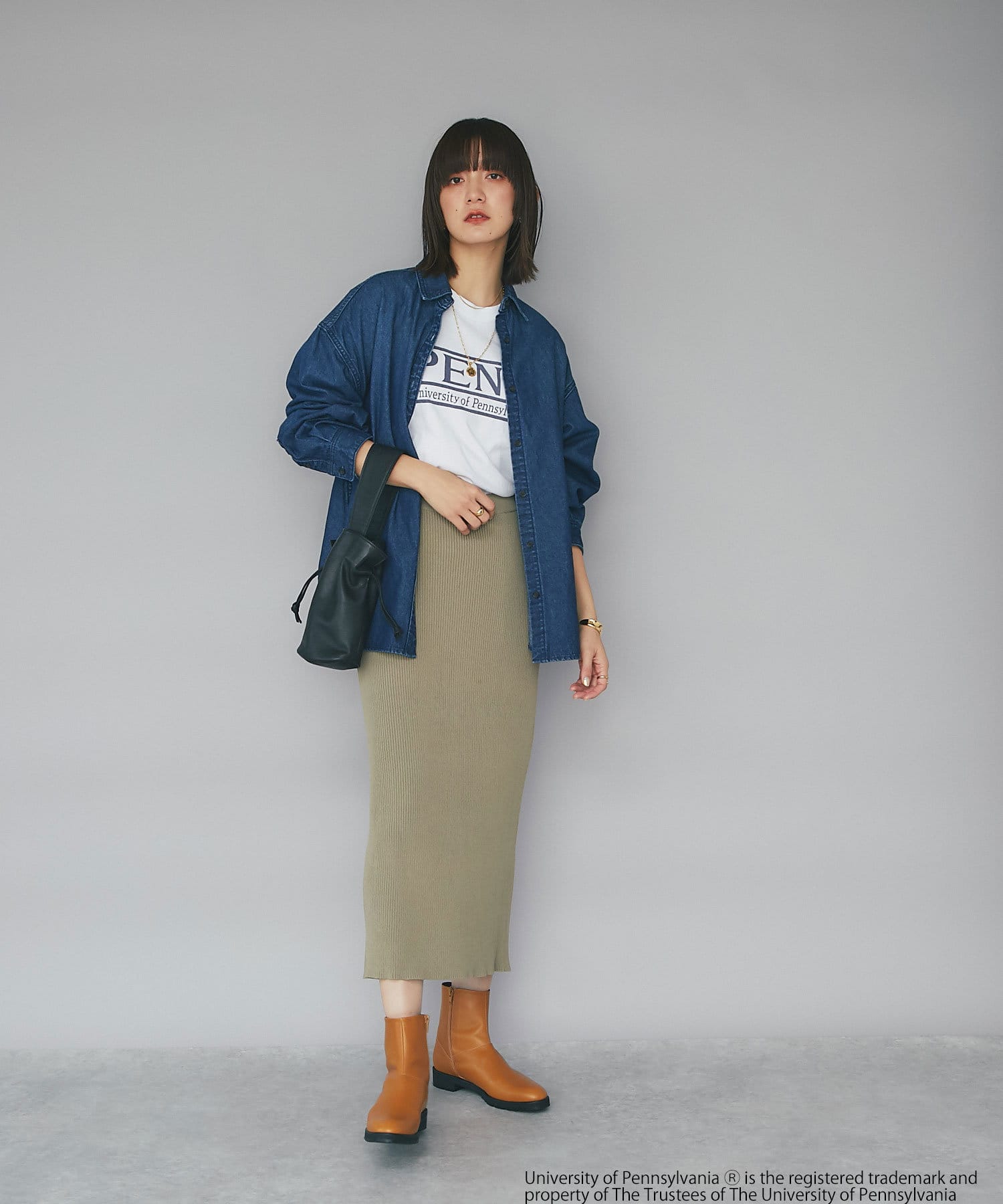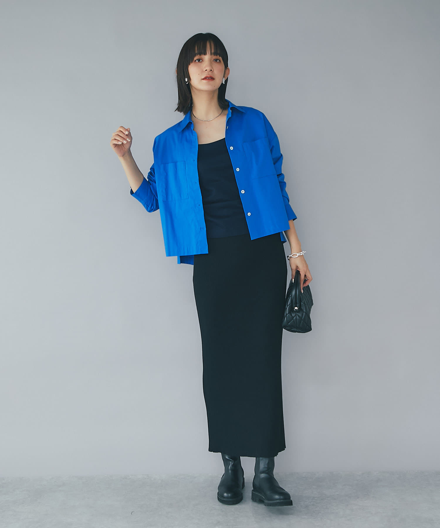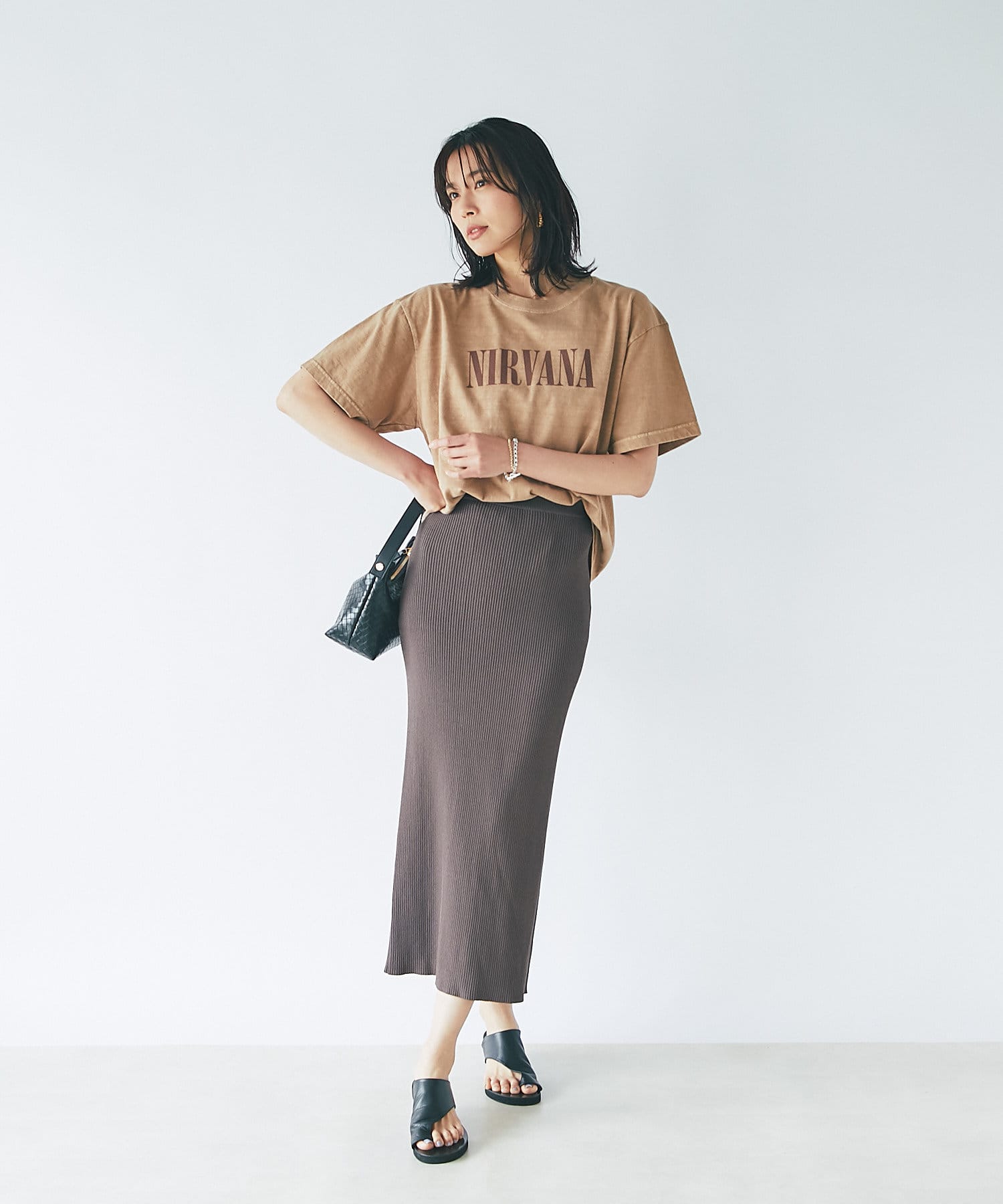 履き心地抜群なリブタイトスカート。ストレッチが効いているのでIラインシルエットですがとても動きやすいです!38サイズを着用し、足首上の長さです。普段使いしやすいベージュとブラックはもちろん、春夏に履きたい鮮やかなグリーンもかなりオススメ◎