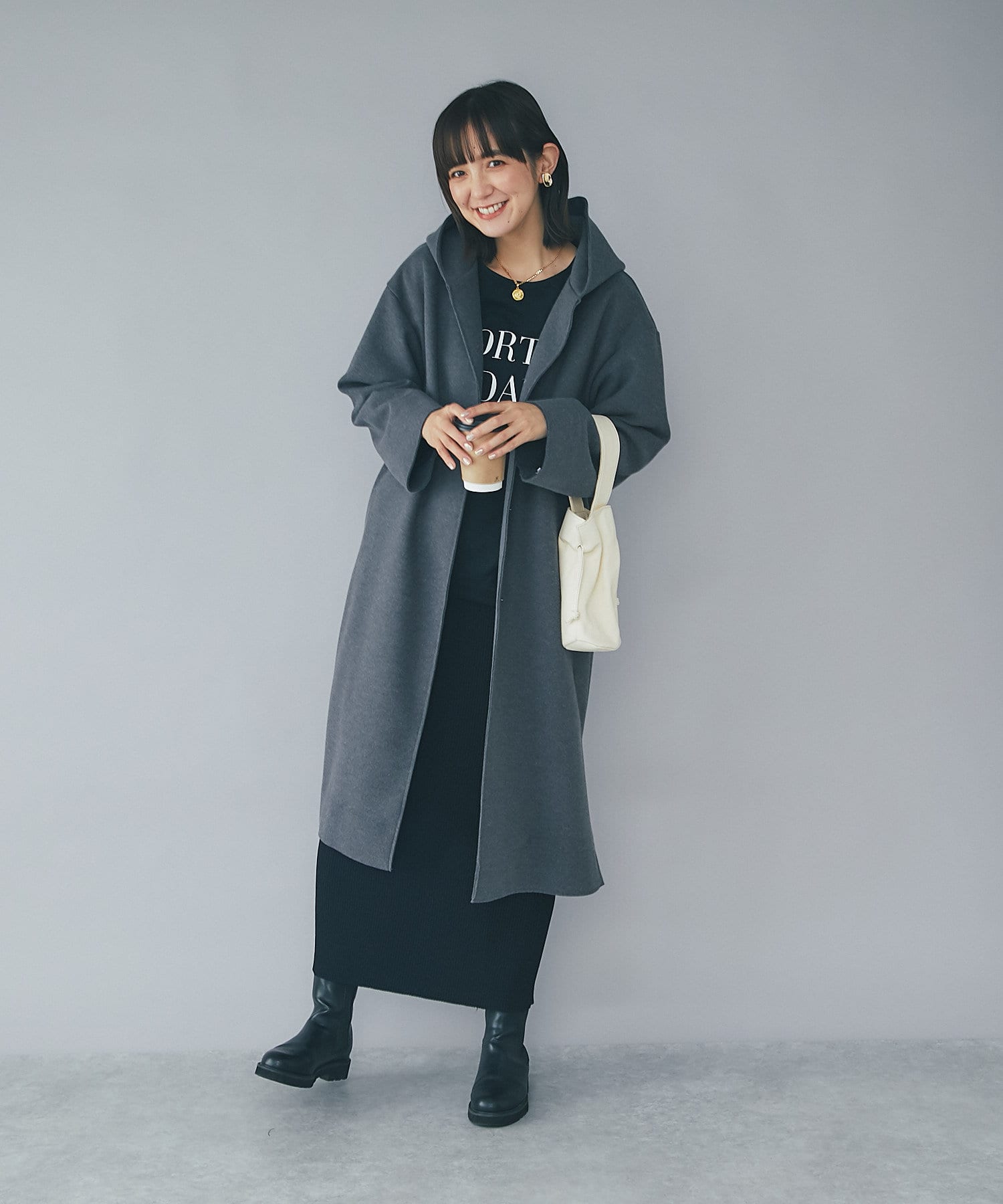 シンプルなデザインで、カジュアルからキレイめなスタイルまで活躍する一枚。