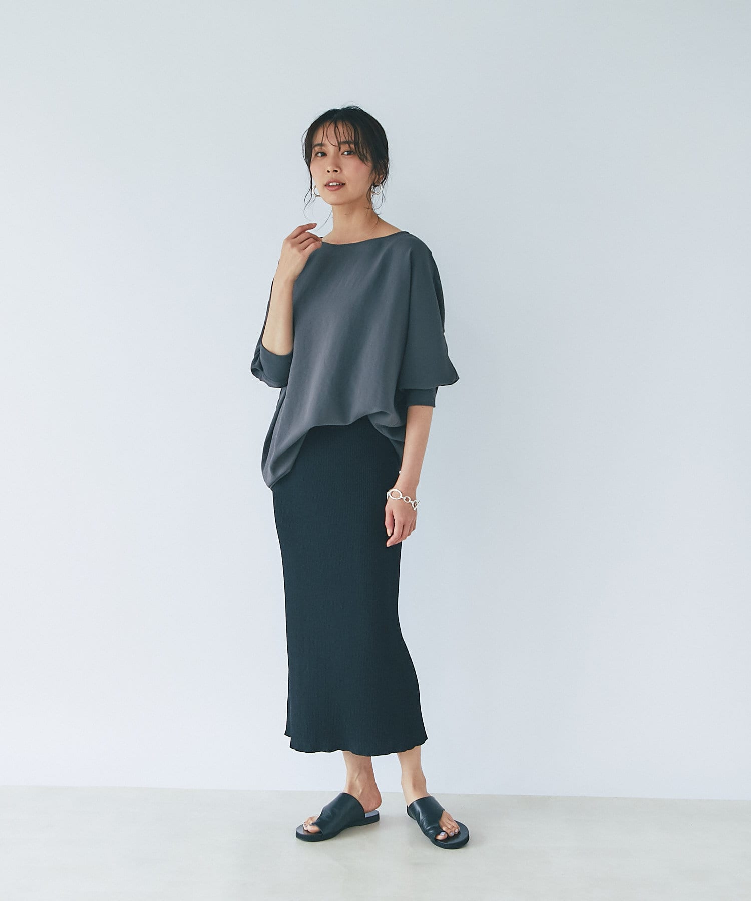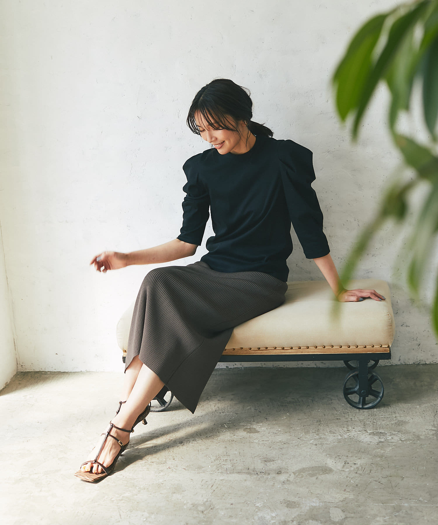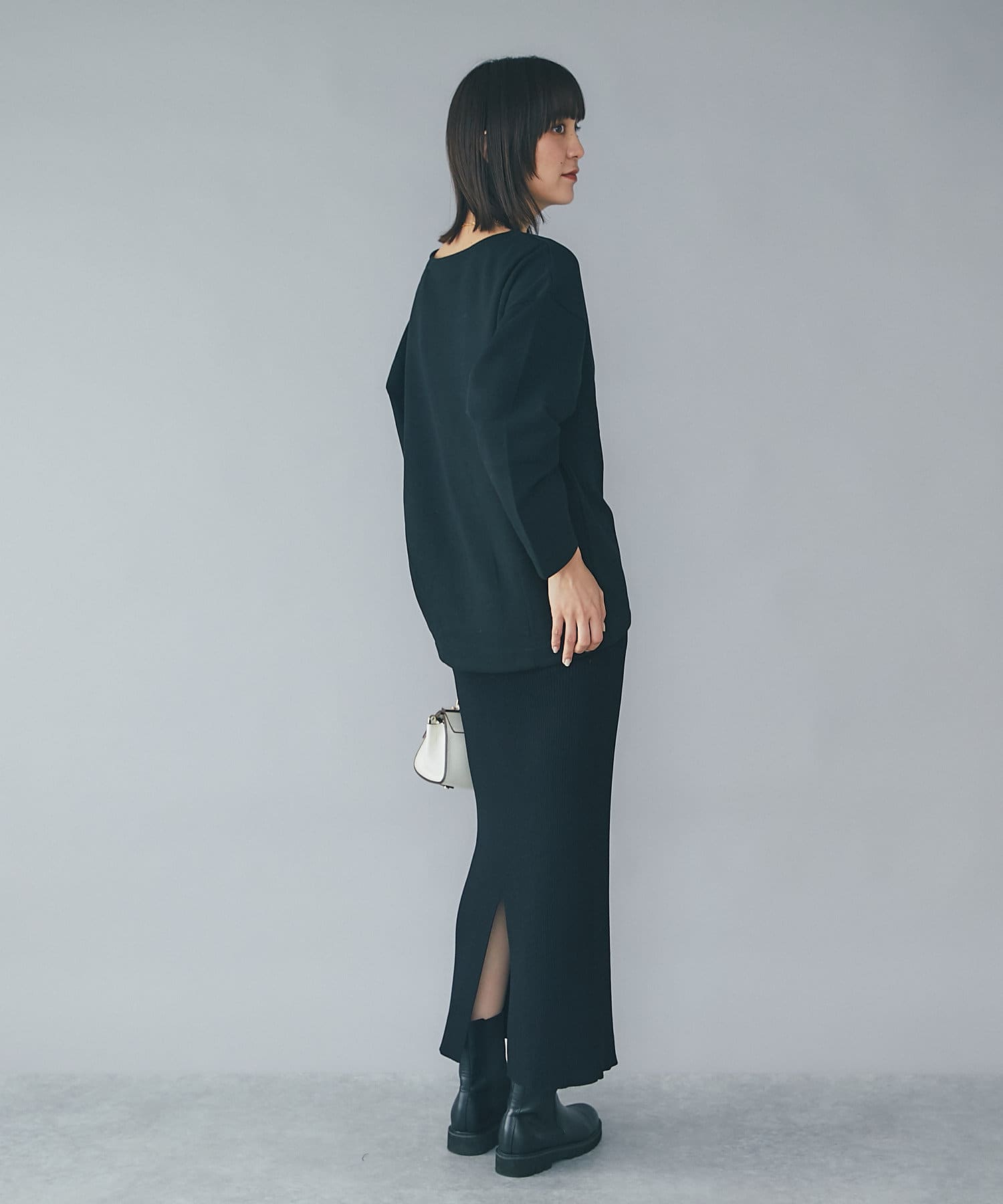 タイトシルエットでありながらも、ぴたぴたとした窮屈感はなく、リラクシーな着心地。