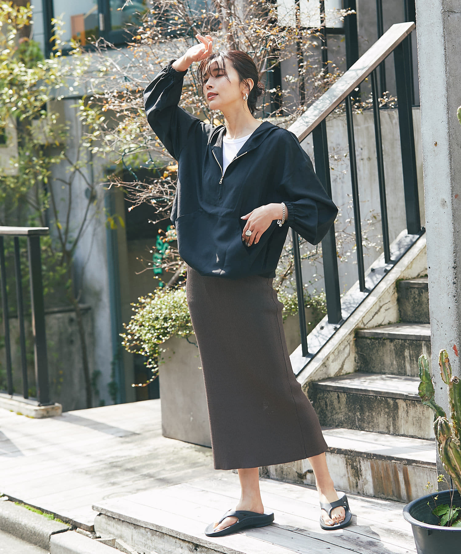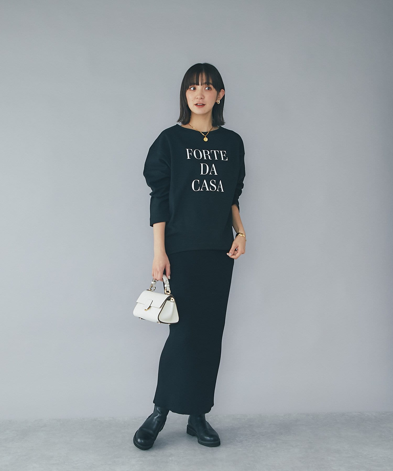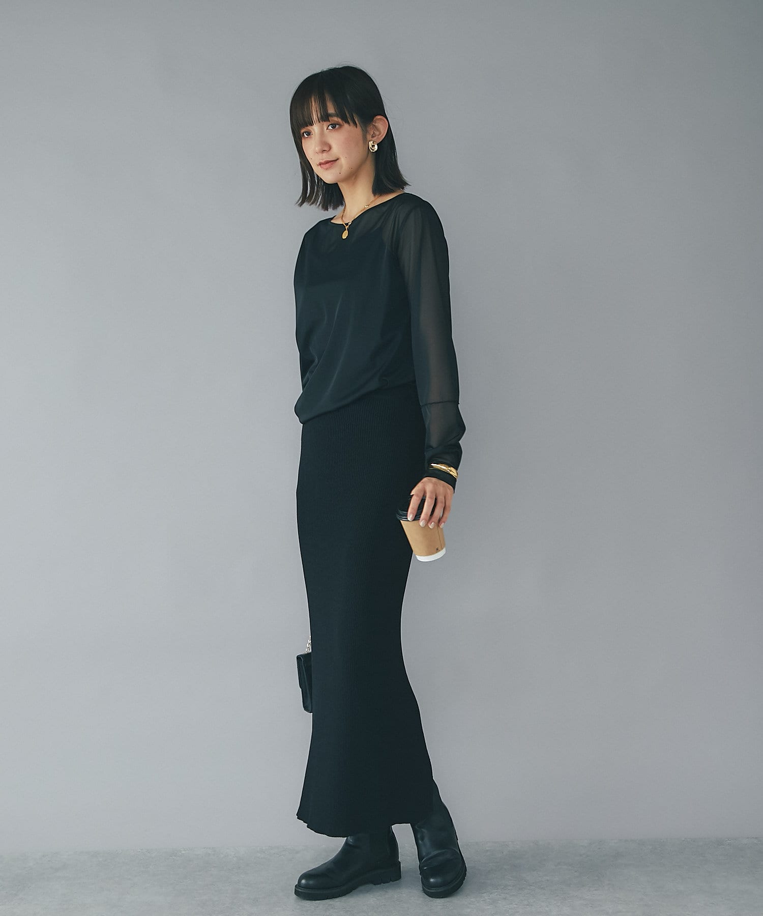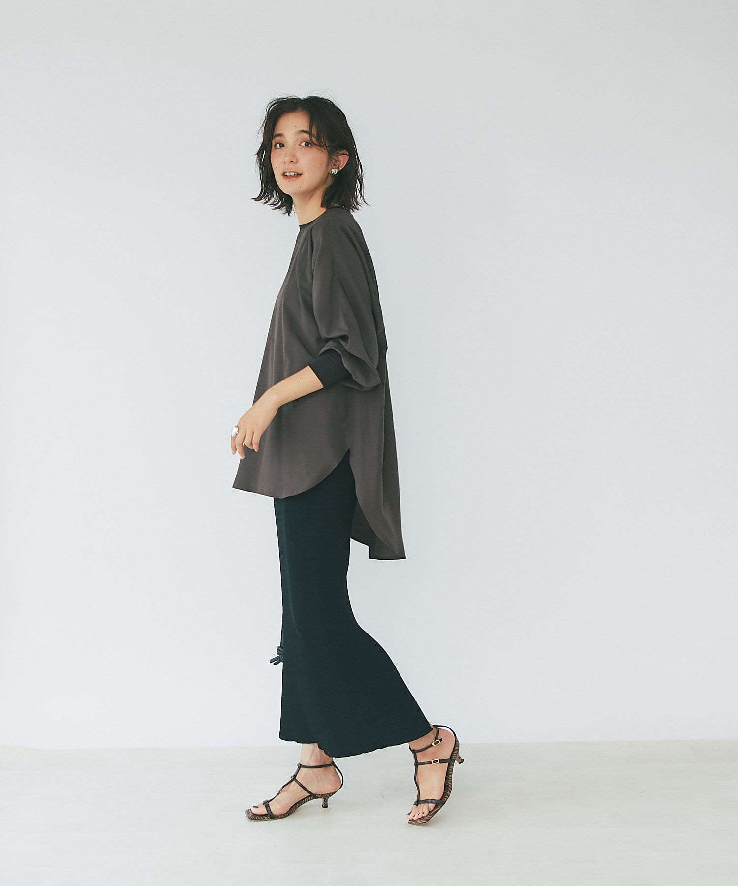タイトシルエットでありながらも、ぴたぴたとした窮屈感はなく、リラクシーな着心地。