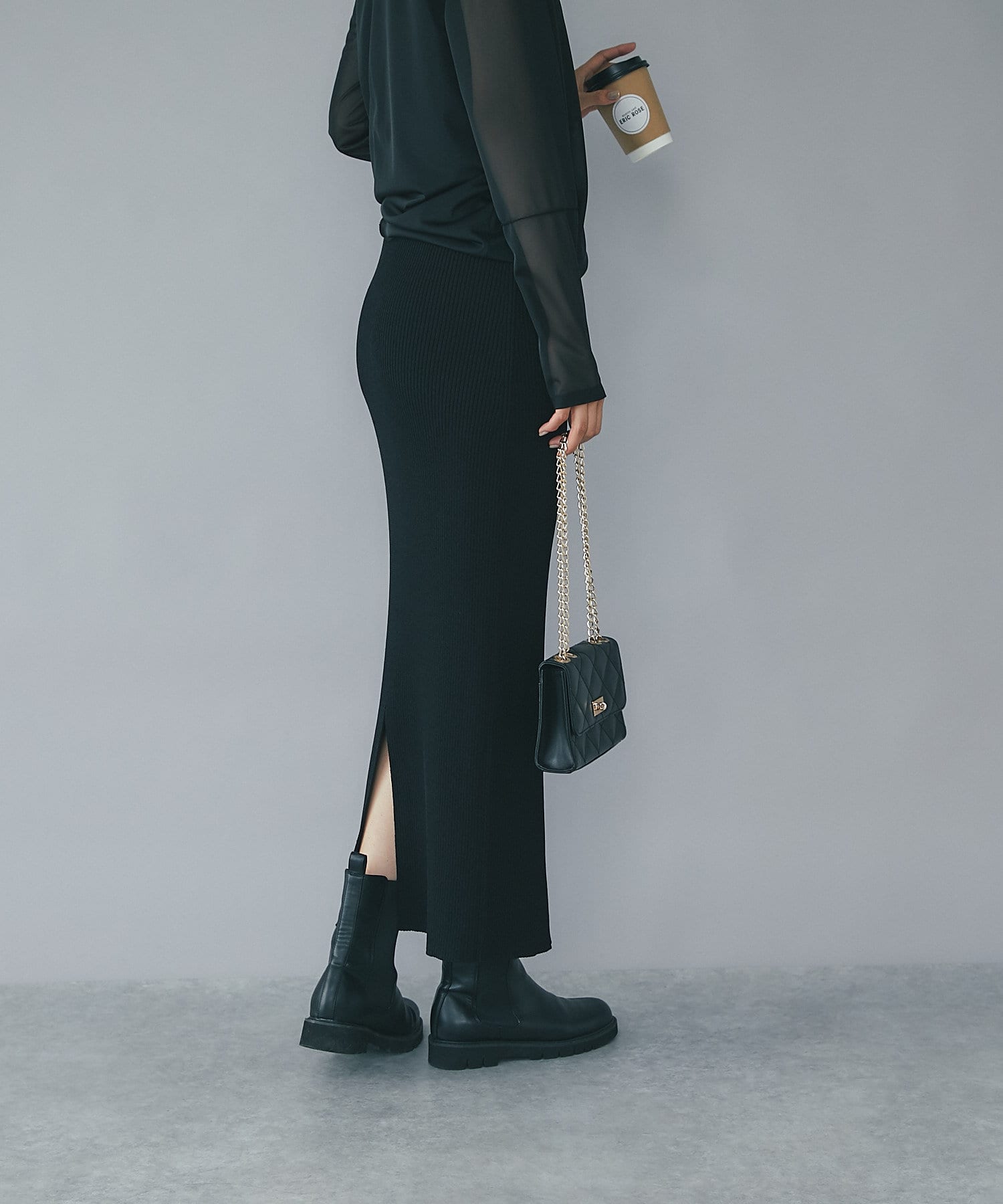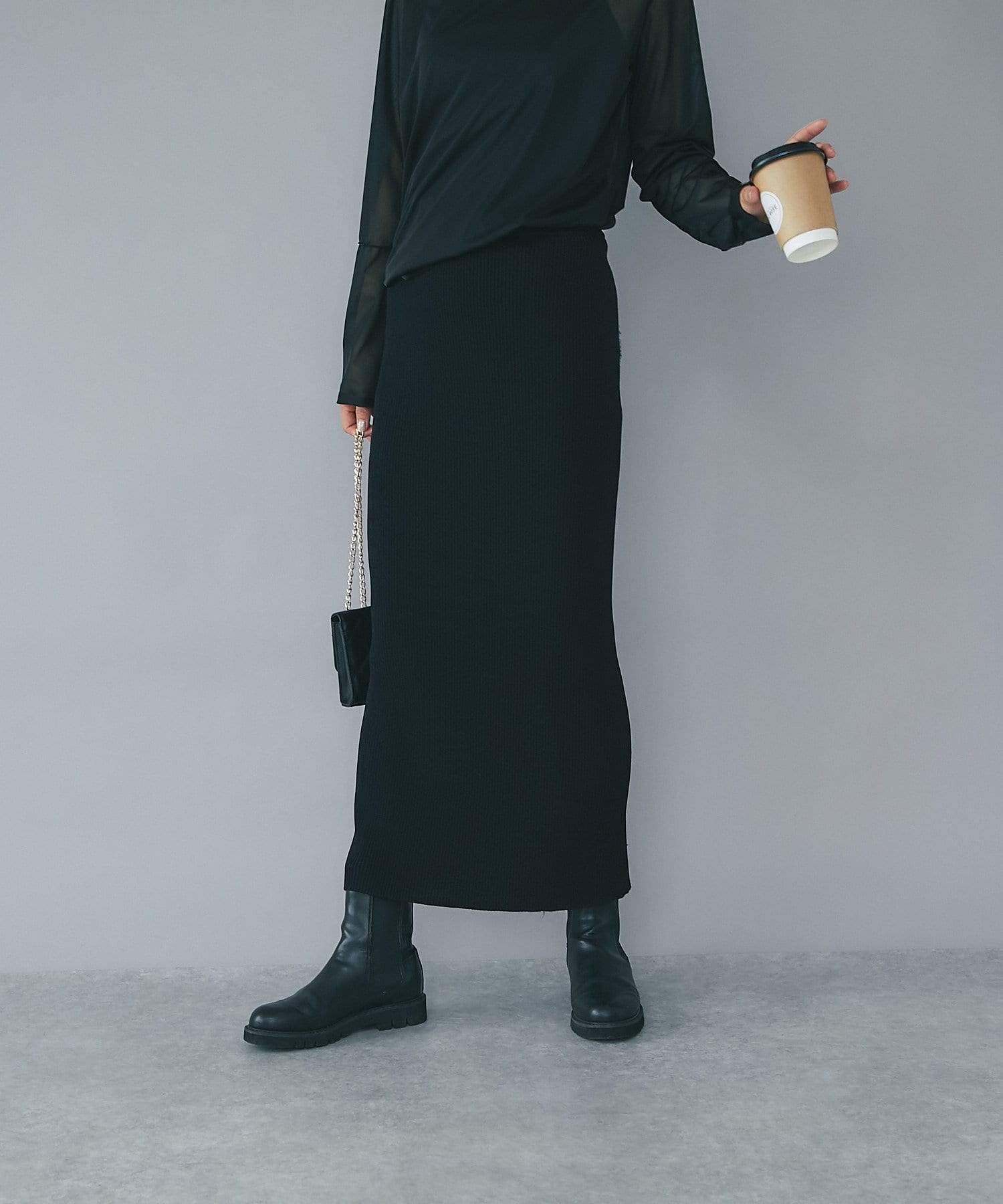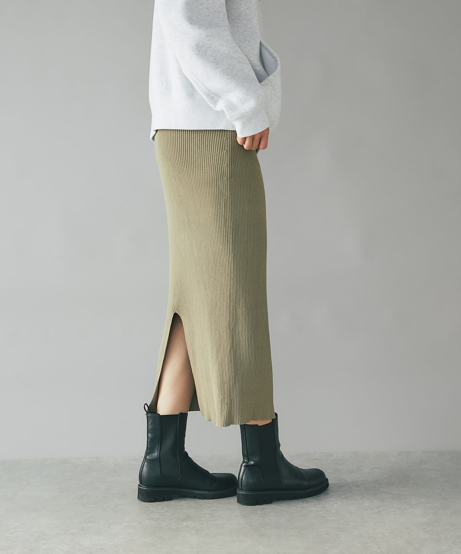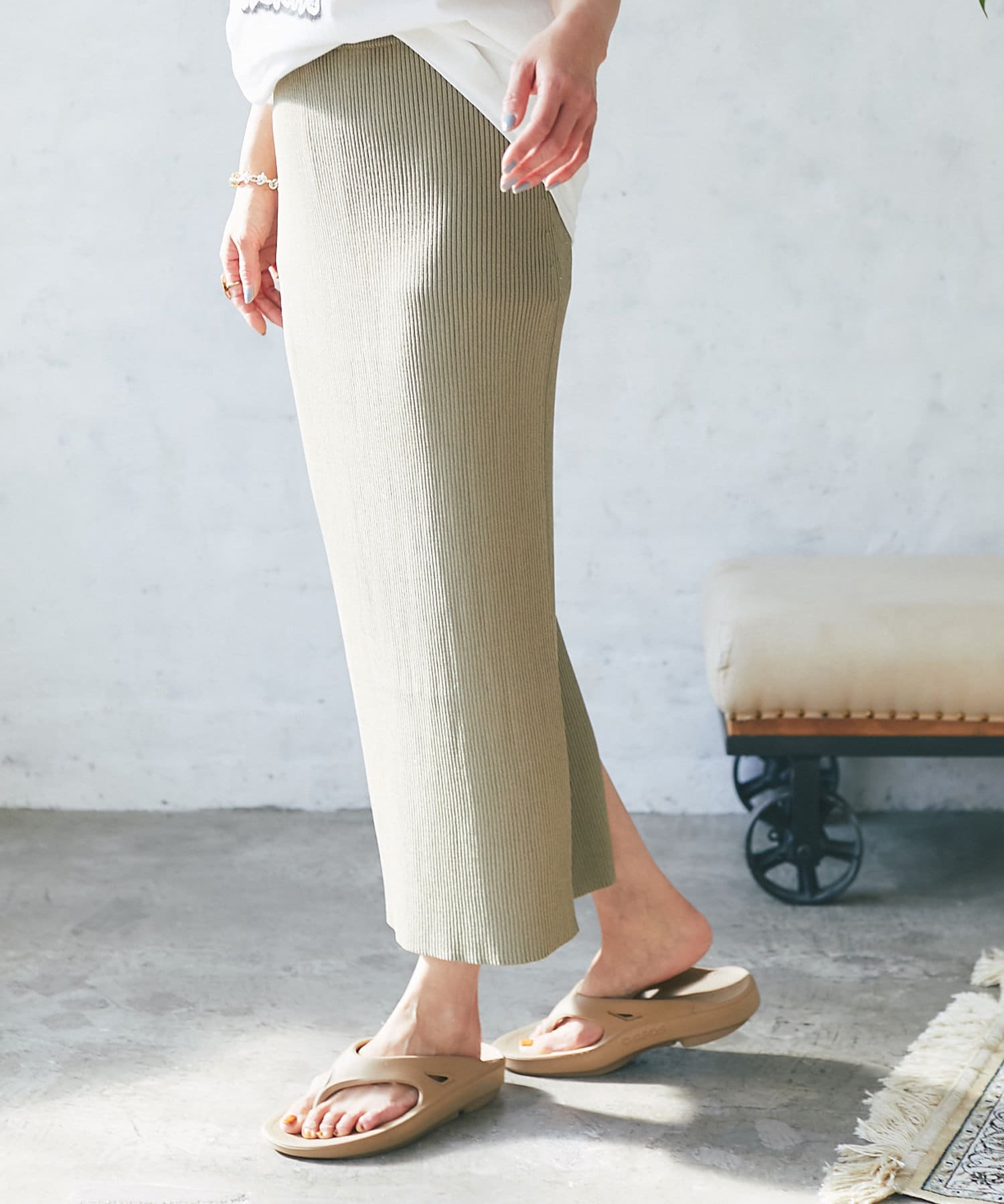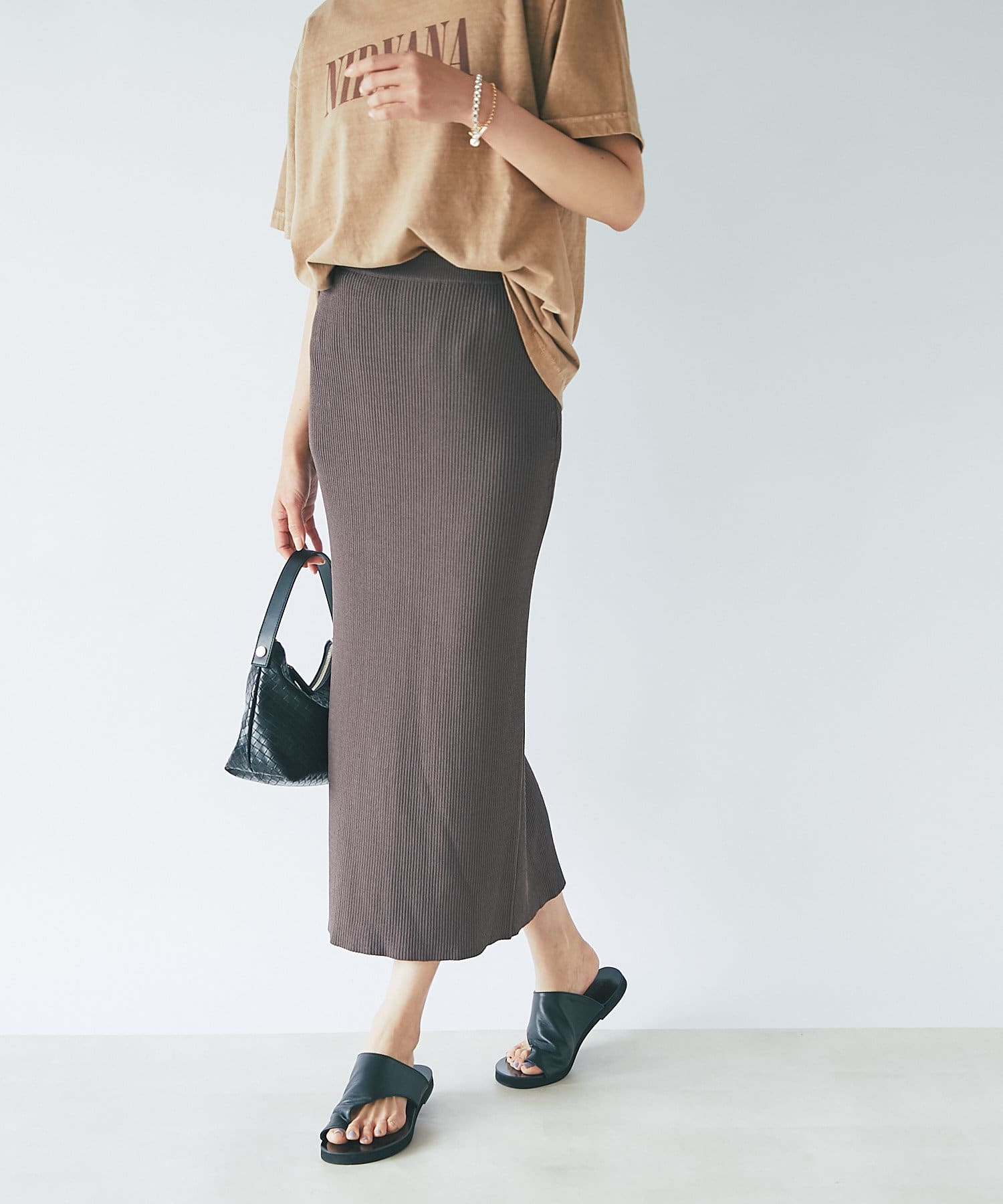 【《2サイズ展開》細見え効果抜群】リブストレートスカート