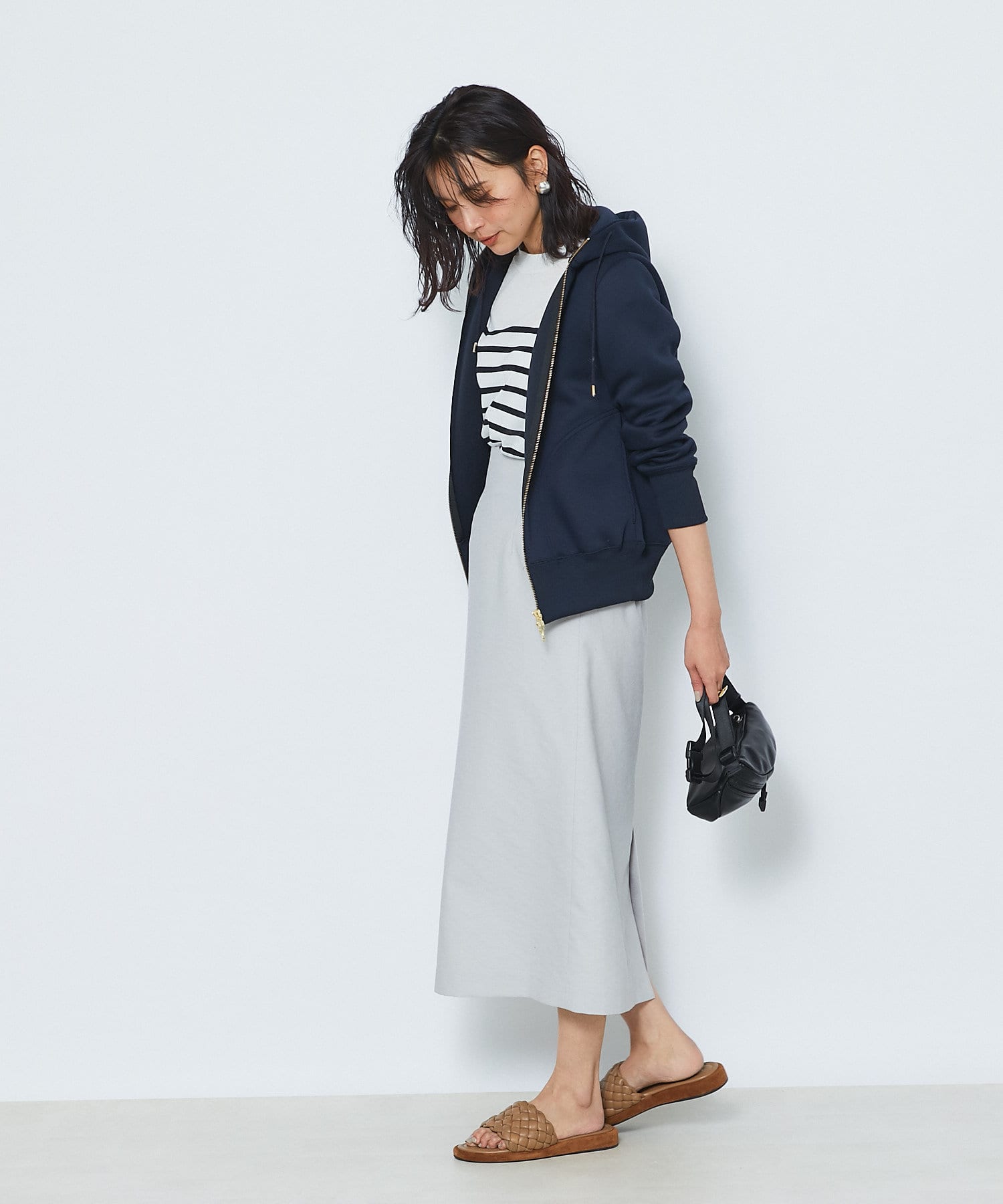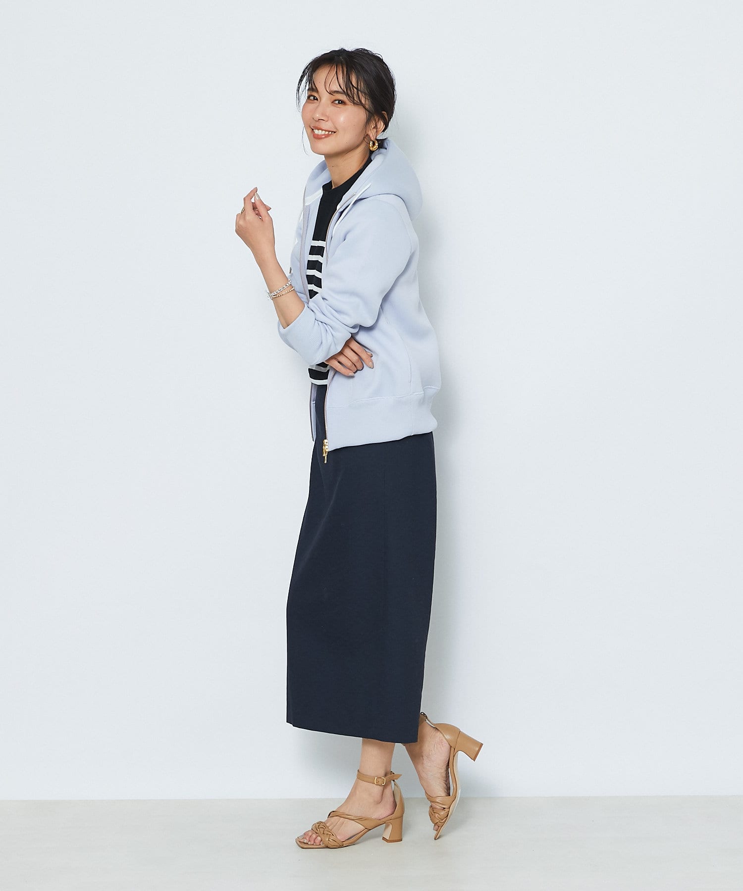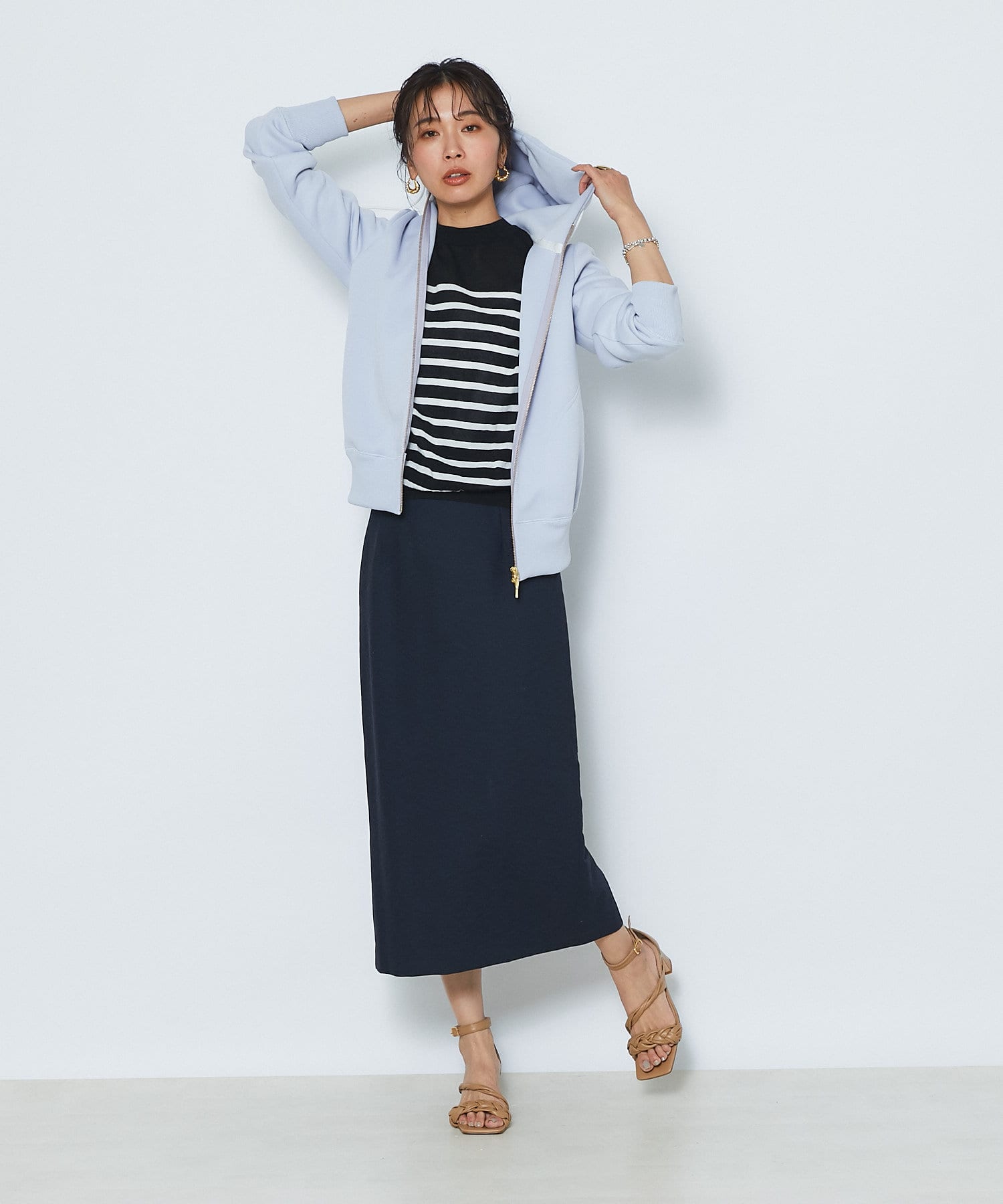 体のラインを拾いすぎず、すっきり見せてくれるストレートスカート