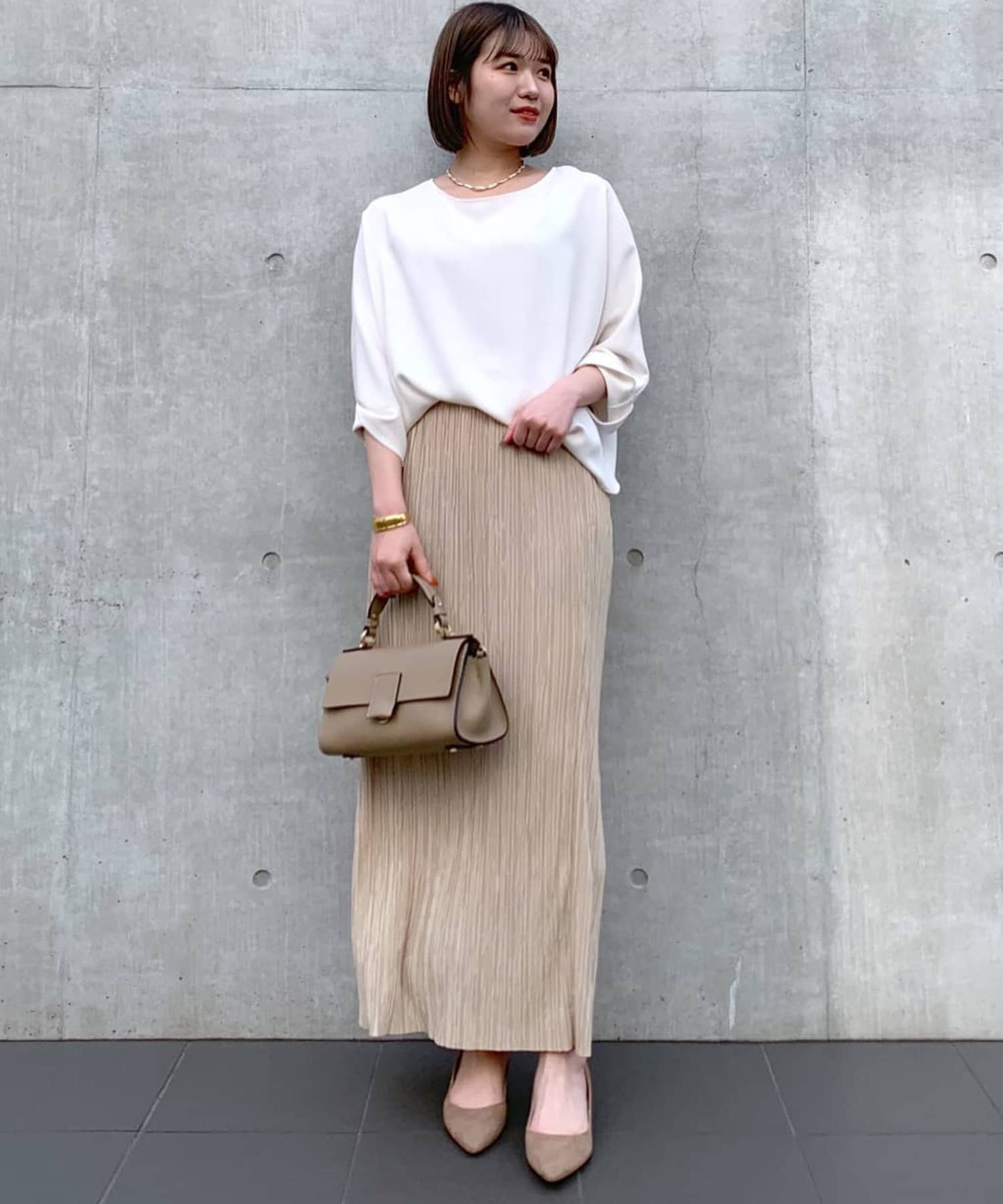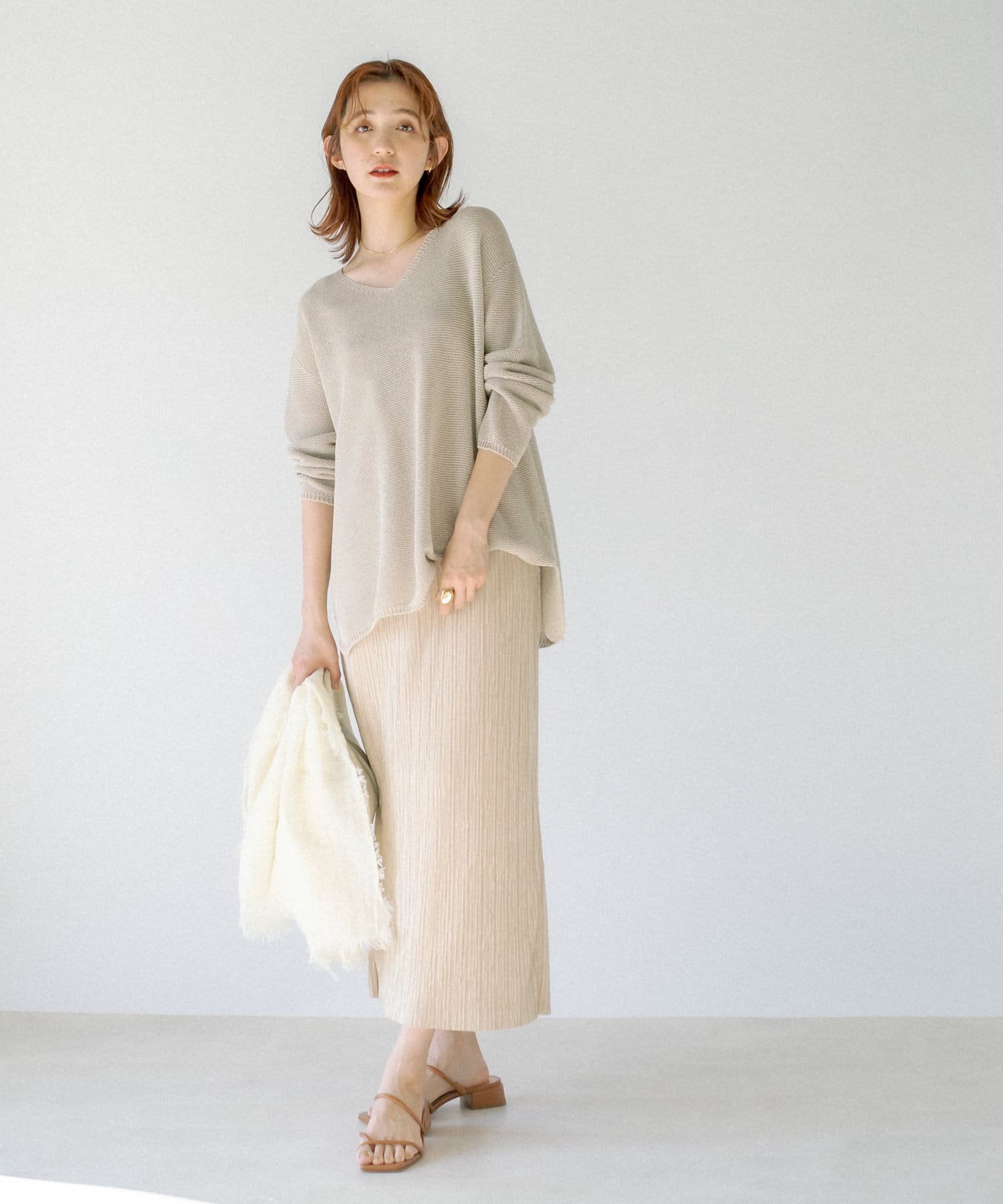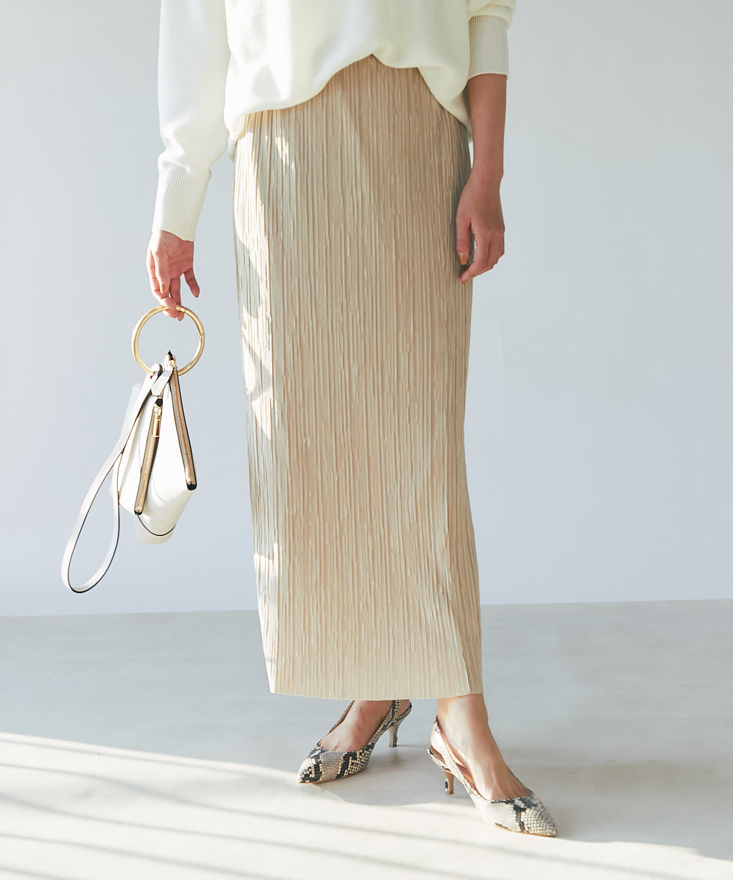 品よく大人カジュアルに履けるプリーツスカート。Iラインのシルエットが万能な一枚です。