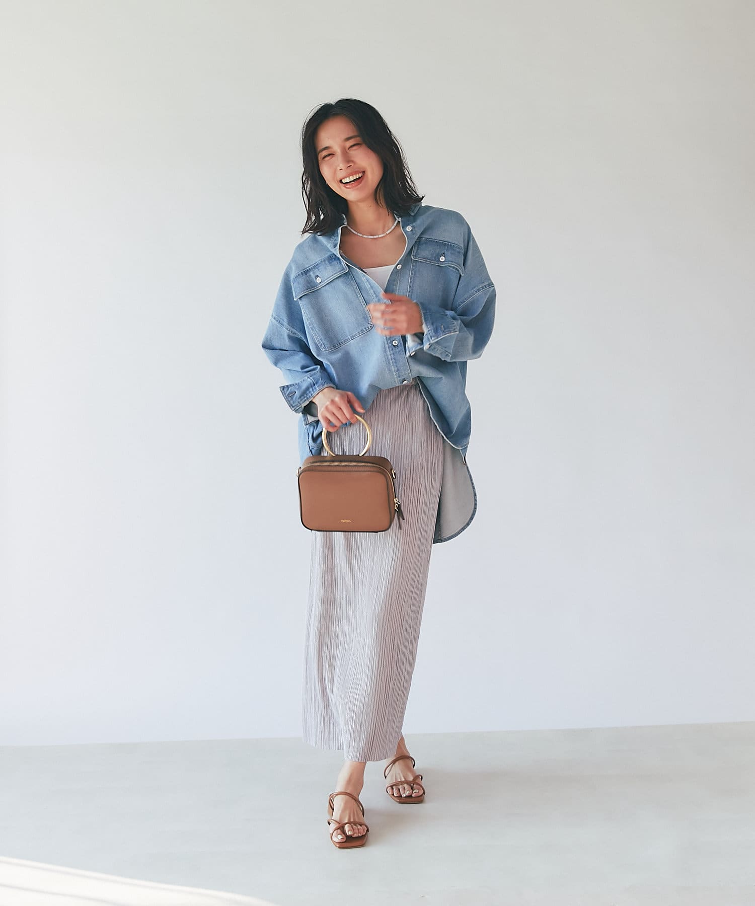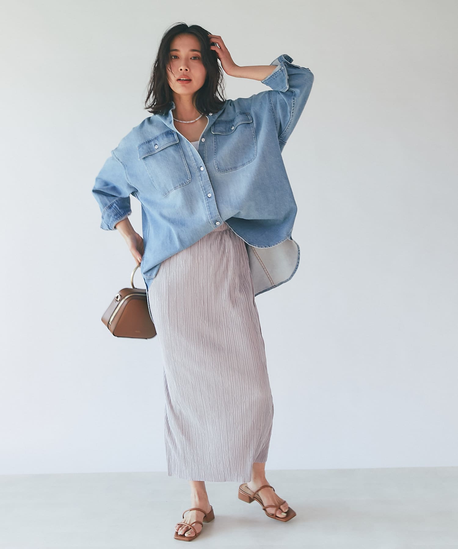カジュアルに着こなすなら、オーバーサイズシャツや今季もトレンドのデニムシャツと合わせたスタイリングがおススメ。また、ヒールに合わせてキレイめにまとめるのも◎