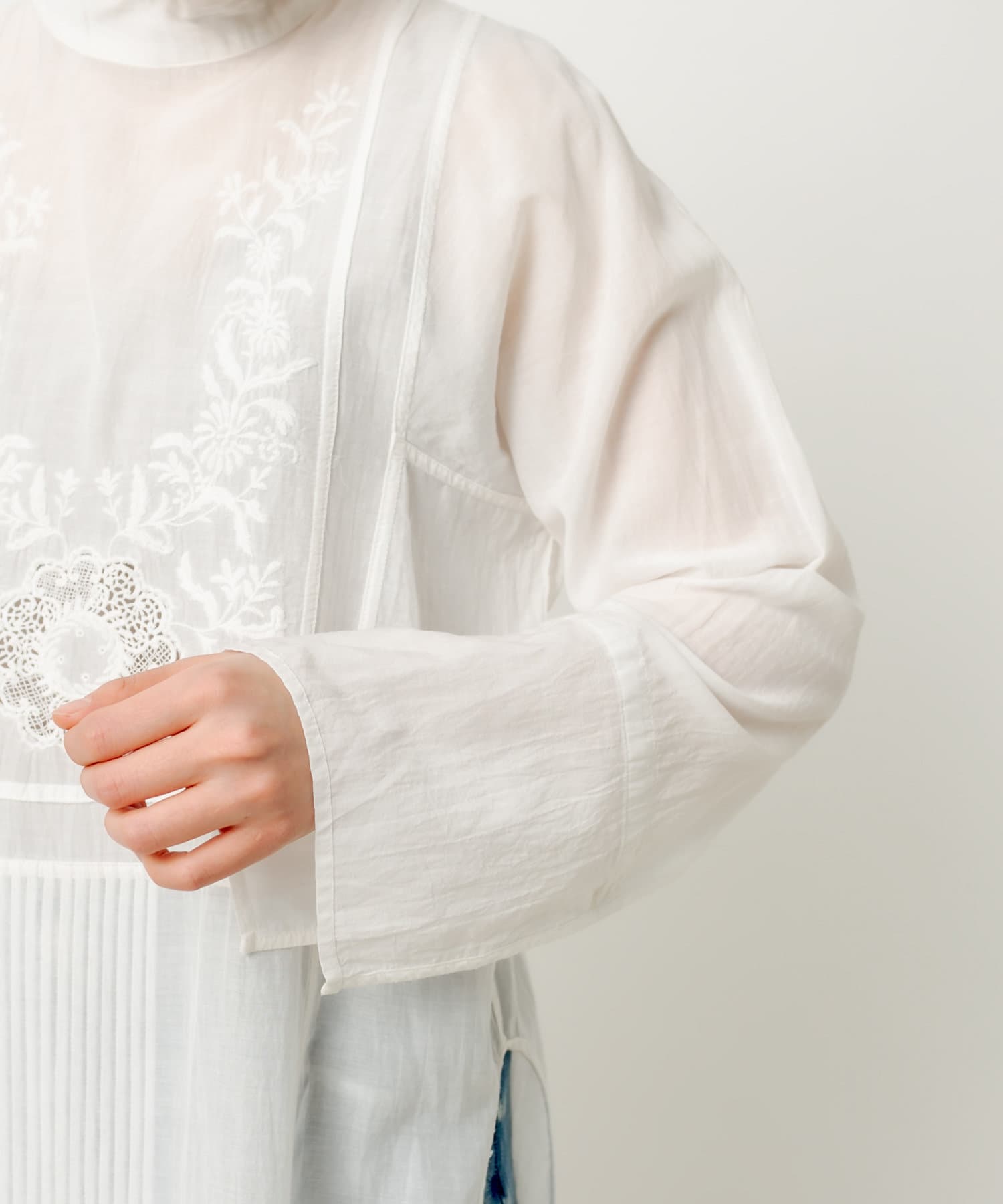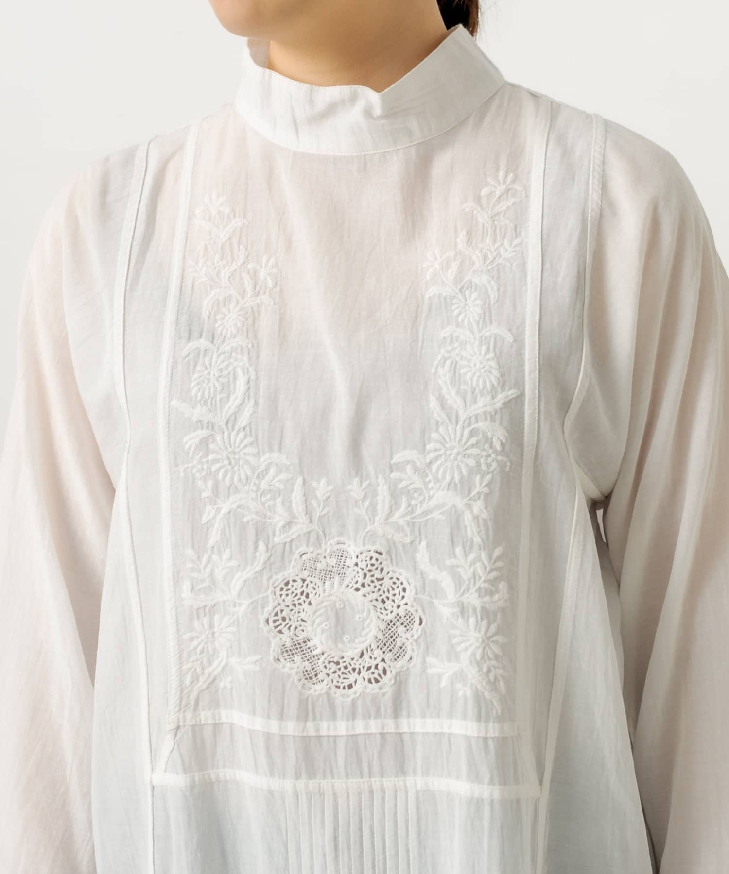 繊細な刺繍に程よい透け感が魅力的なデザインブラウス