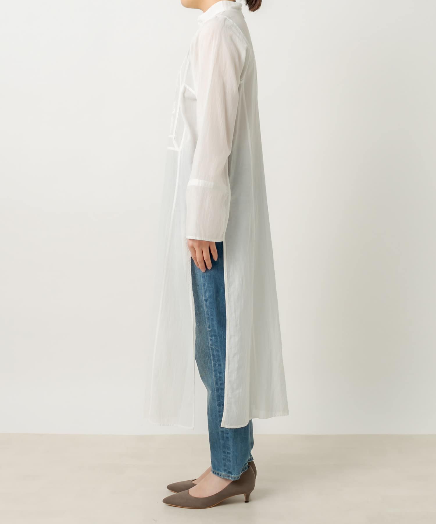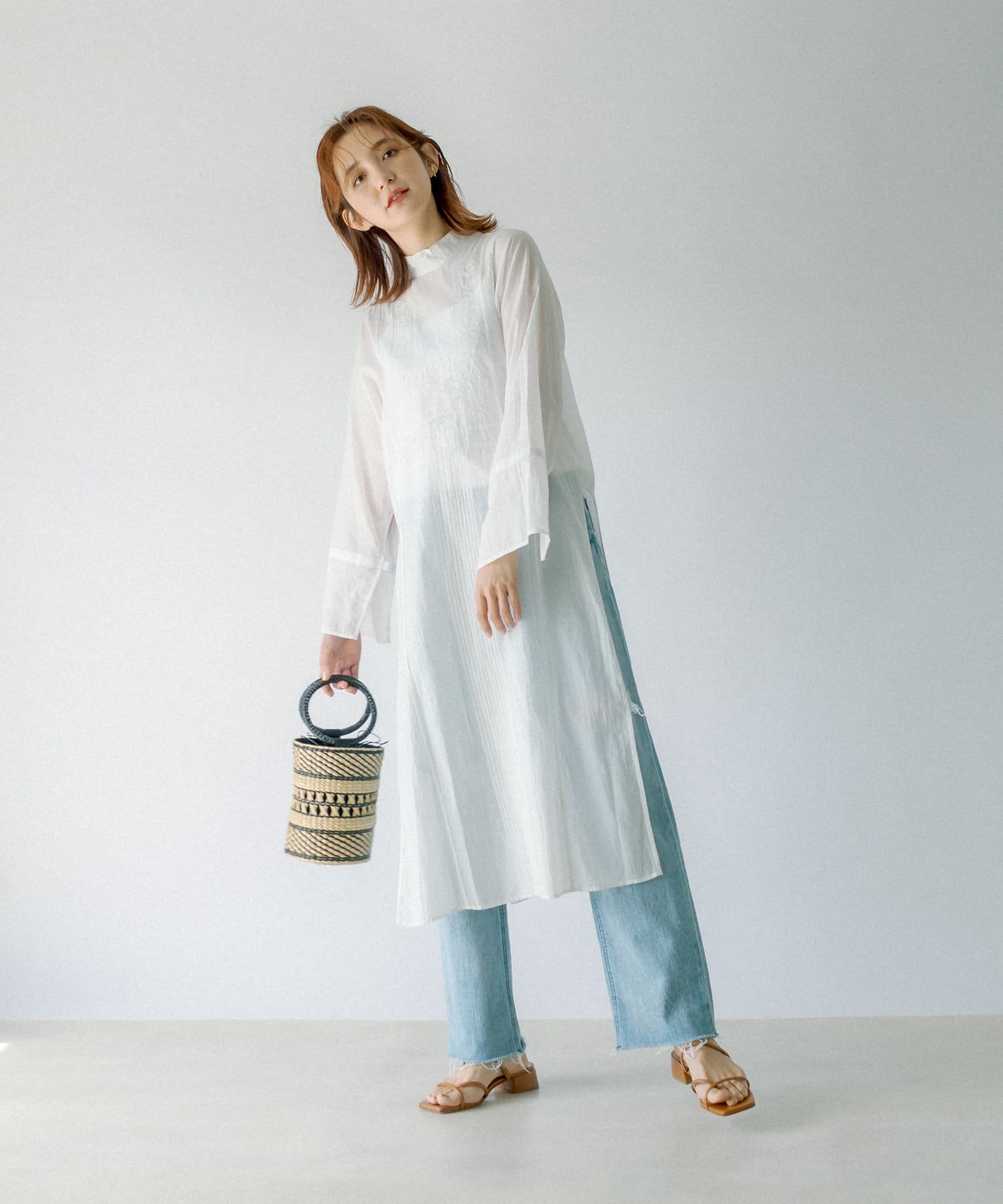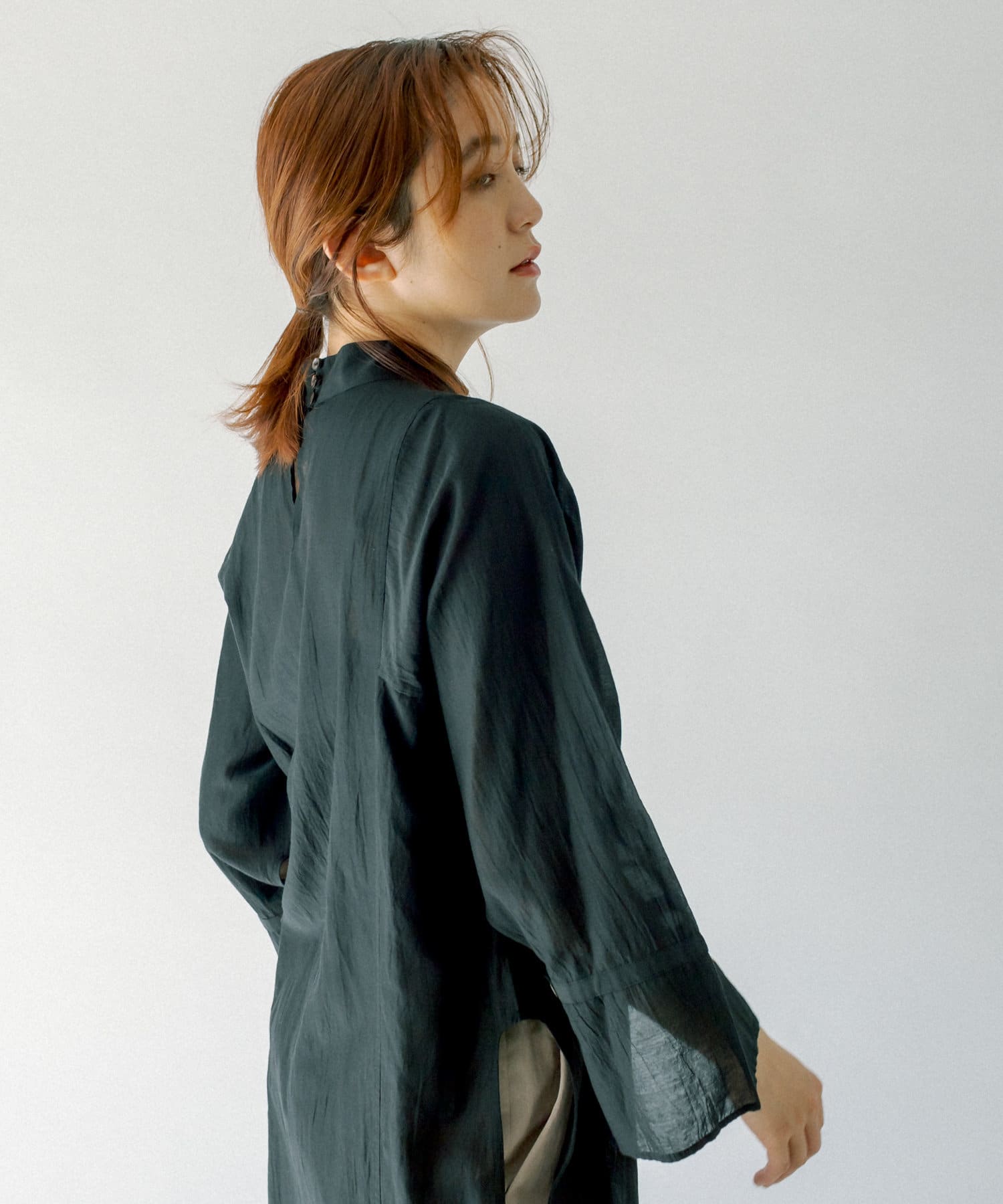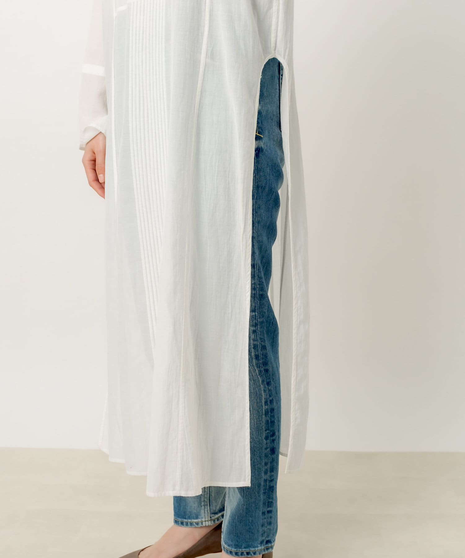 サイドのスリットが深いブラウスは重ね着で様々なコーデをお楽しみいただけます。