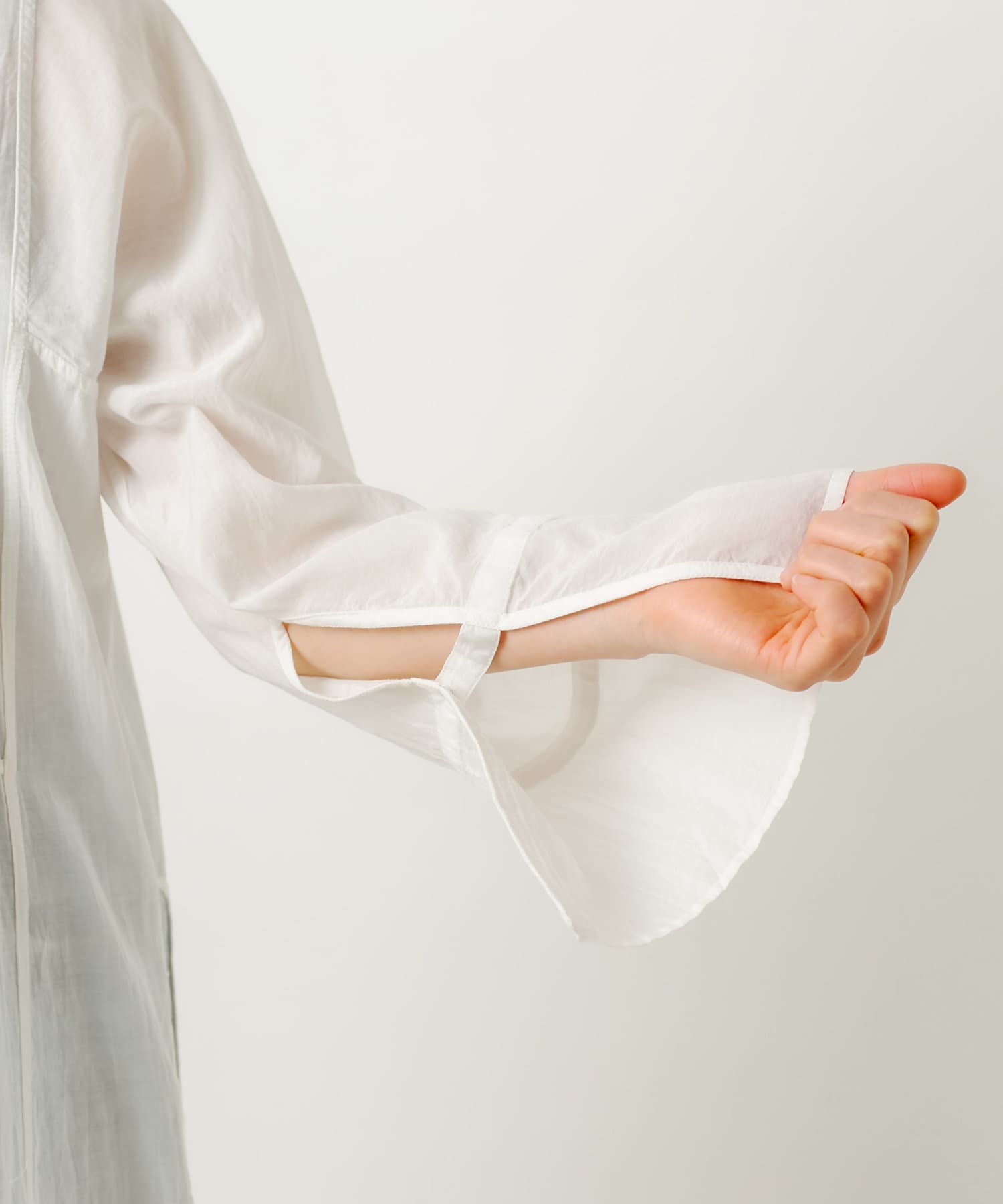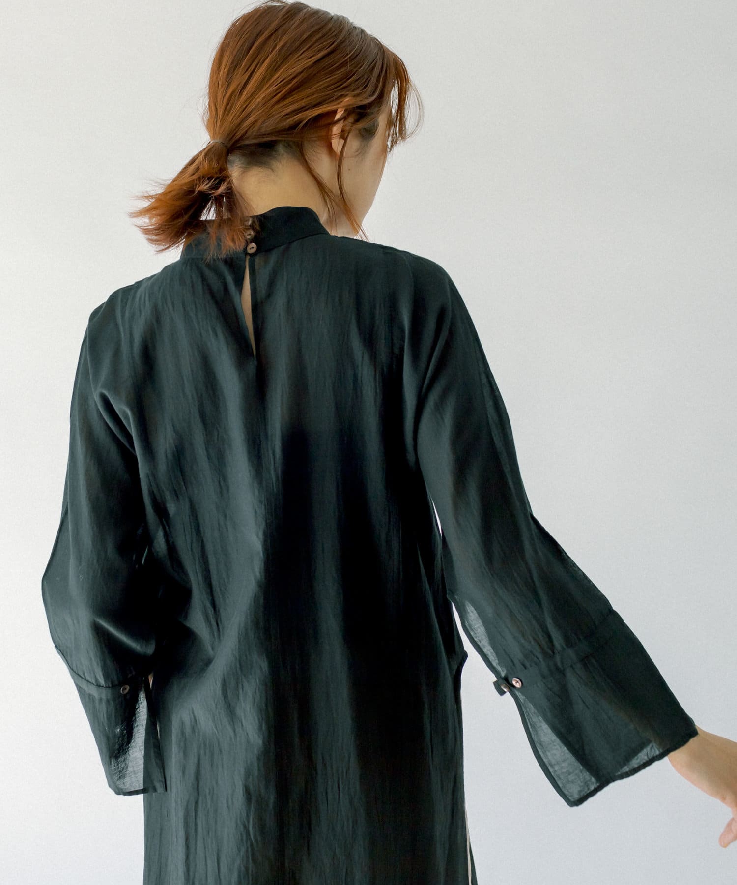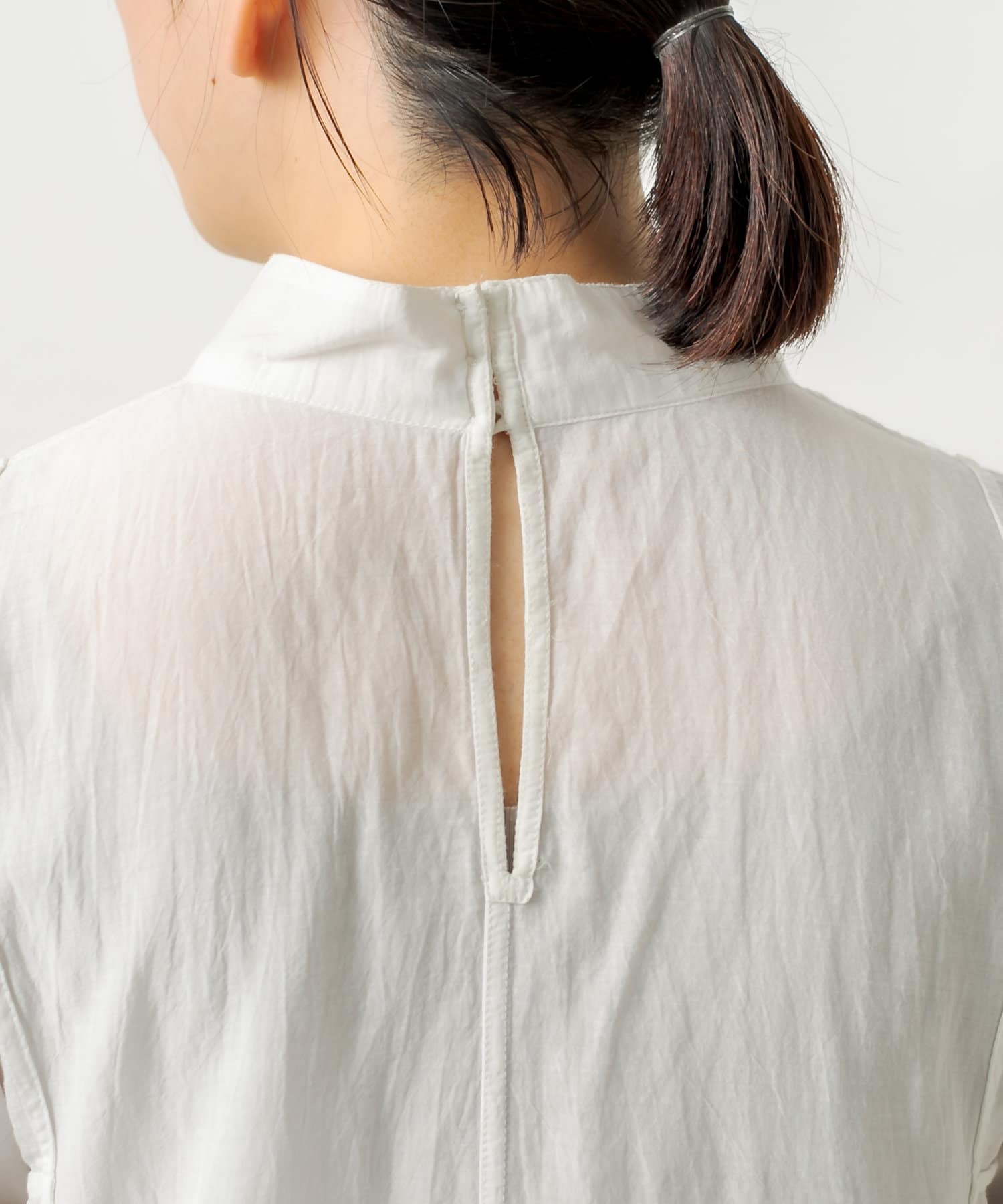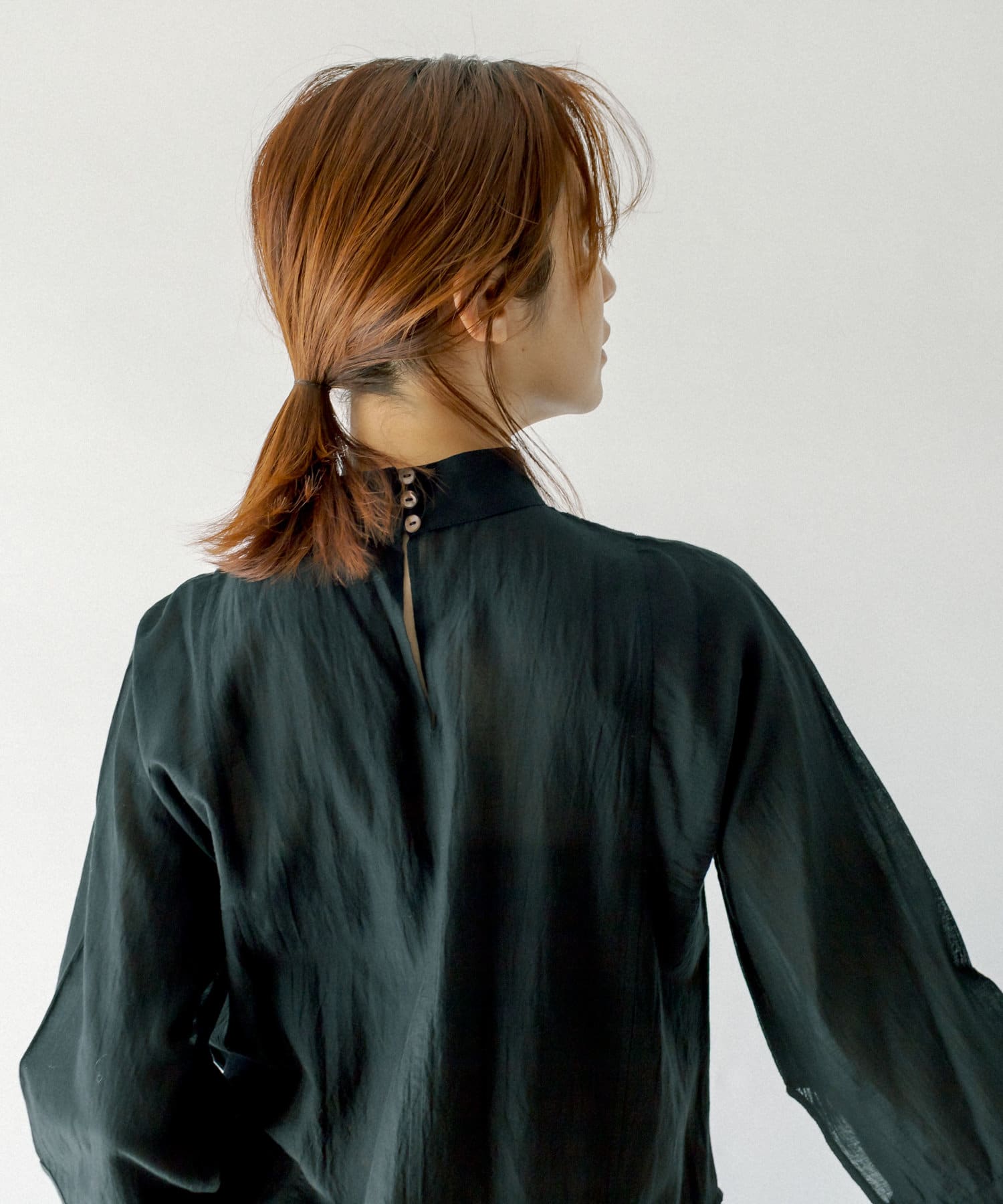 サイドのスリットが深いブラウスは重ね着で様々なコーデをお楽しみいただけます。
