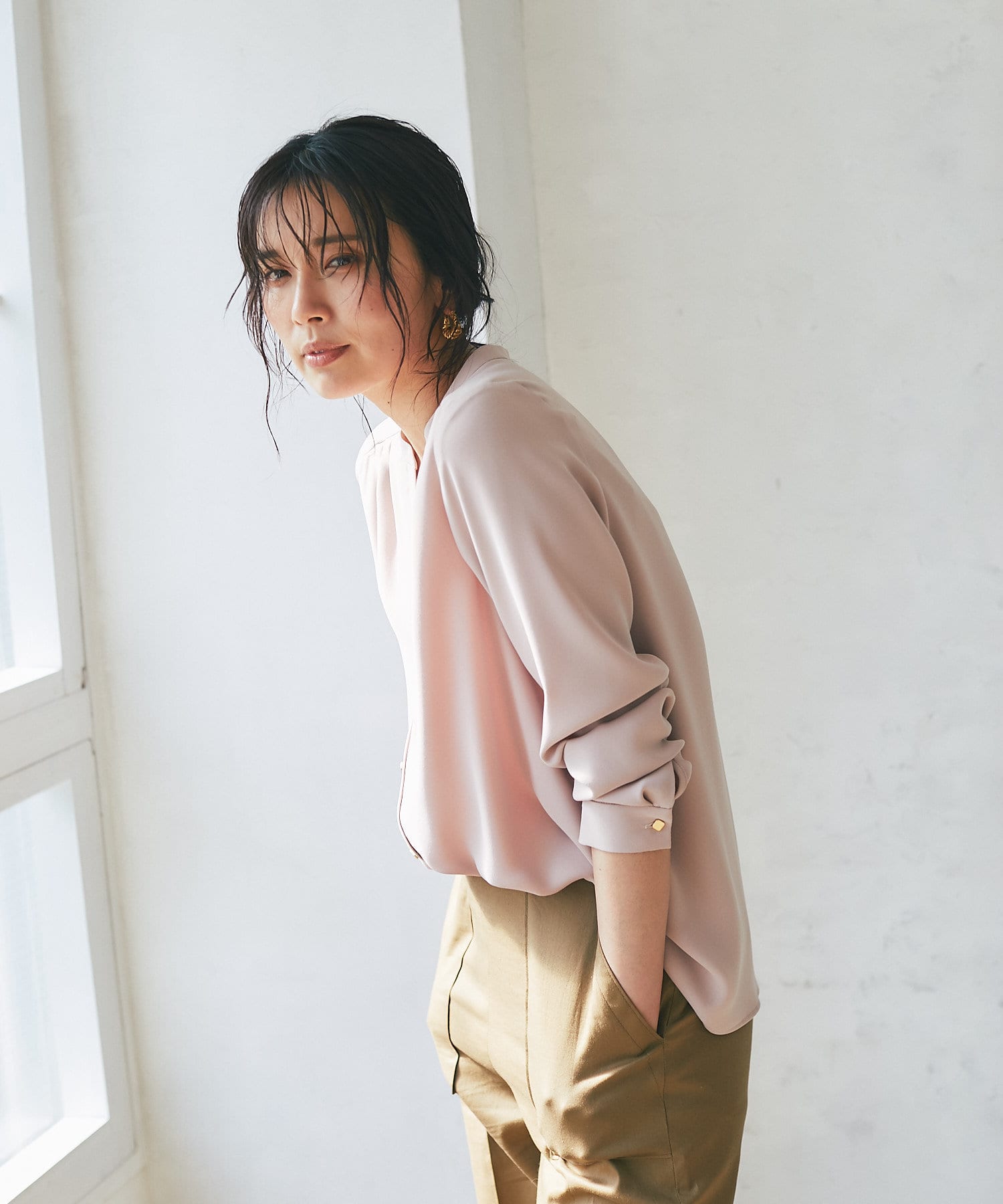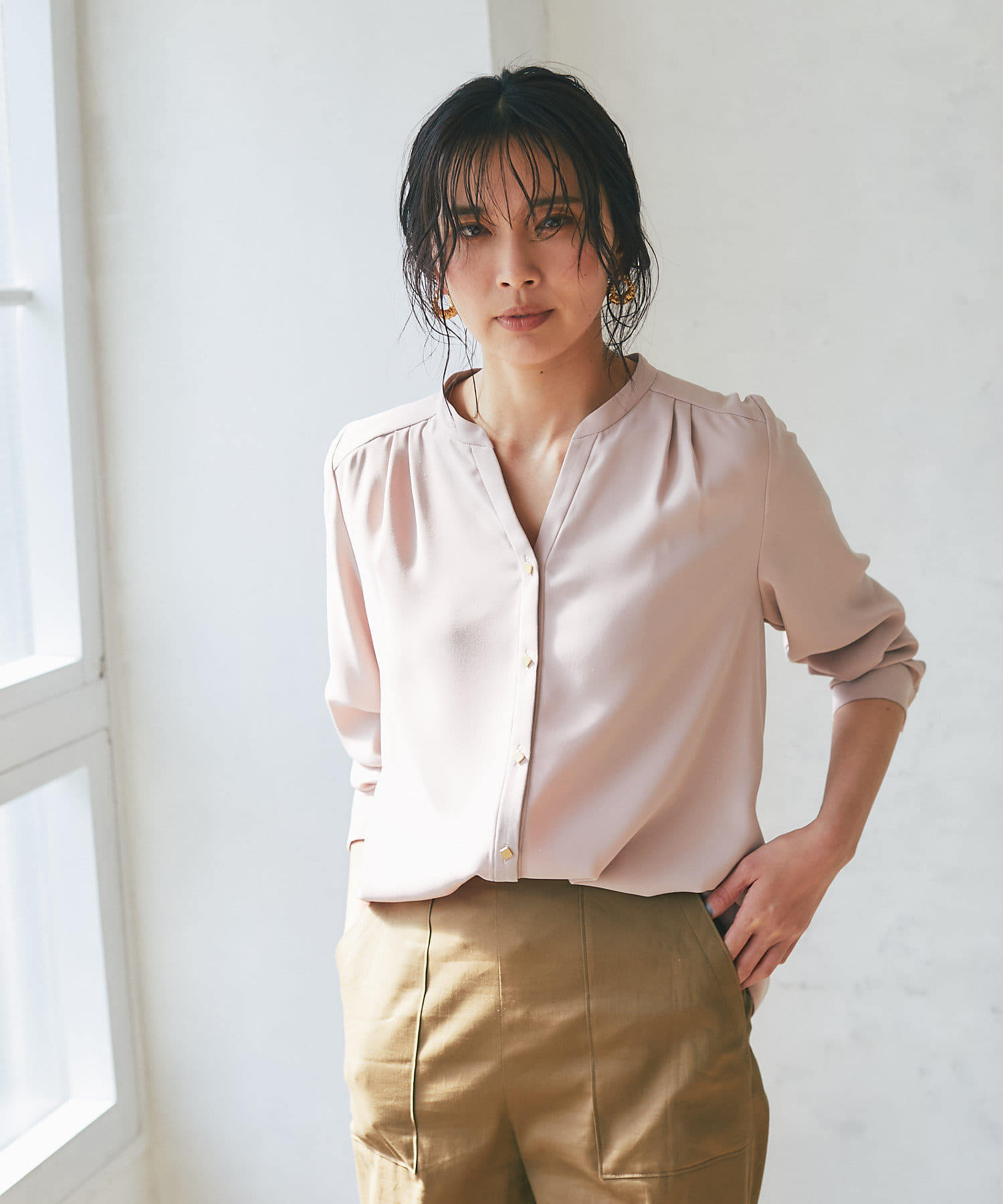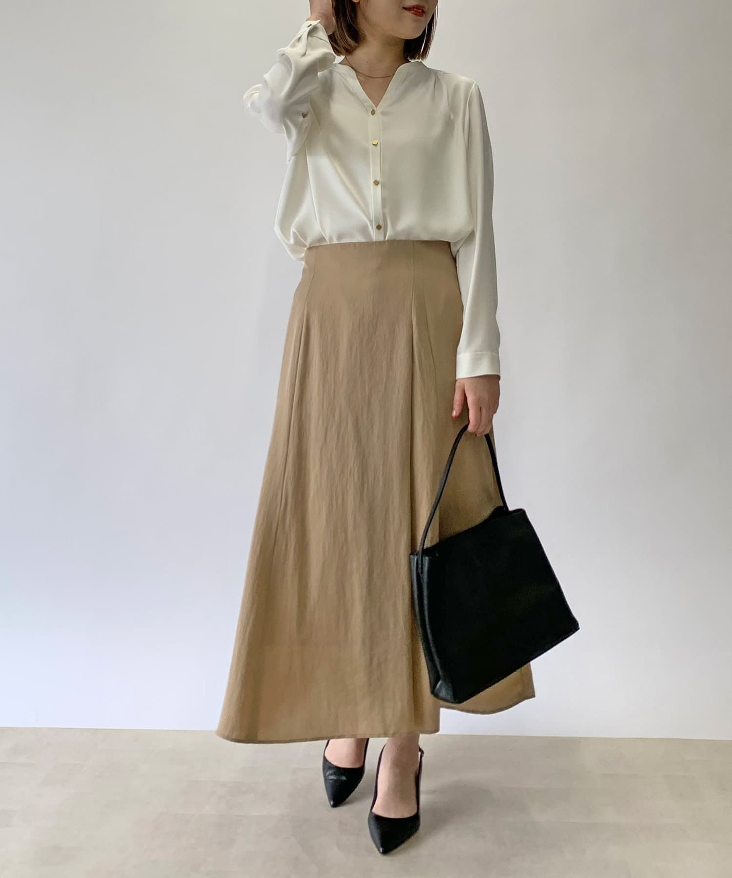 • 凛としたマットな質感のサテンブラウス