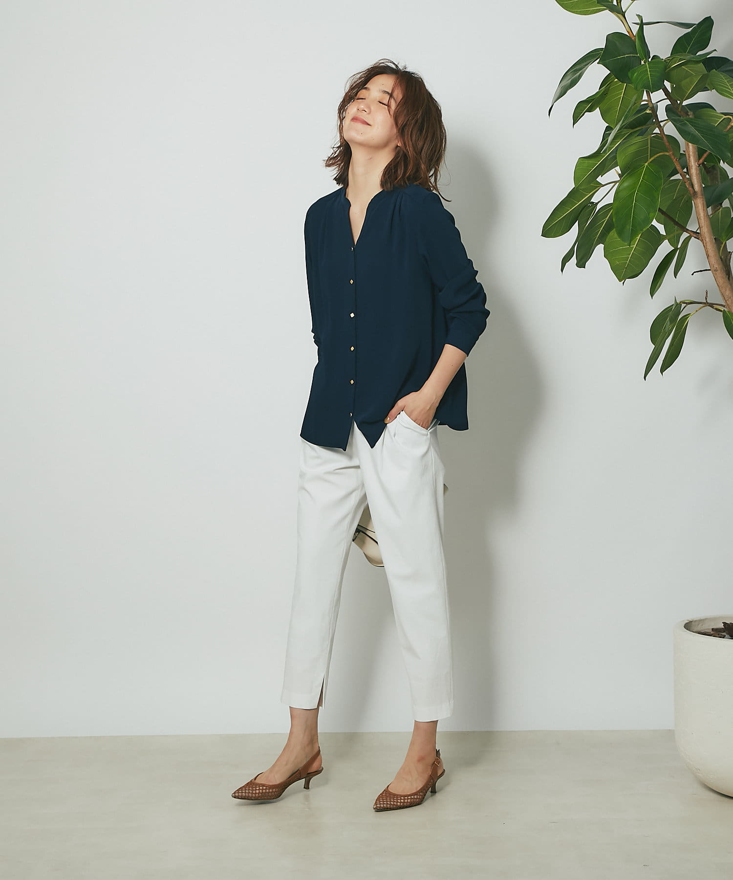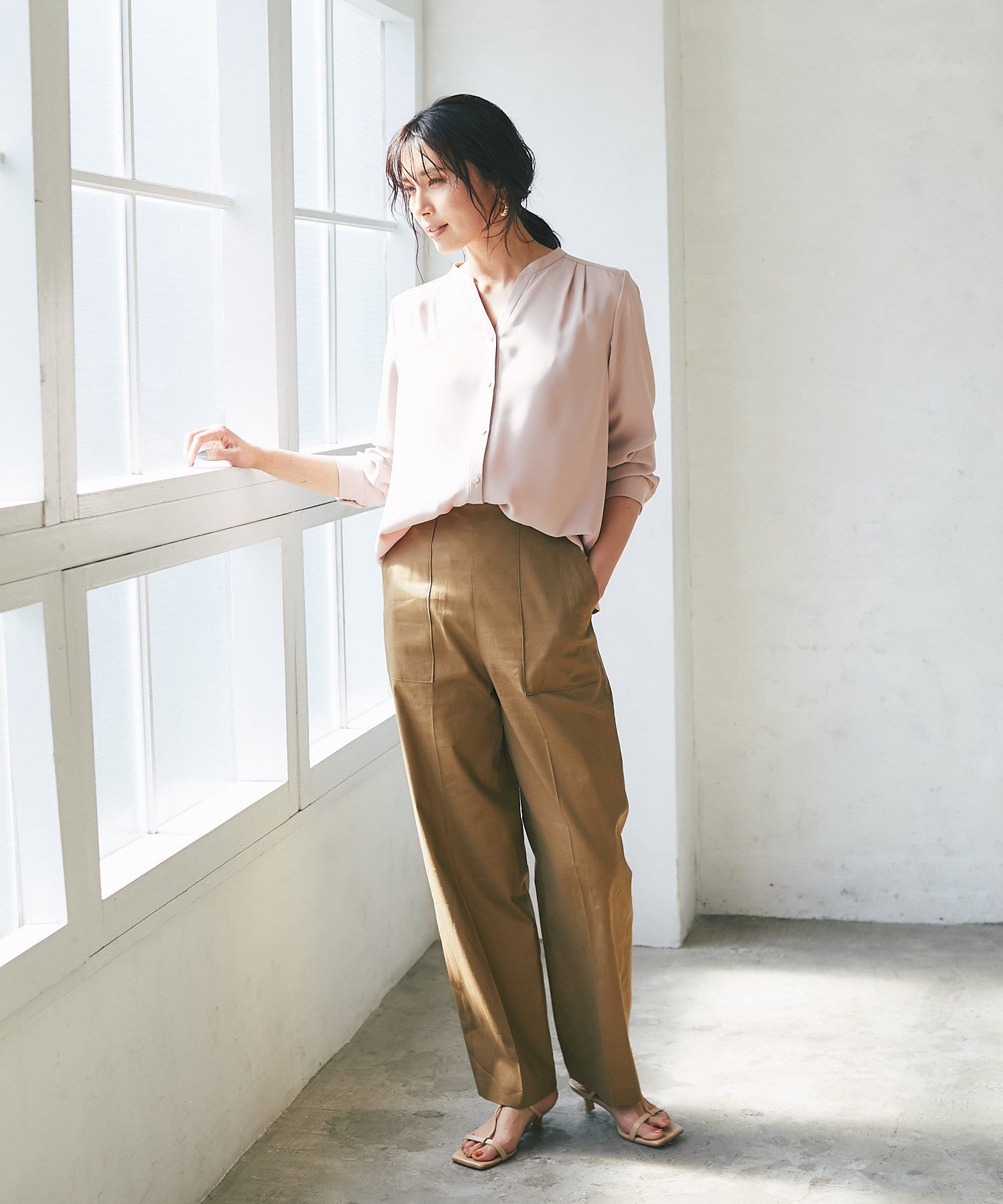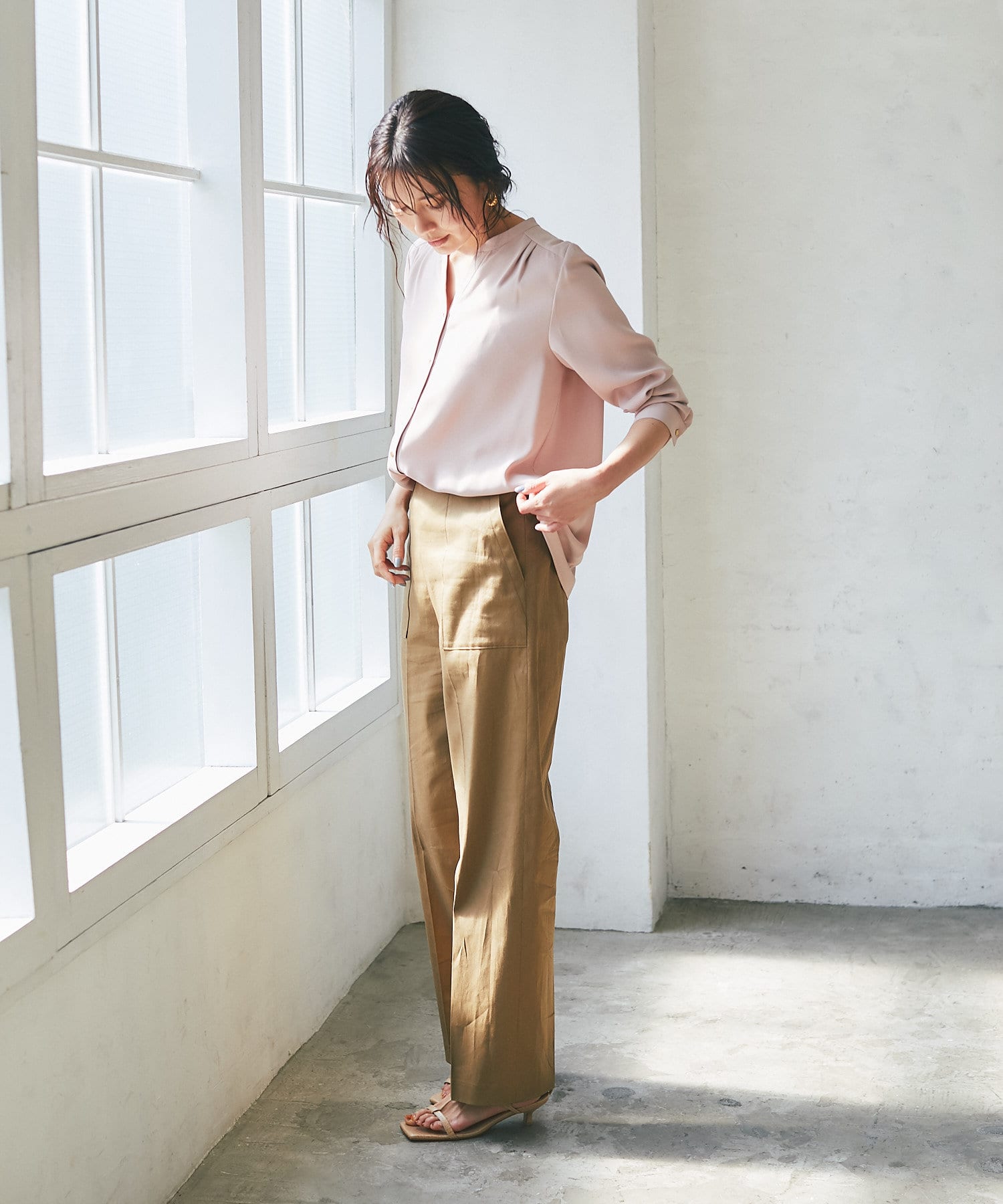• 綺麗目ボトムに合わせればオフィススタイルの完成