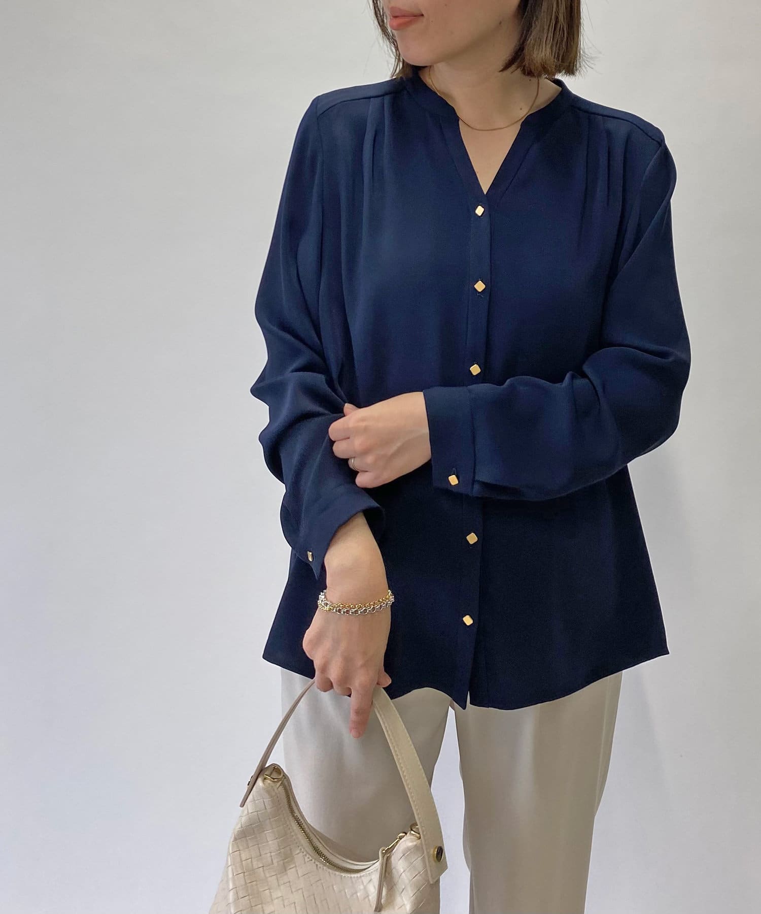 • シンプルボトムに合わせてもゴールドの釦がアクセントに!