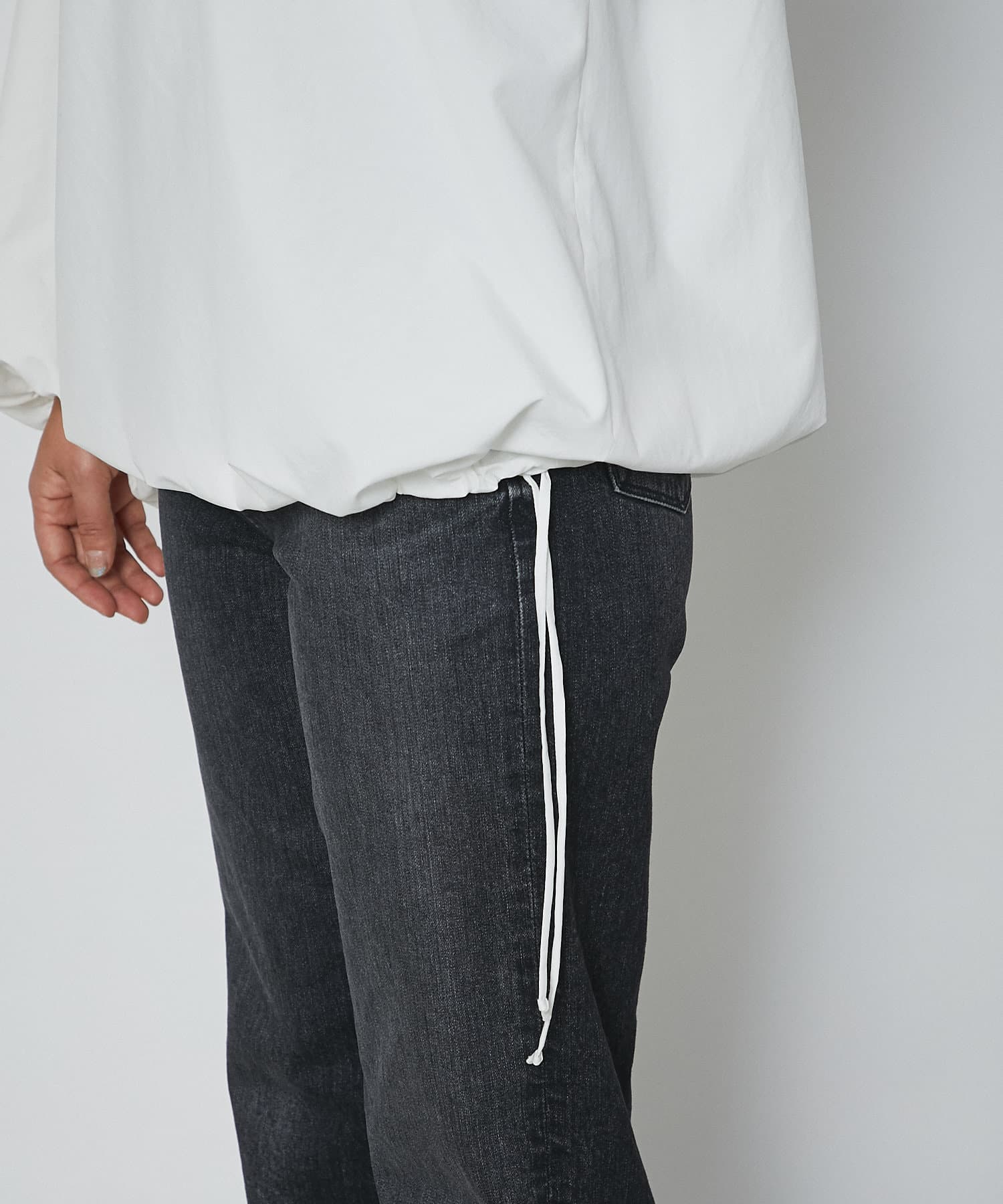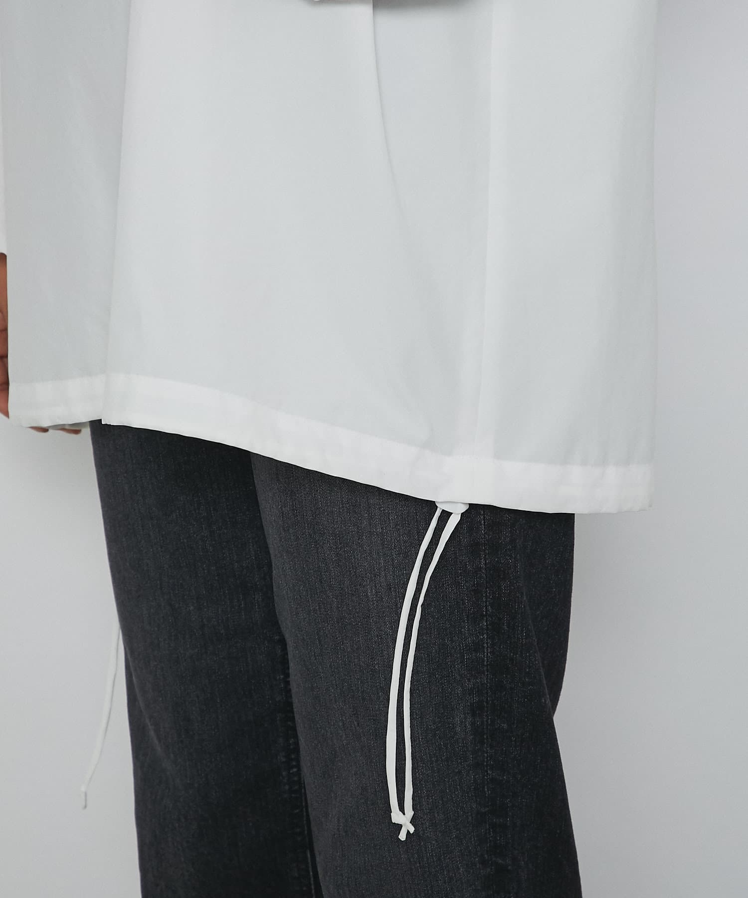 裾のコードでブラウジングすることで、着丈調整ができる優れものです。