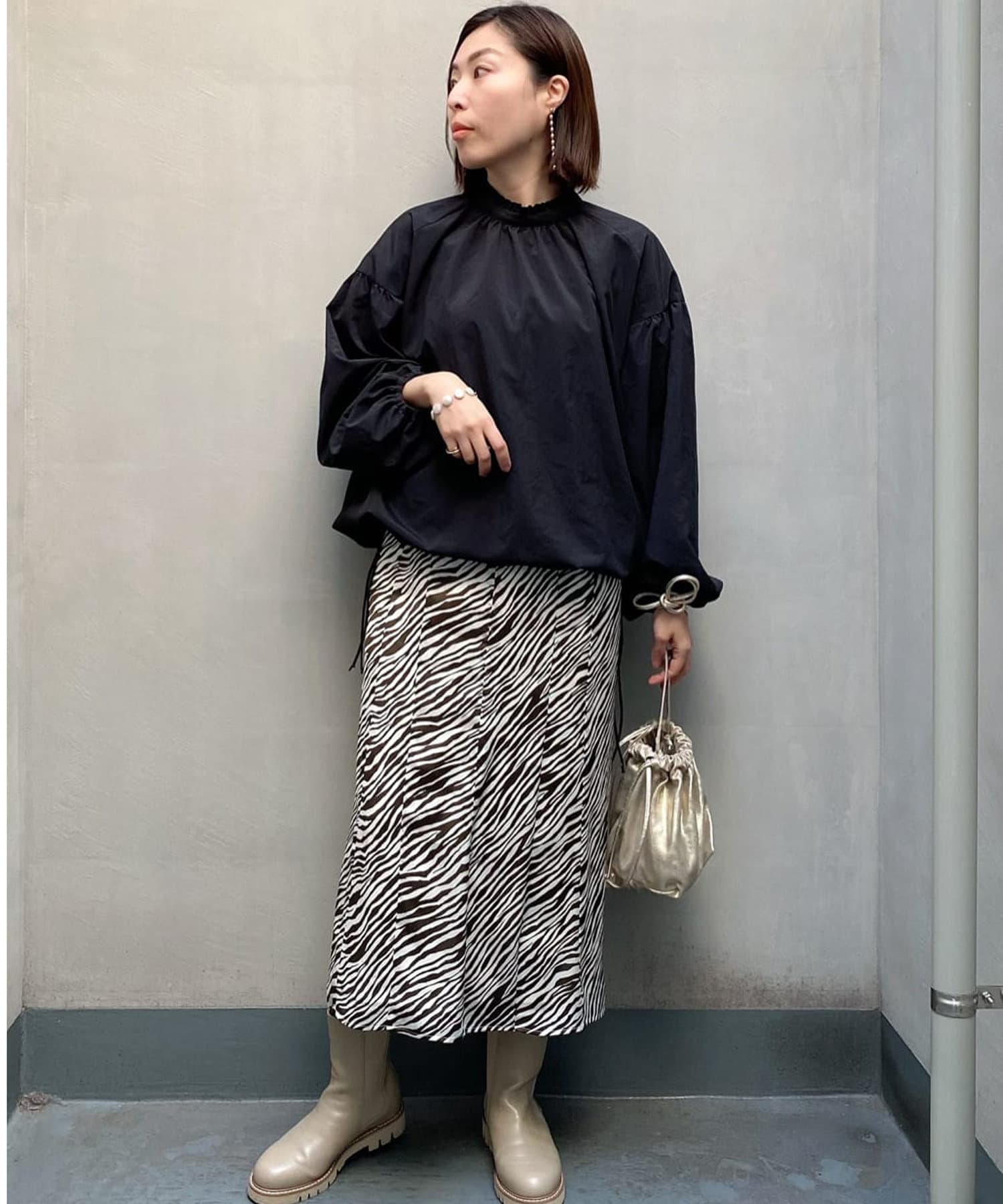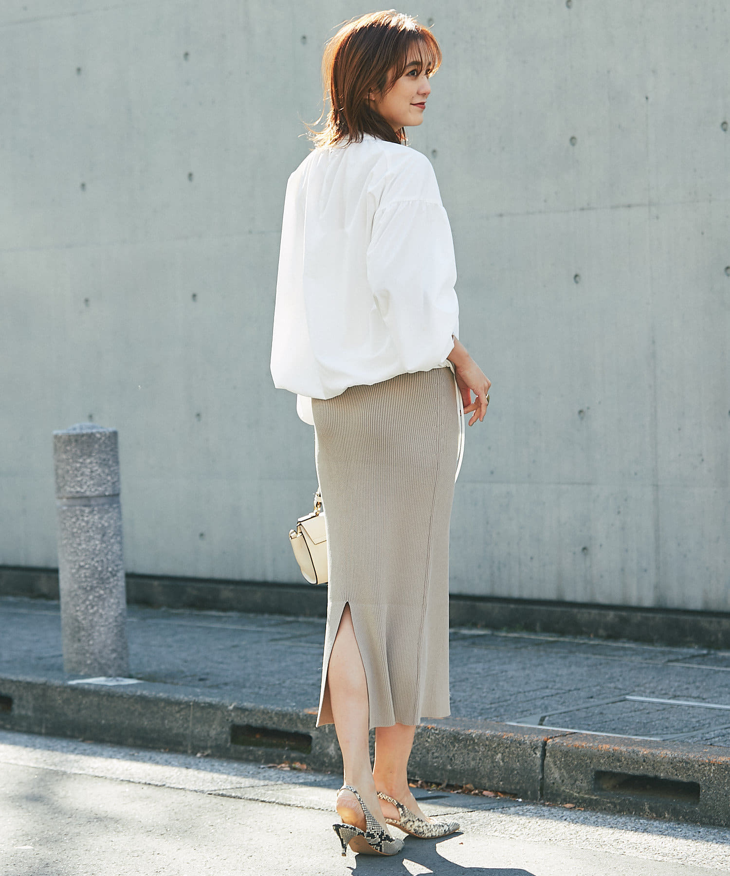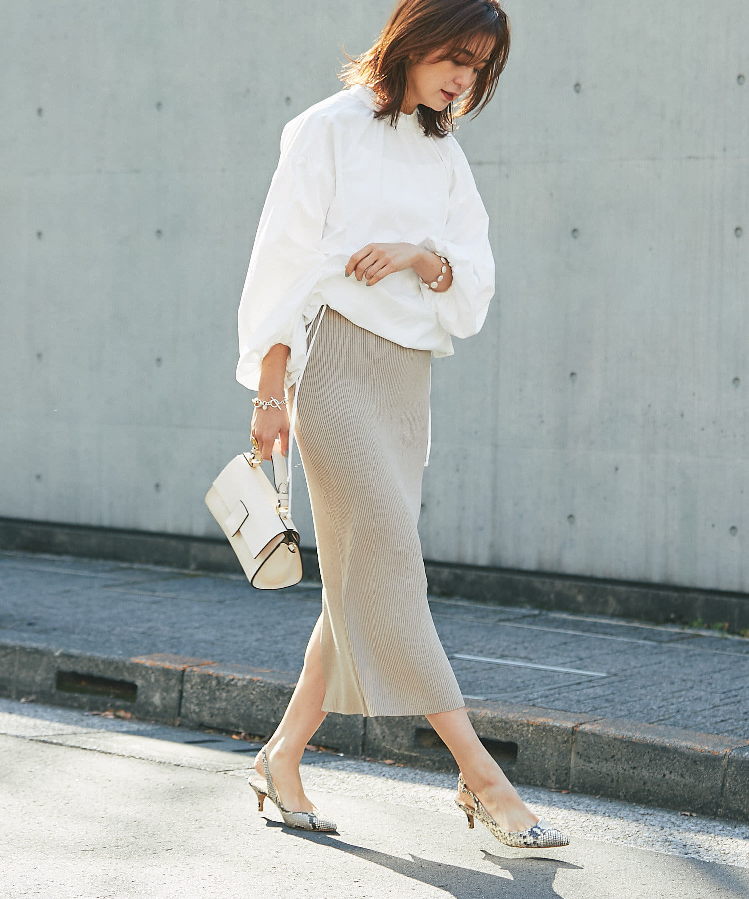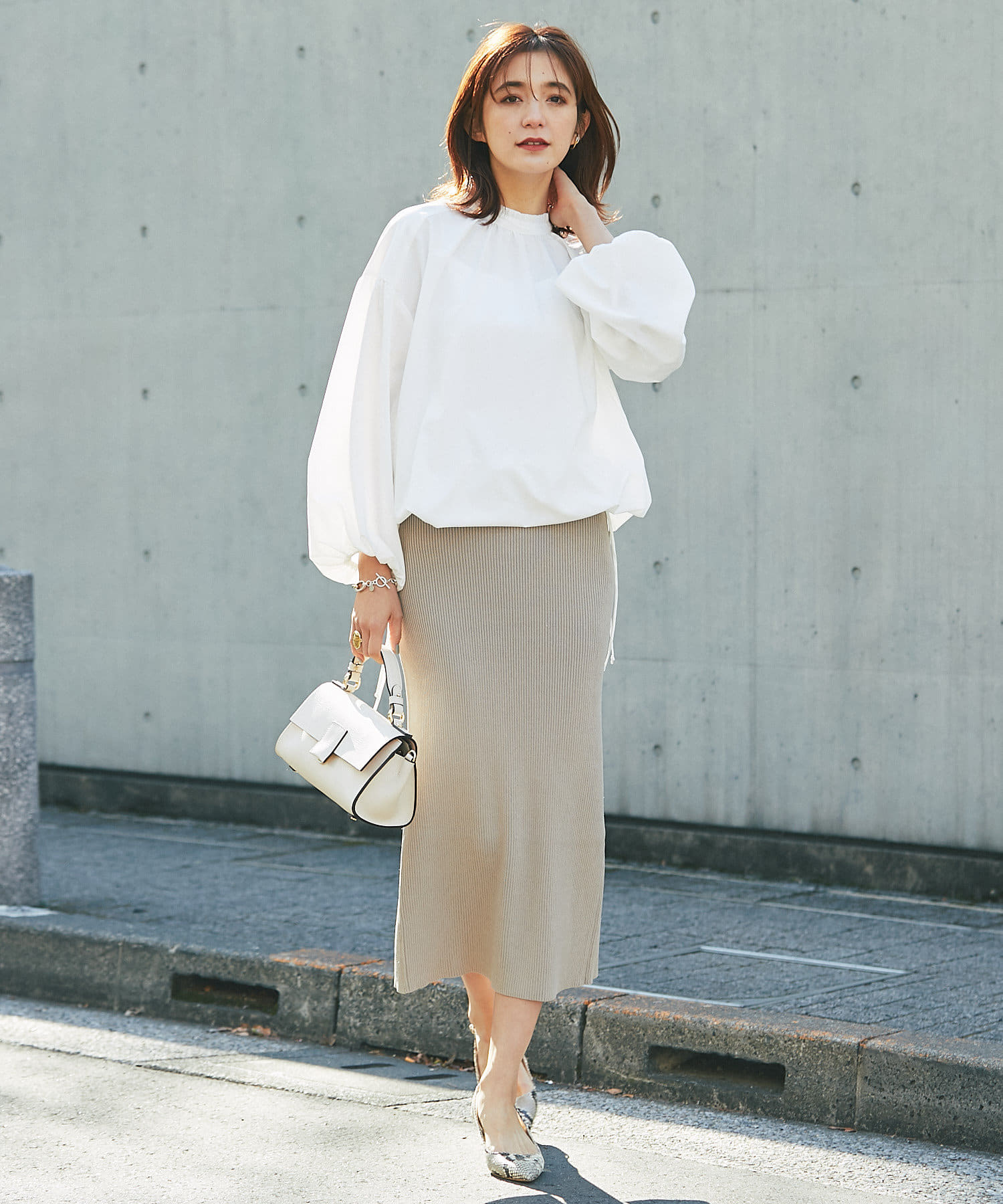 また、ボトムスはシンプルなものだけでなく、旬なマーメイドラインのスカートやフレアパンツなどシルエットでお洒落を楽しむのも◎ボリューム袖を活かした、引き続きトレンドのベストやクロップド丈のビスチェとレイヤードしたスタイルもおススメです。
