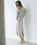 上品な光沢感のラメニットです。コンパクトめなサイズ感ですが、ピタピタし過ぎないので華奢見えが叶うニットです。前後2WAYで着用でき、気分に合わせて着回しができます◎