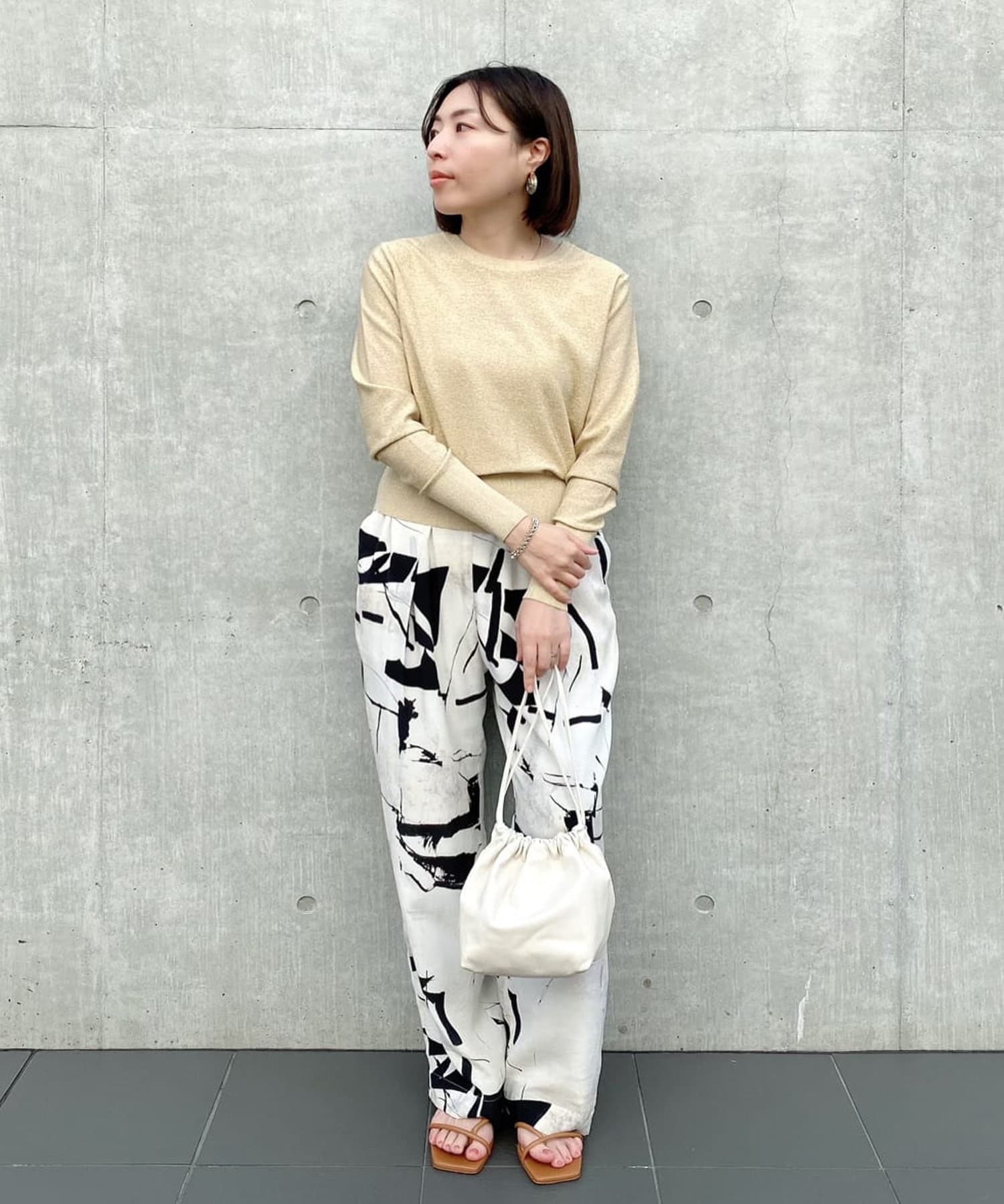 • ニュアンスカラーコーデもラメがアクセントになる