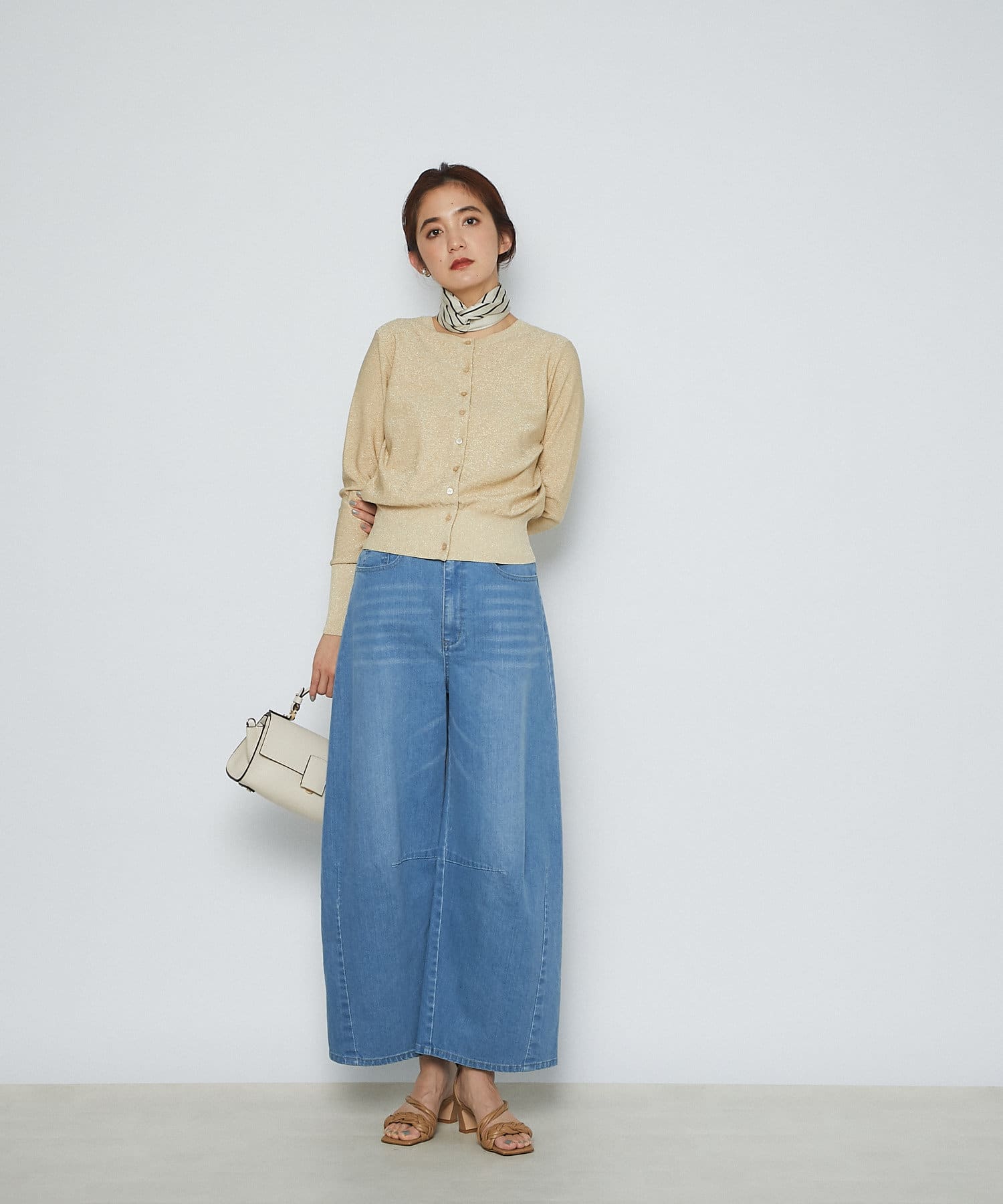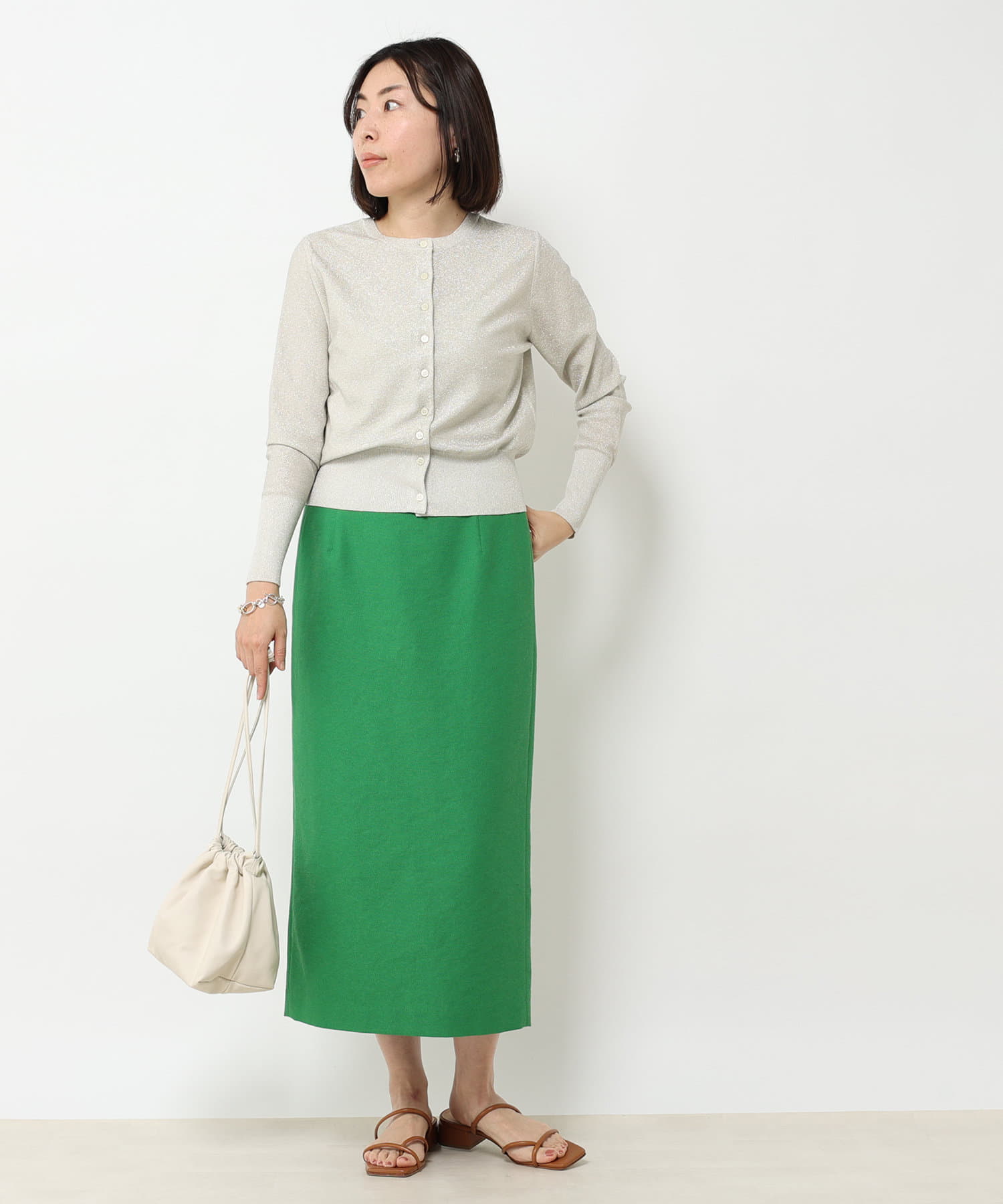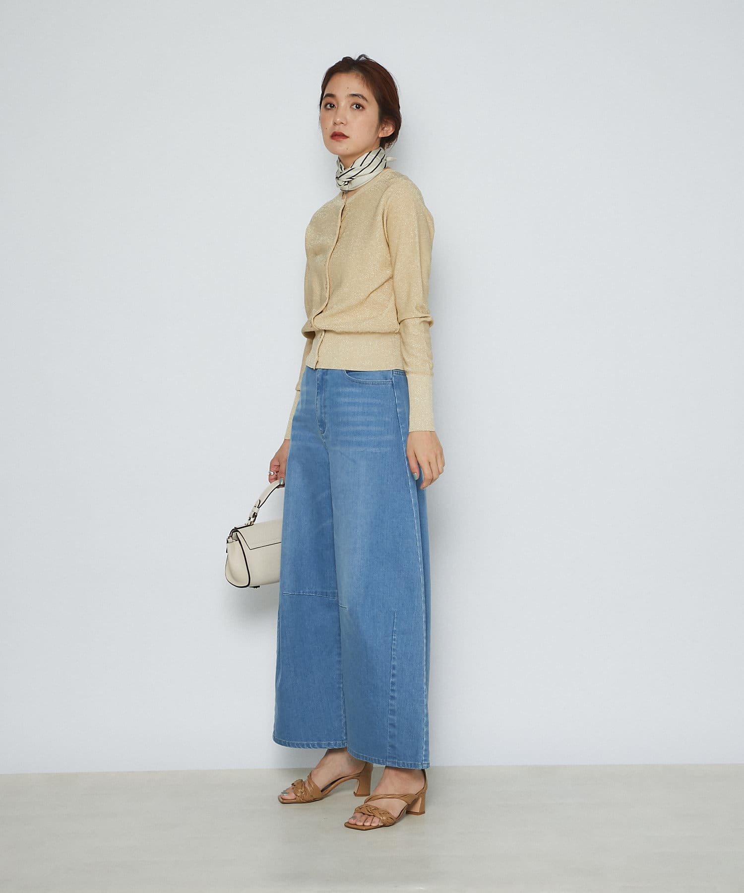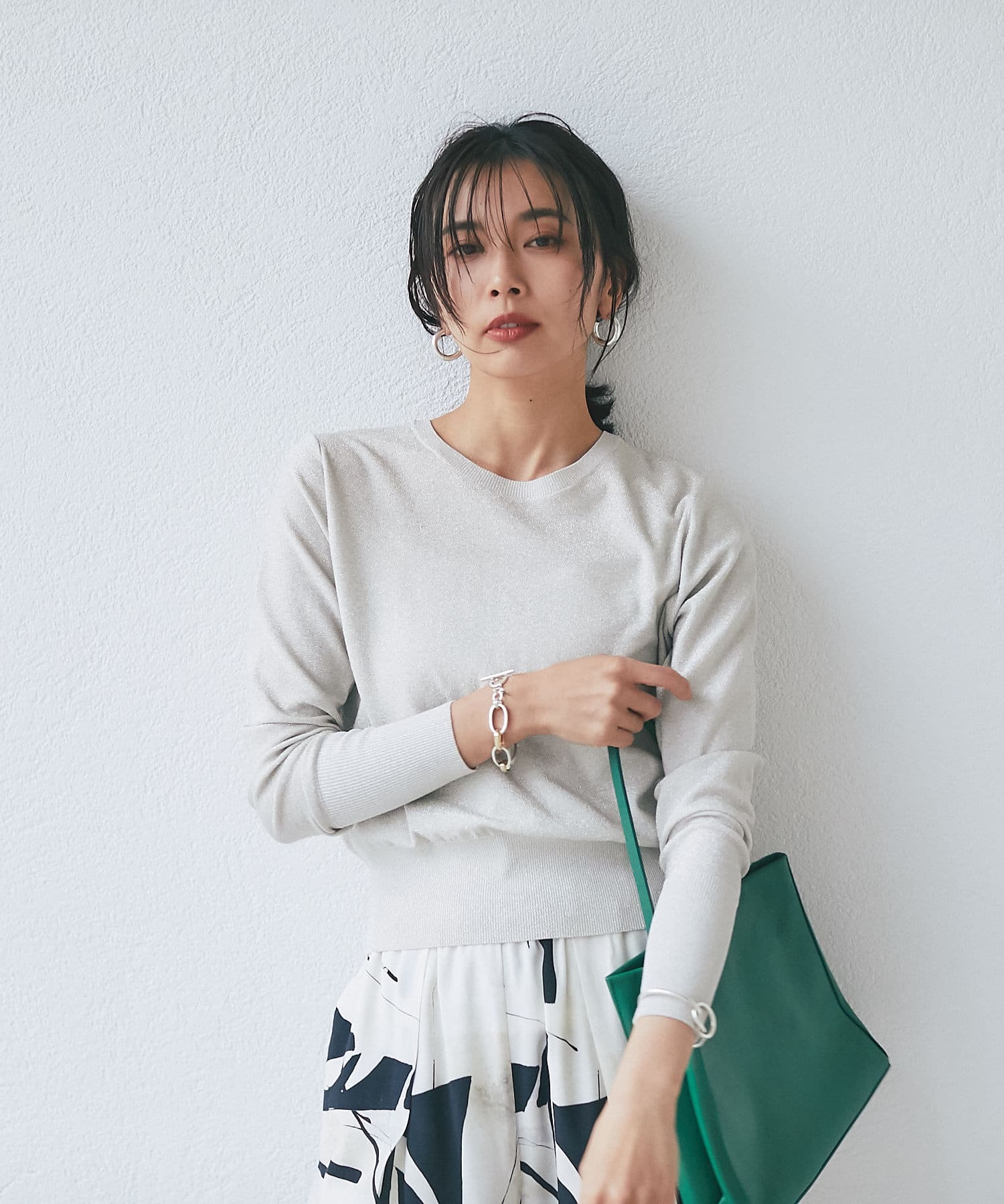程よいコンパクトなサイズ感でキレイ目からカジュアルまでテイストを選ばずコーディネートできるところも魅力的。上品なラメなので今季トレンドのカラーアイテムと合わせても、品よくきまります。また、敢えてデニムなどのカジュアルアイテムと合わせて着用するのも、おすすめです。