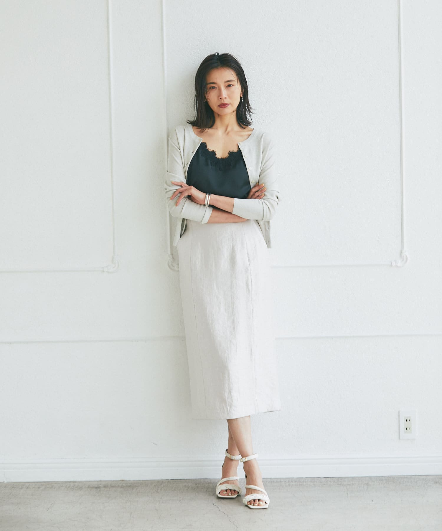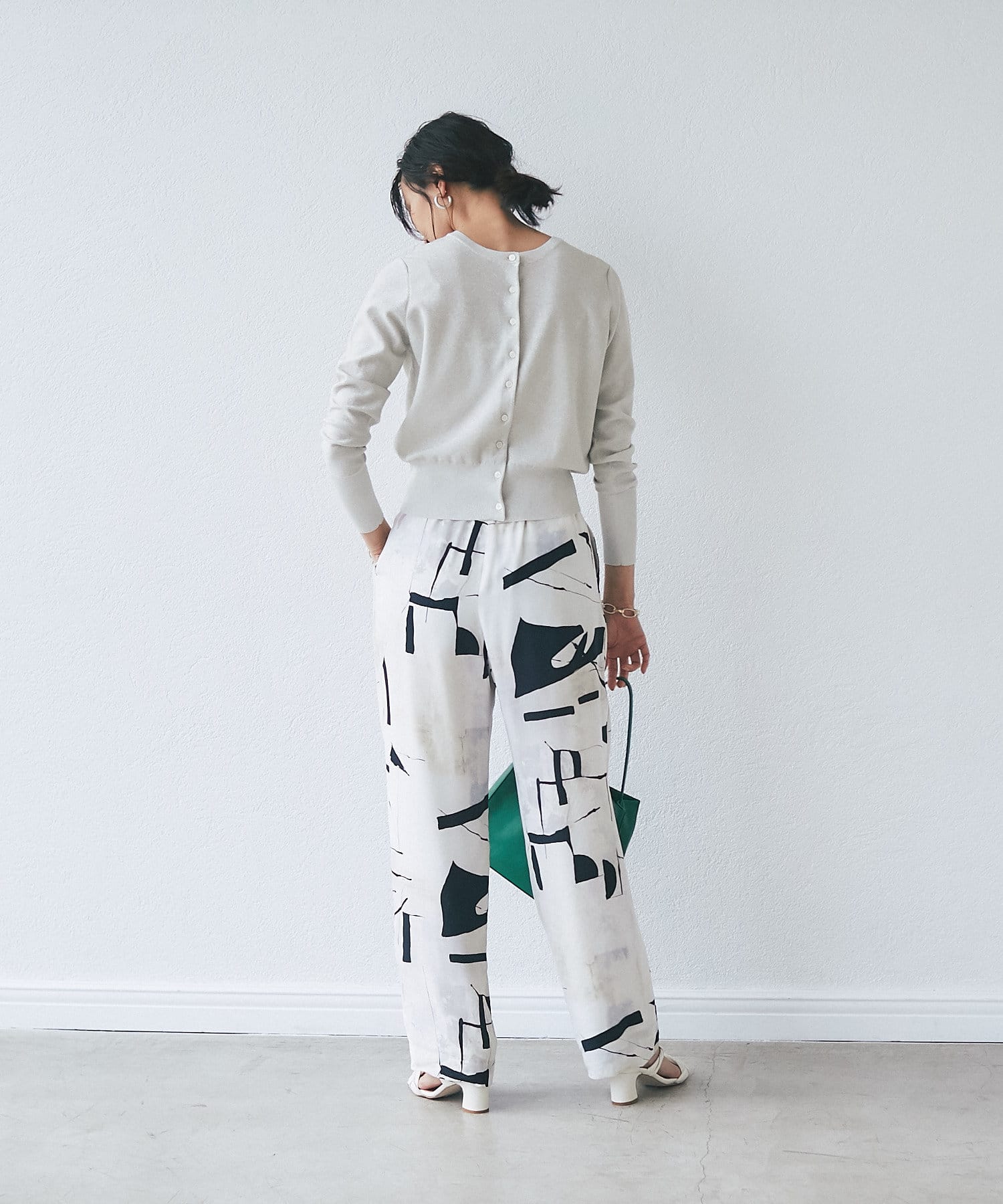 ゆとりのあるアイラインボトムでまとめると、腰回りがすっきりみえます。