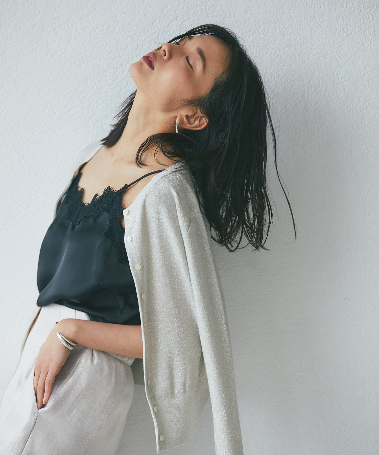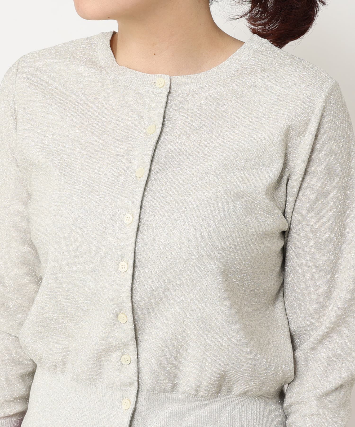 TOP > RIVE DROITE > レディース > トップス > カーディガン/ボレロ > 【LIVE紹介・上品なラメに上質な着心地】ラメプレーティング2WAYニット