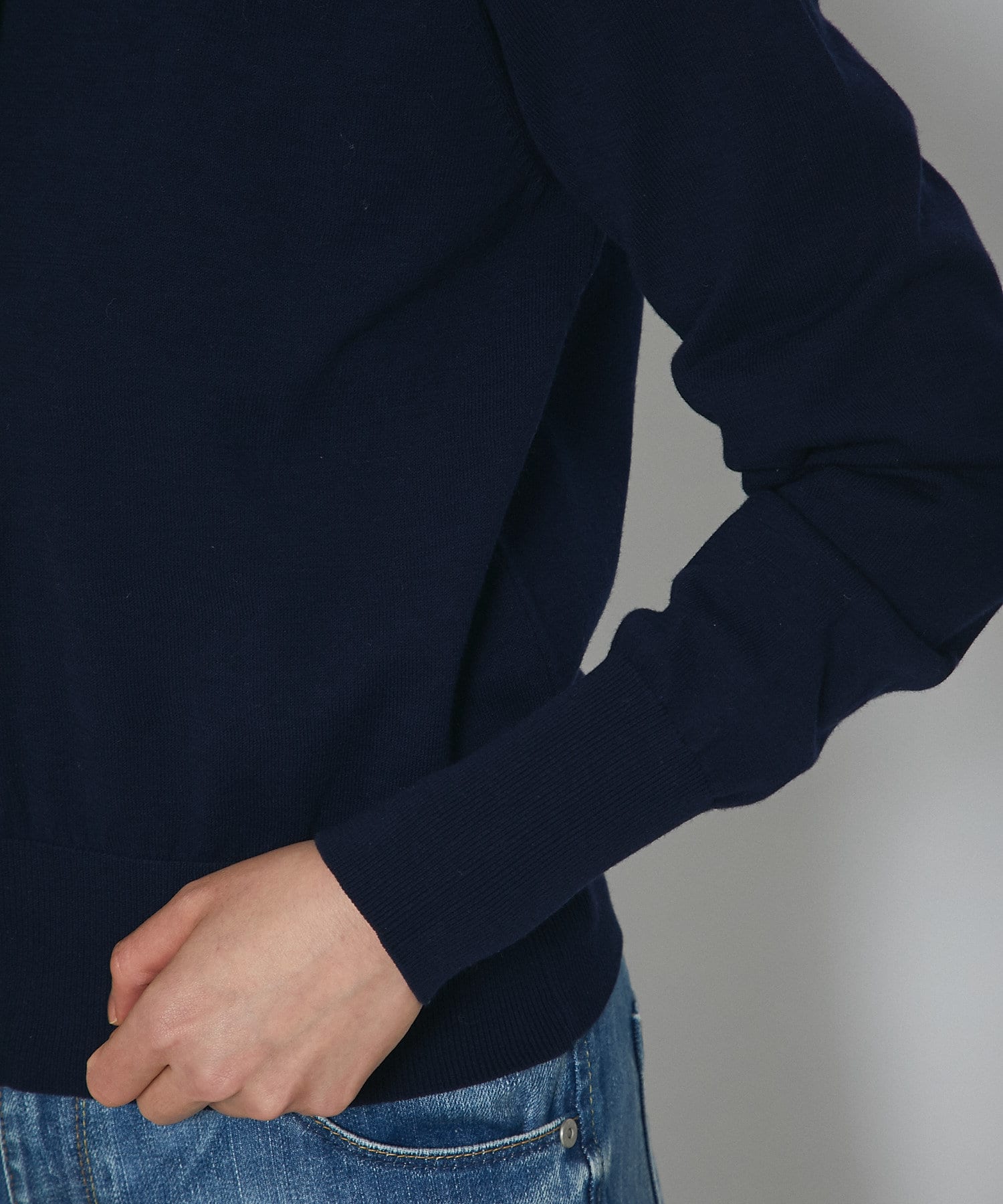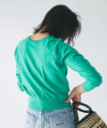クロップド風ニットは、鮮度のある短めの丈感で仕上げています。またプルオーバーとカーディガンの前後2WAY仕様でCOOLCOTTONという綿の強撚糸でお作りしており、綿ならではの優しい冷感を出しています。袖口や裾に細めのリブを長めにデザインしており、コンパクトで華奢な印象に。