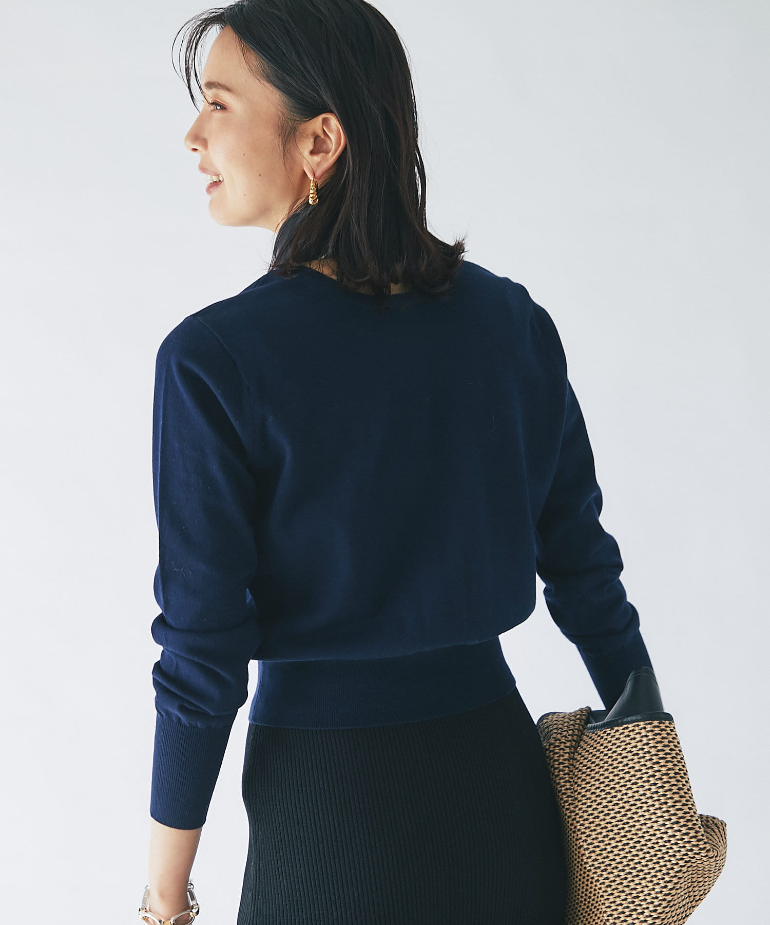 今年トレンドの短丈のニット・カーディガンは、シンプルでありながらトレンドをしっかり抑え、