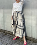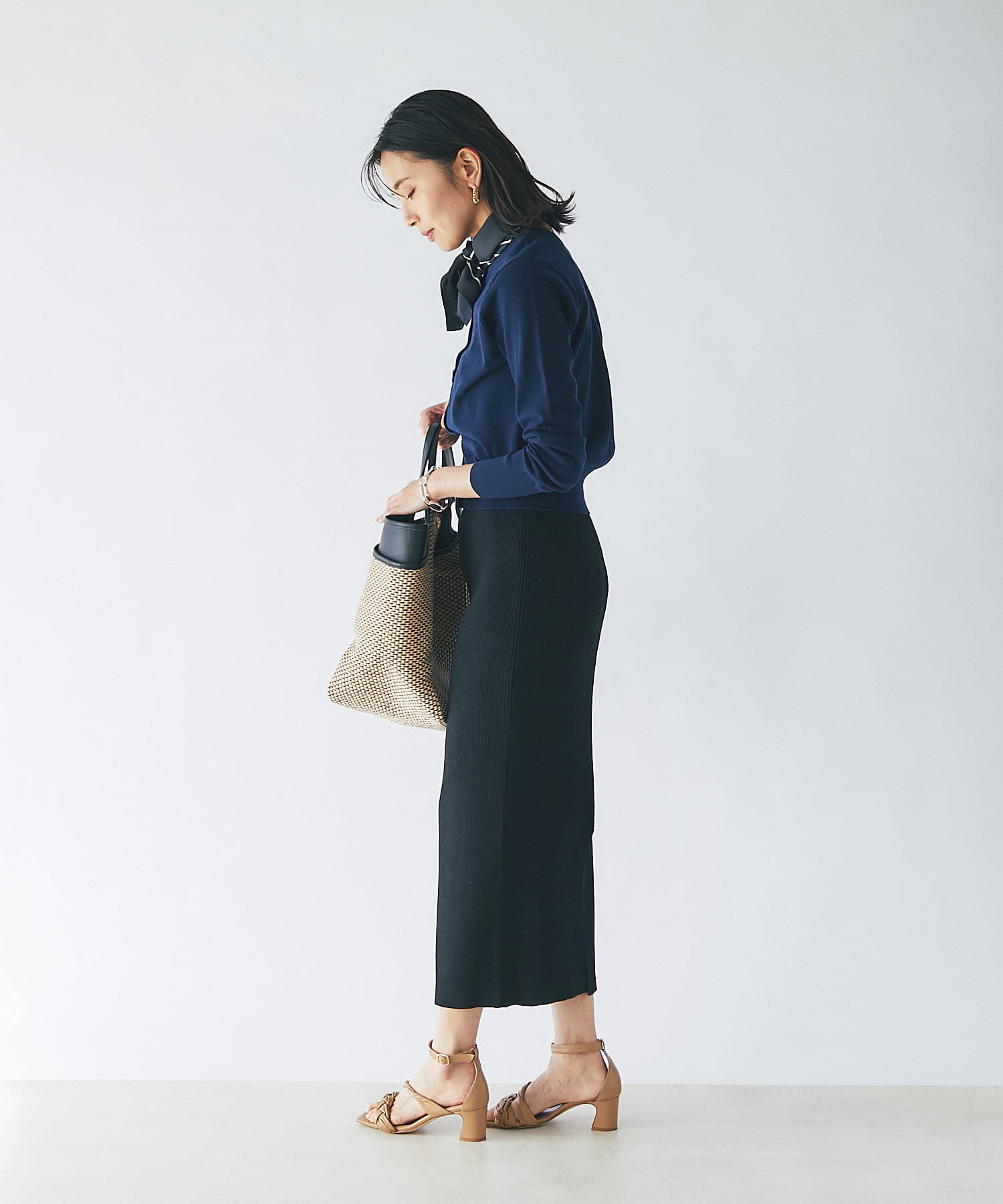 今季のボトムスとも着回ししやすいアイテムになっています。ワイドパンツやフレアスカートでボリュームのバランスを整えると◎脚長効果も期待できる一枚です。