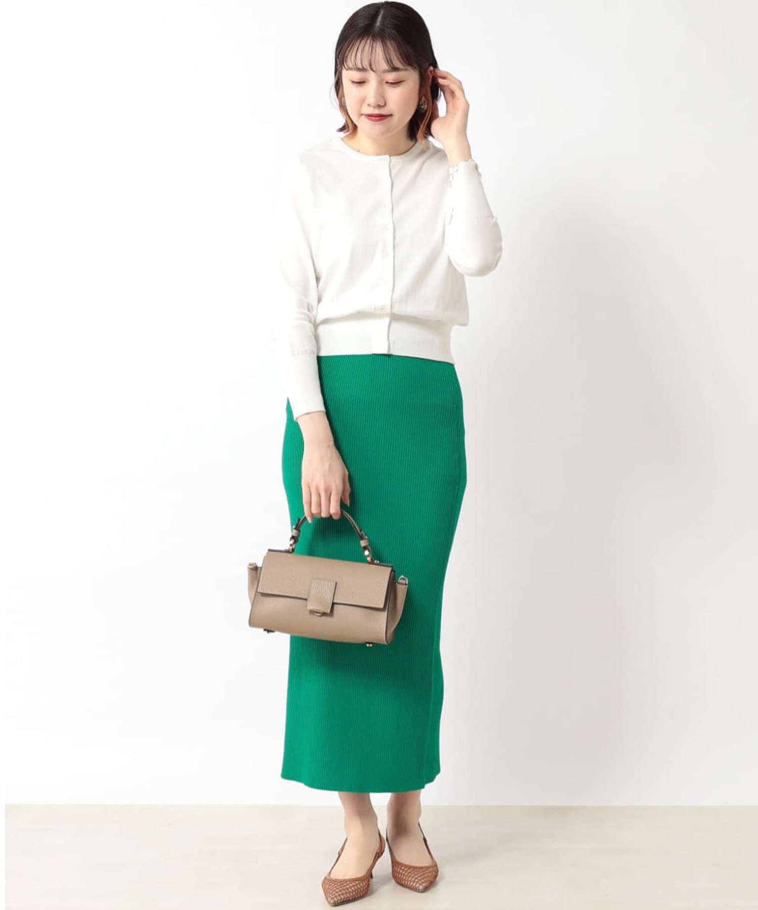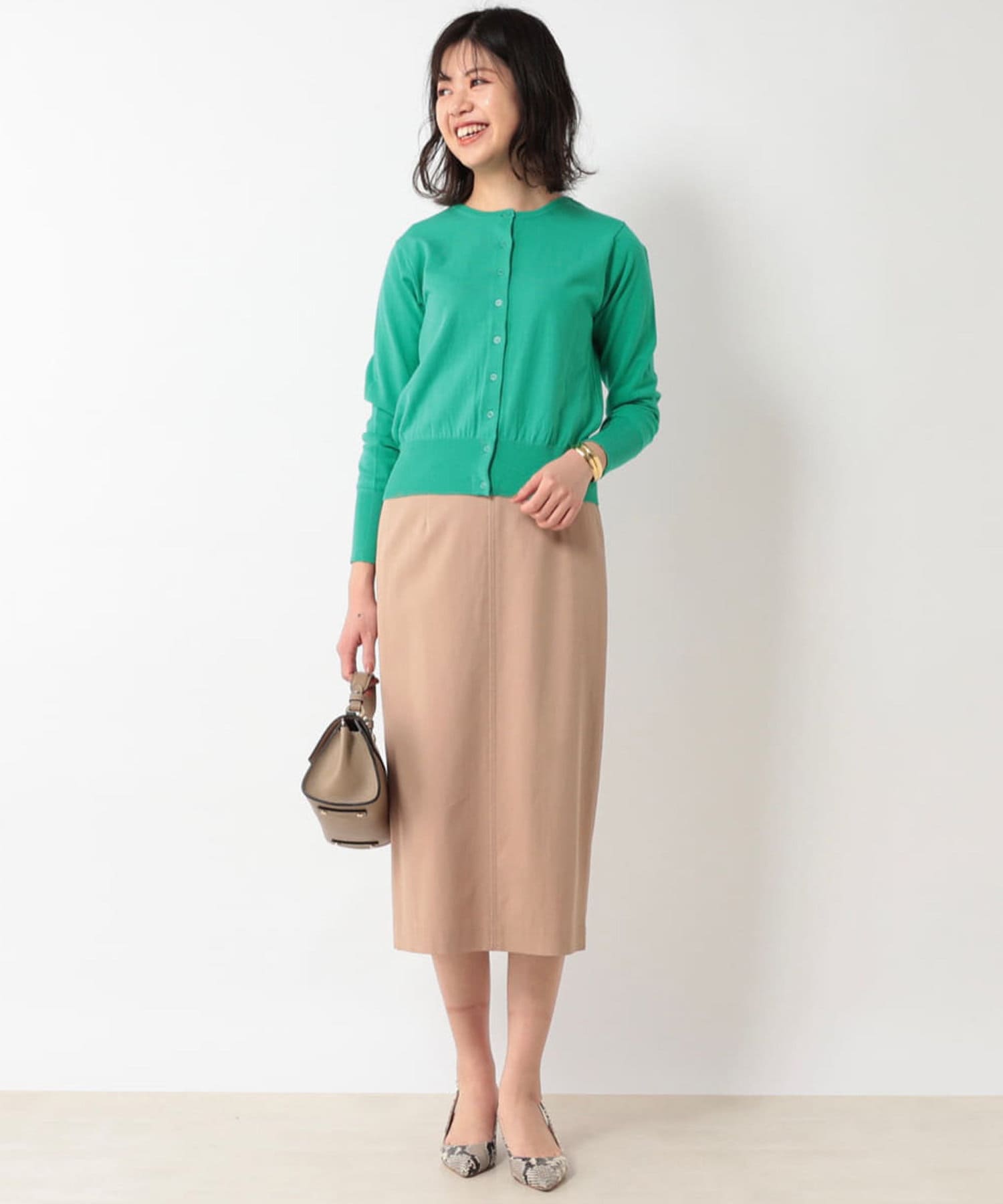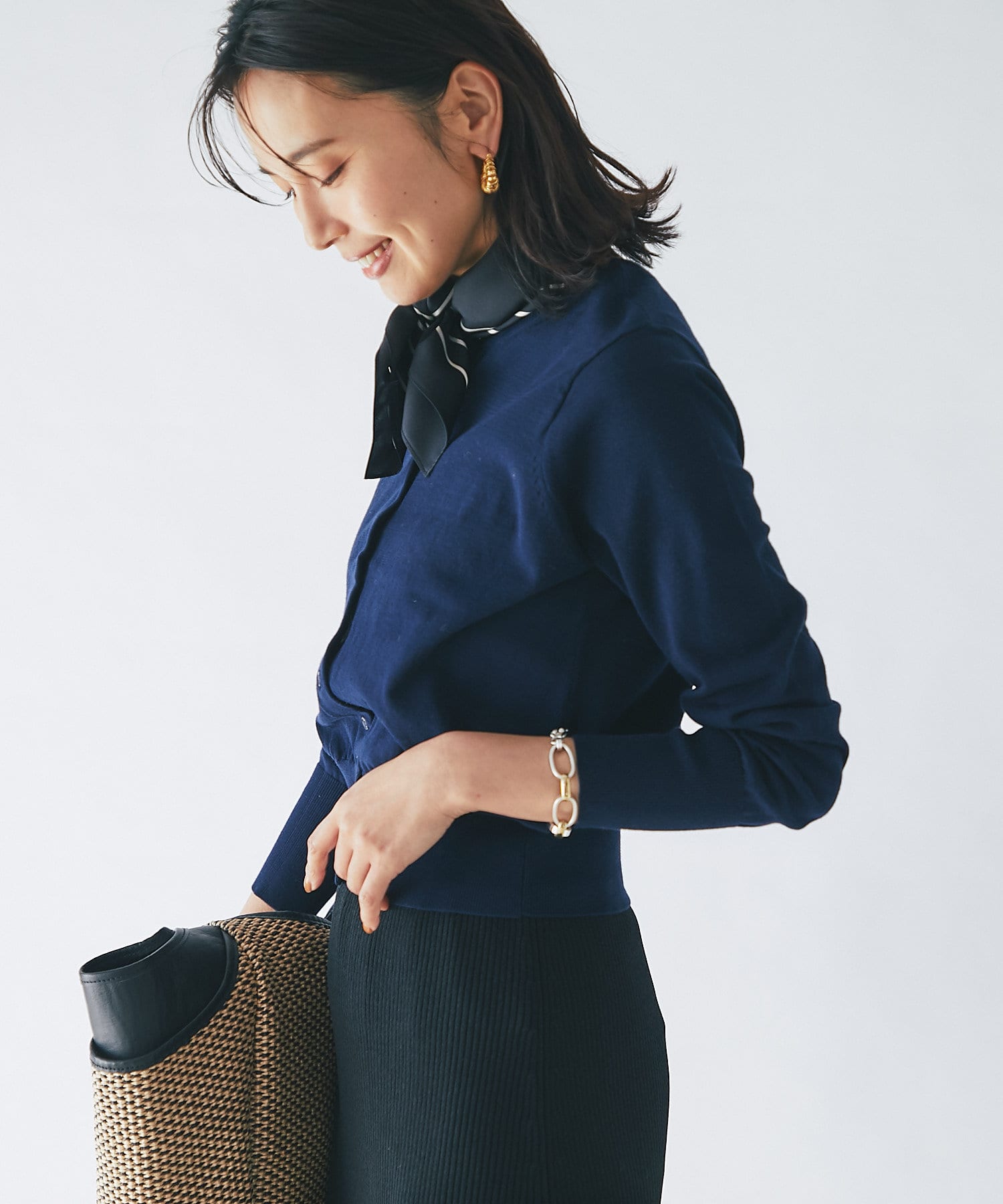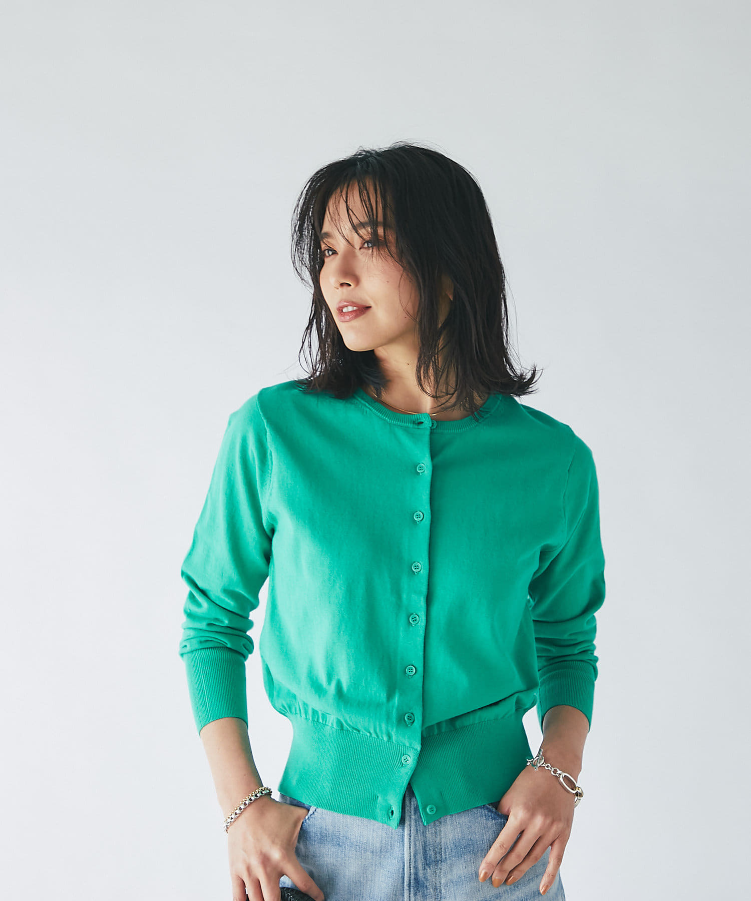 今年トレンドの短丈のニット・カーディガンは、シンプルでありながらトレンドをしっかり抑え、
