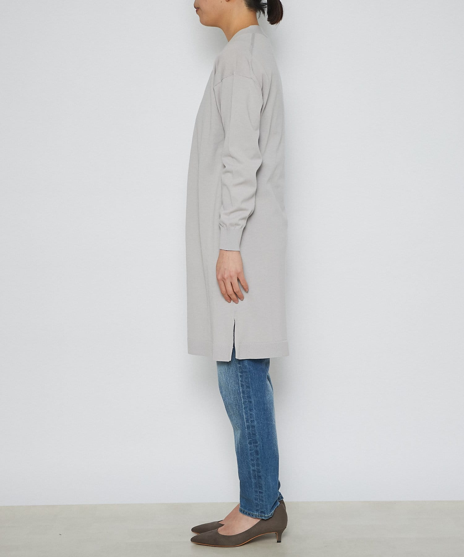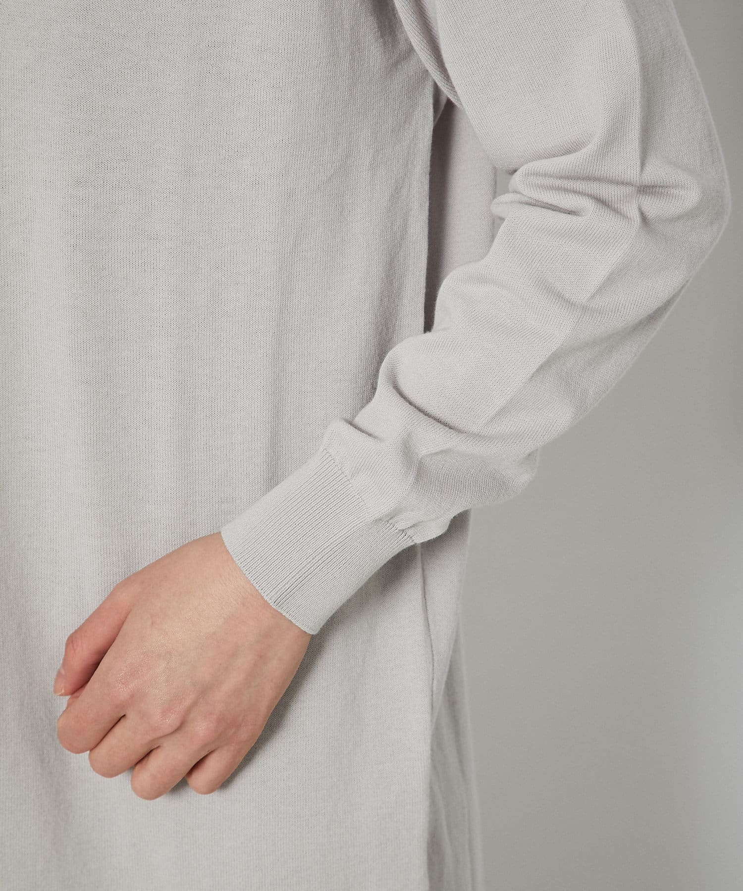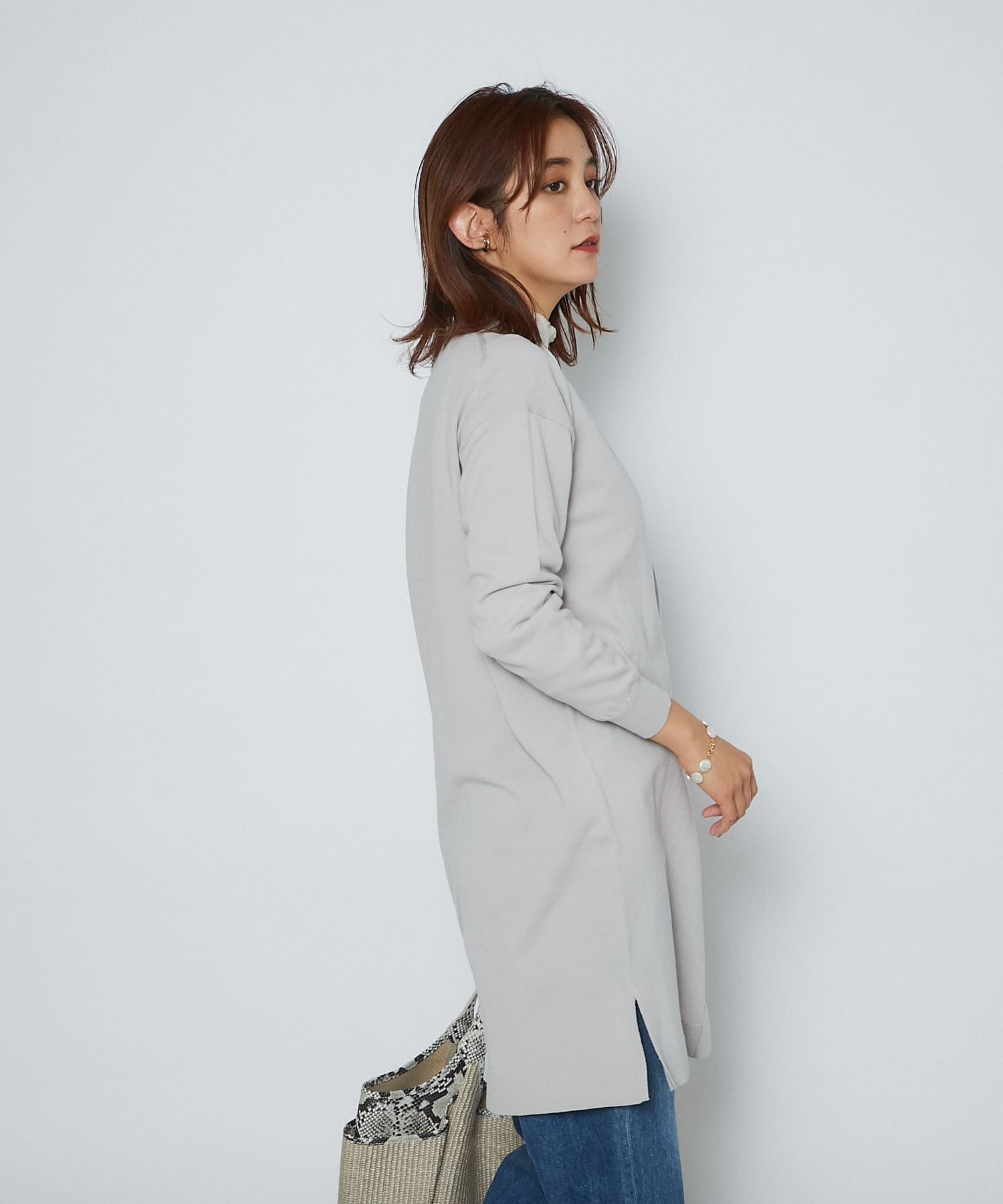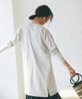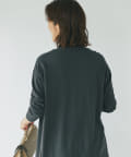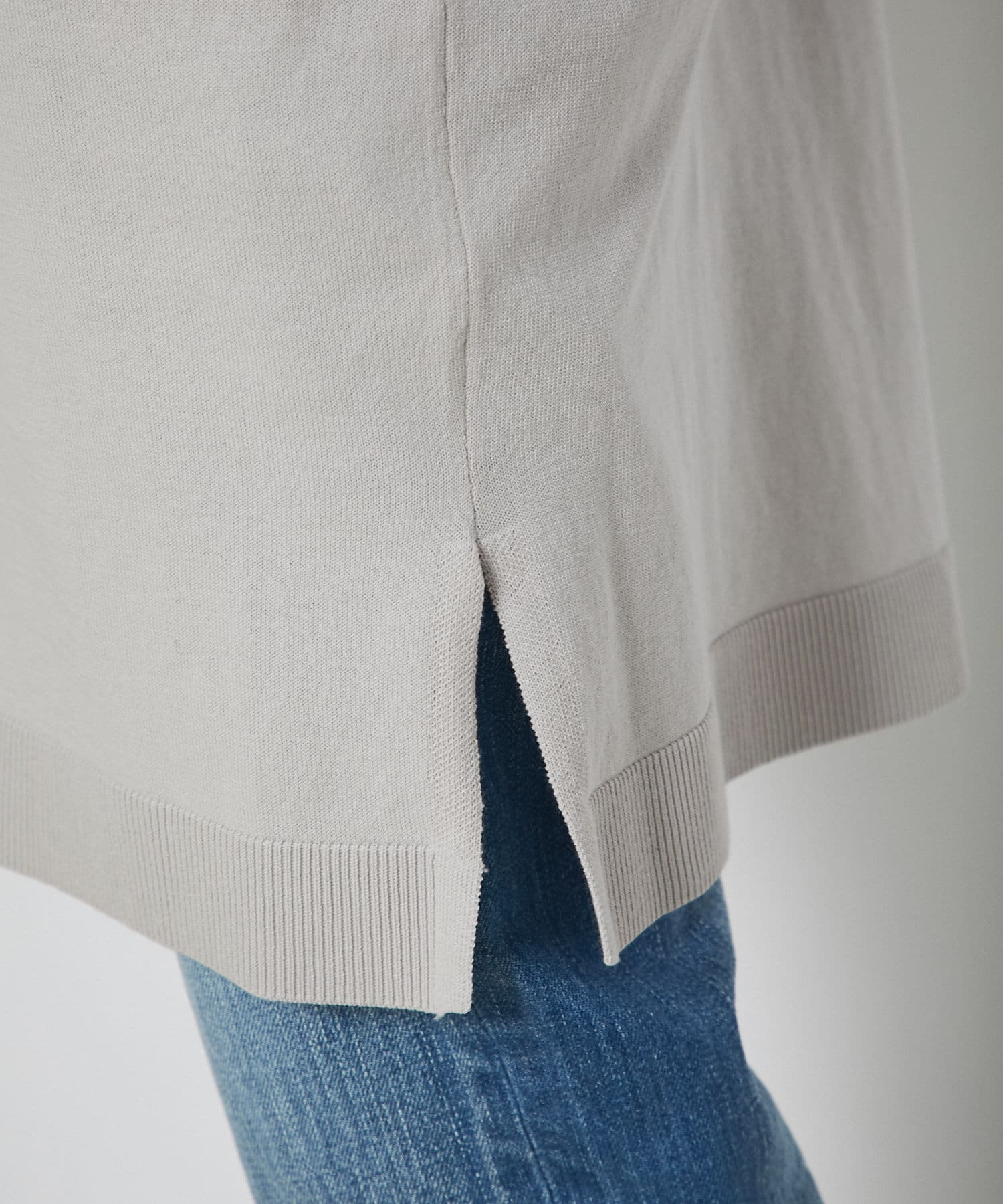 接触冷感のトッパーニット。ヒップまですっぽり隠れる丈感で、気になる腰回りもカバーしてくれる優秀なアイテム。前立てのボタンが一つなのもシンプルで着回ししやすく、カジュアルながらも品よくスマートに着用していただけます。