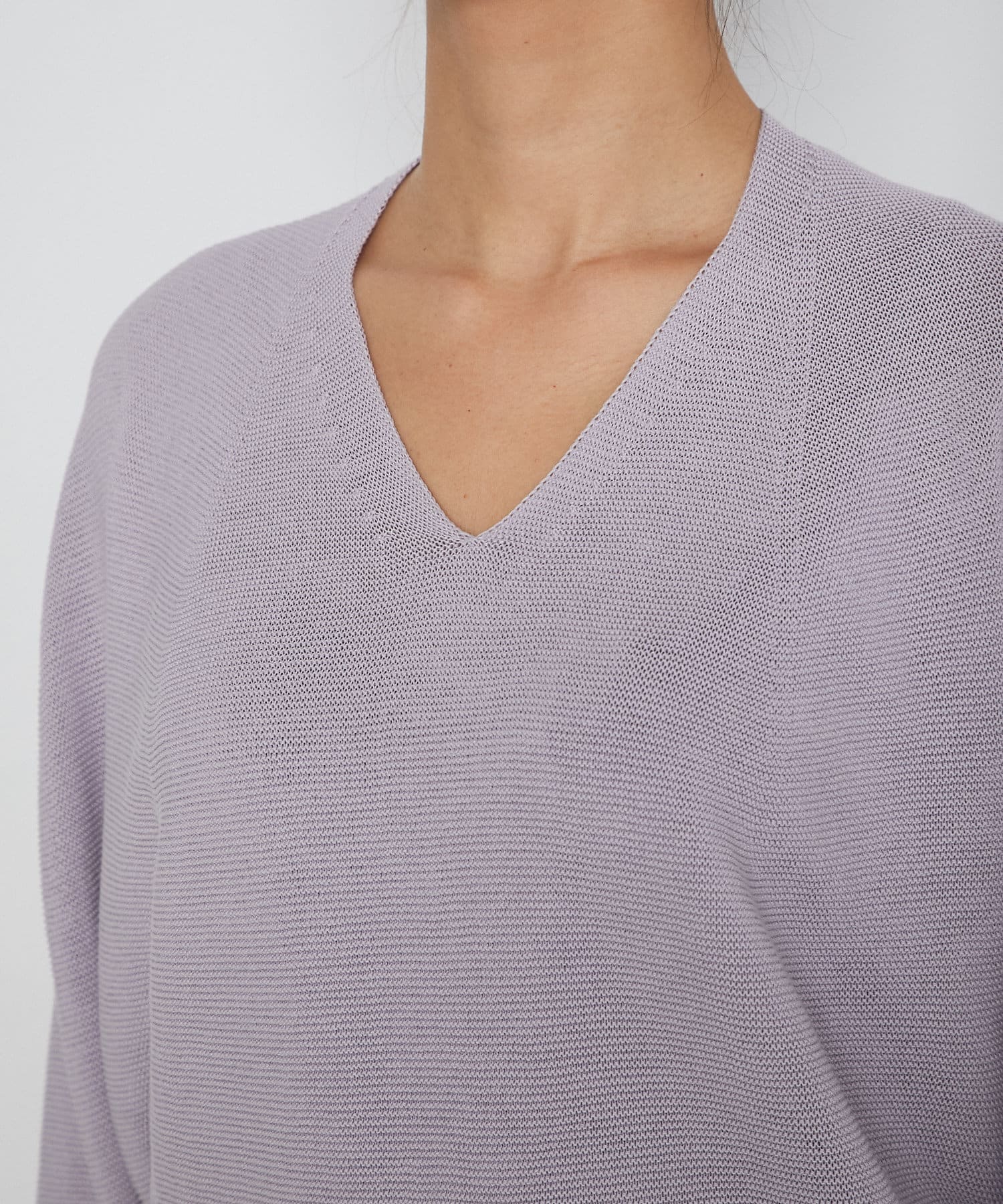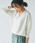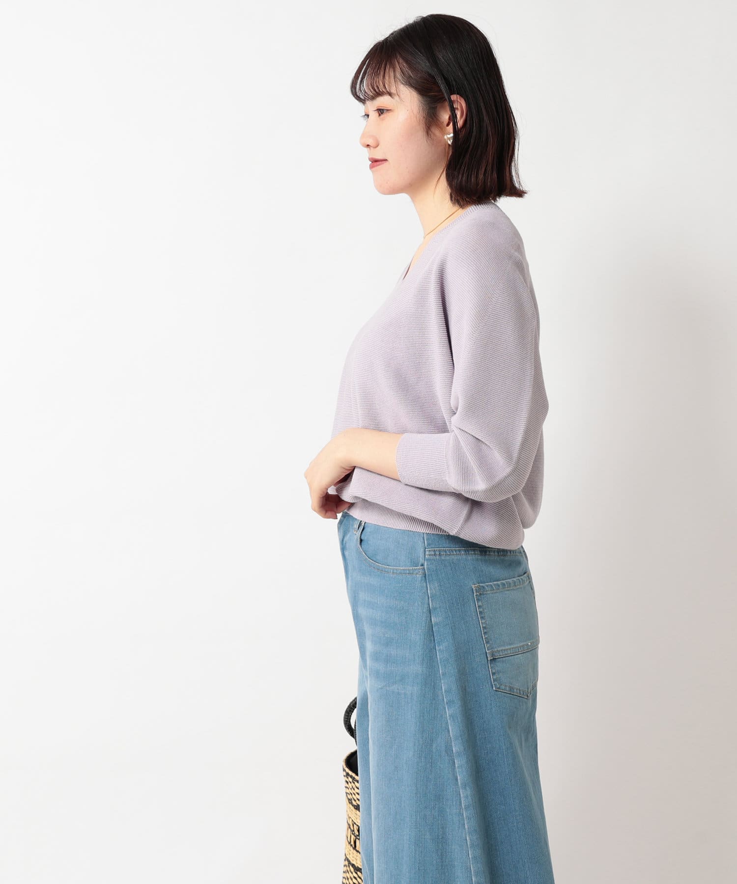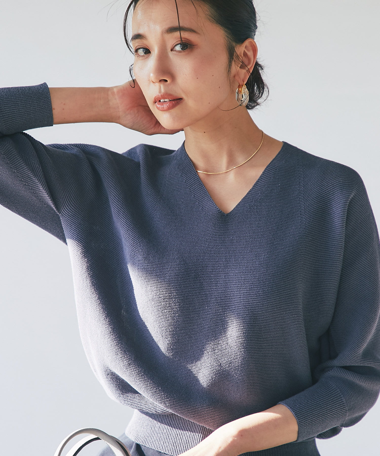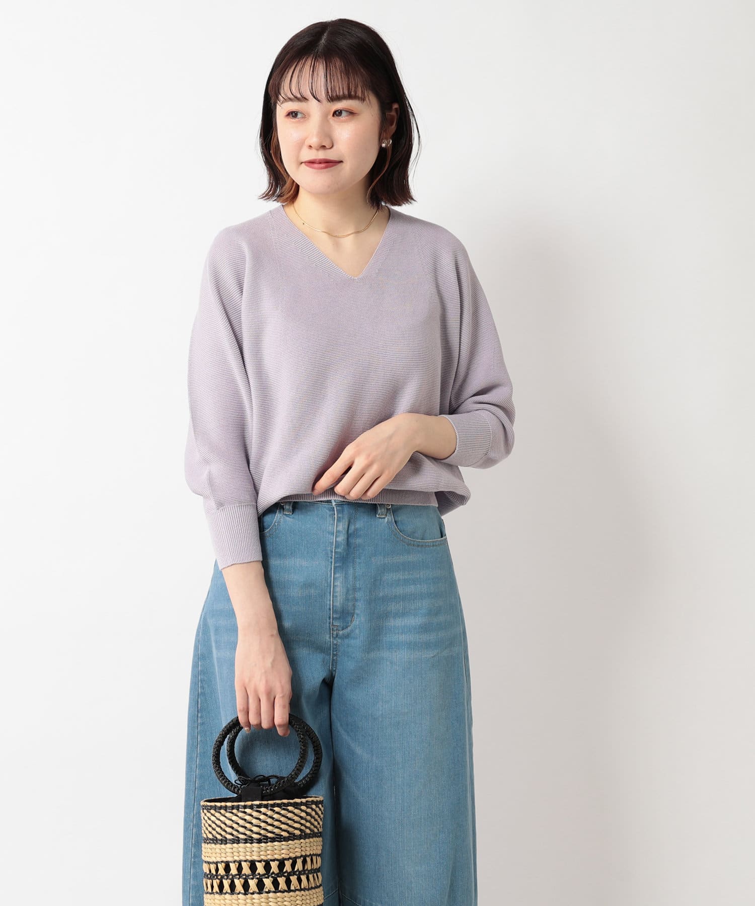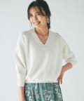 定番のバックボリュームニットは、シャープなVネックで顔周りをすっきりと見せてくれます。淡いピンクが春らしくてイチ押しのカラーです。