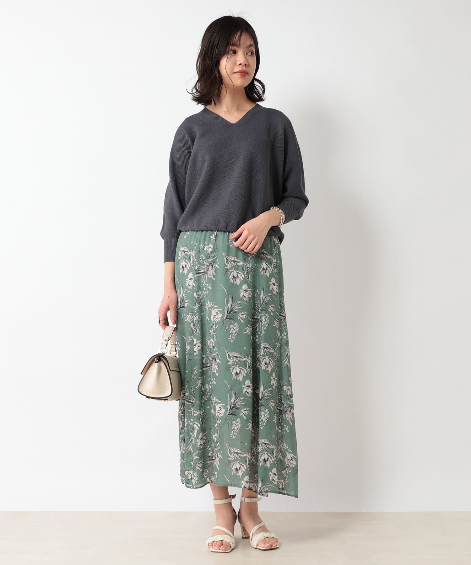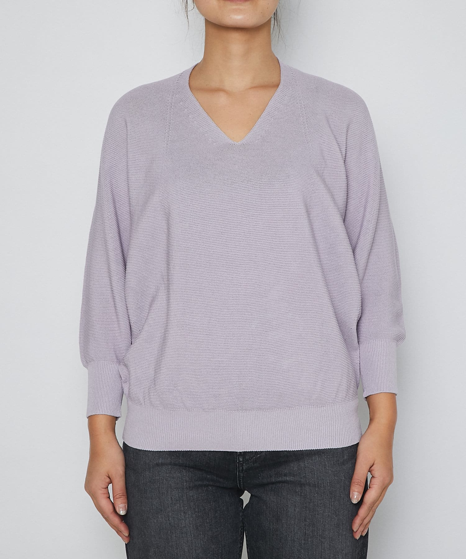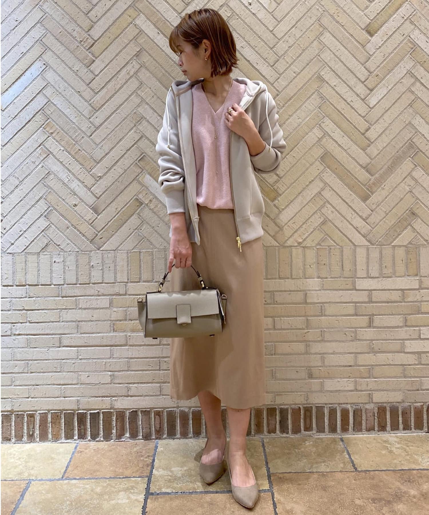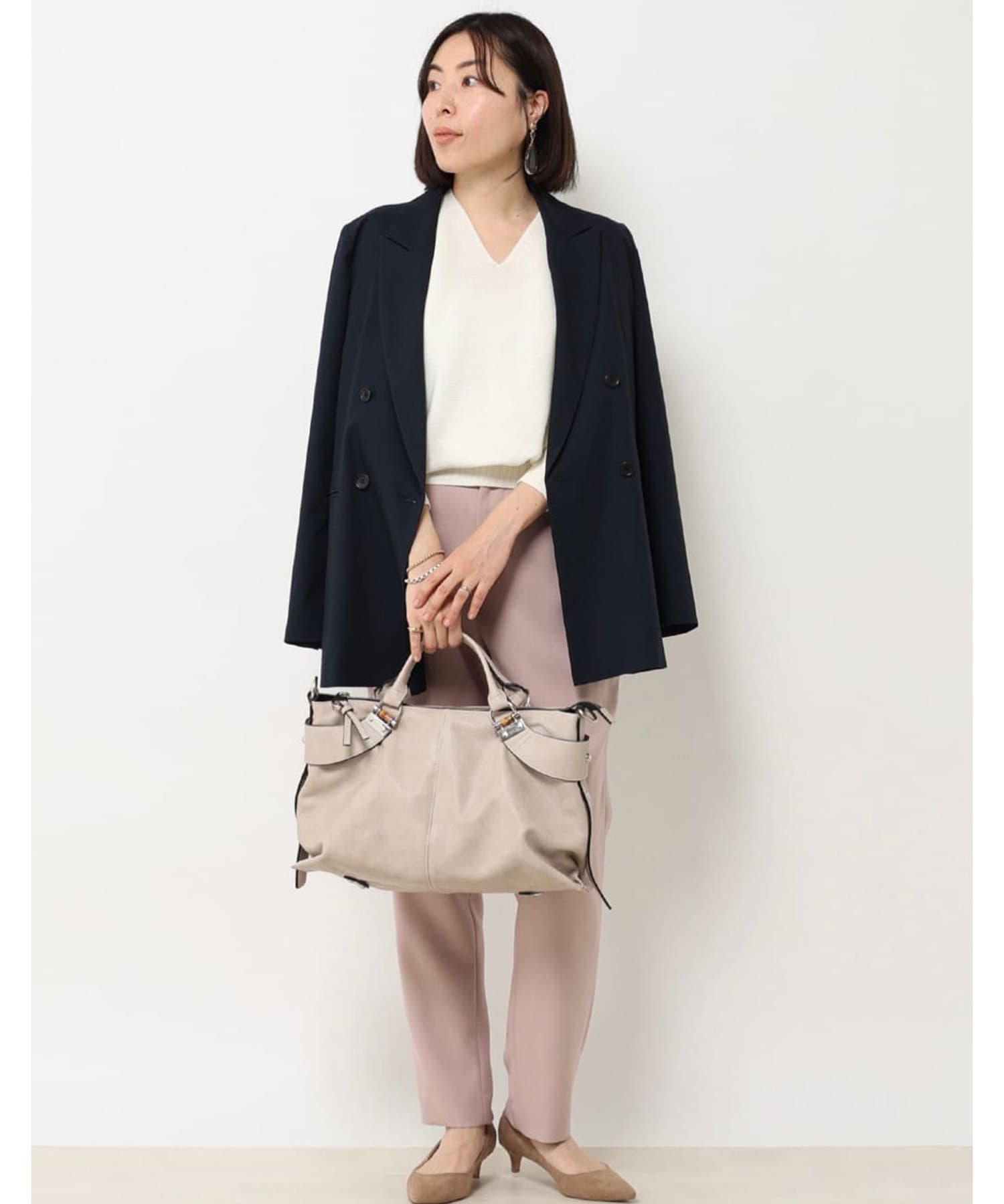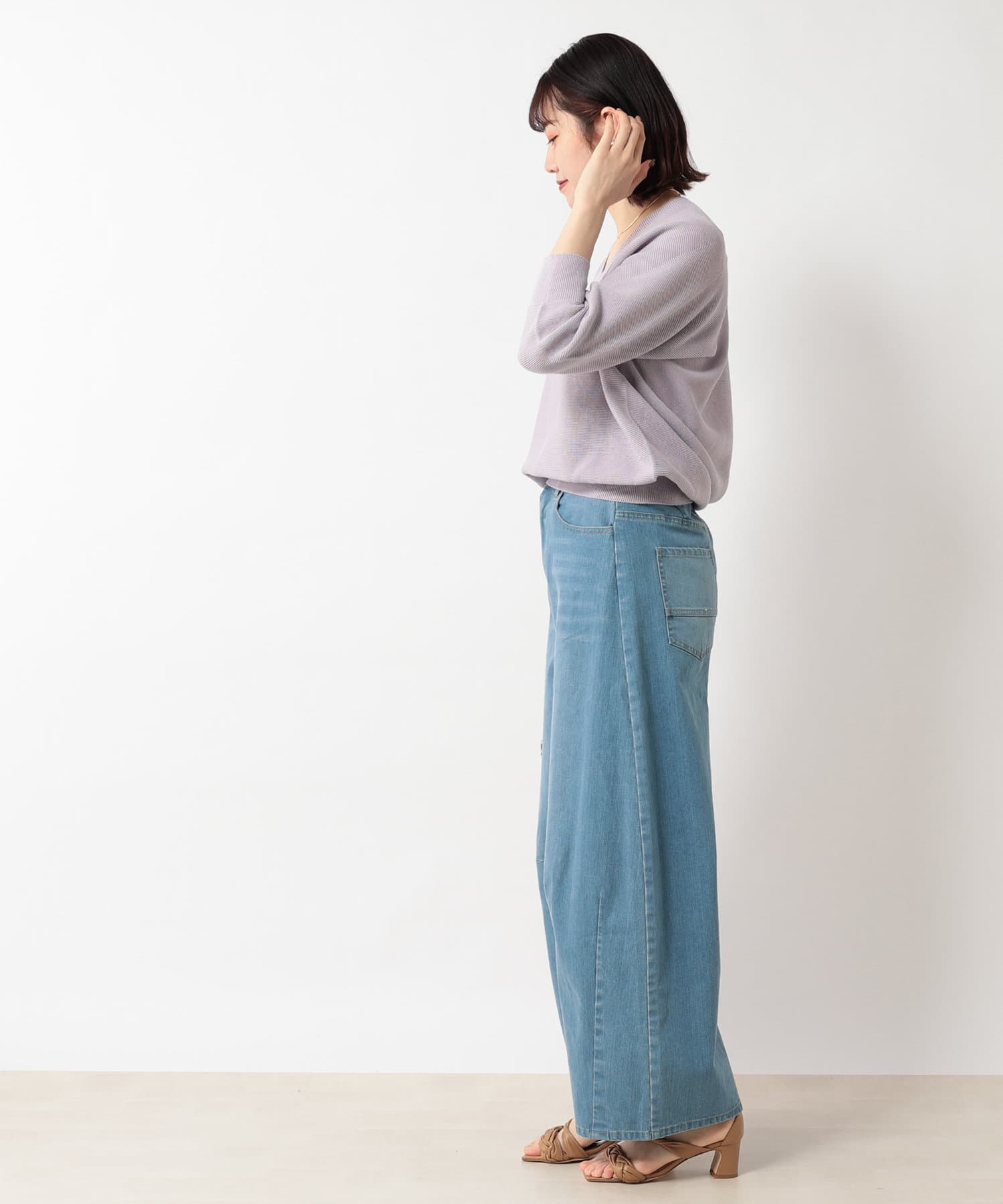 定番のバックボリュームニットは、シャープなVネックで顔周りをすっきりと見せてくれます。淡いピンクが春らしくてイチ押しのカラーです。