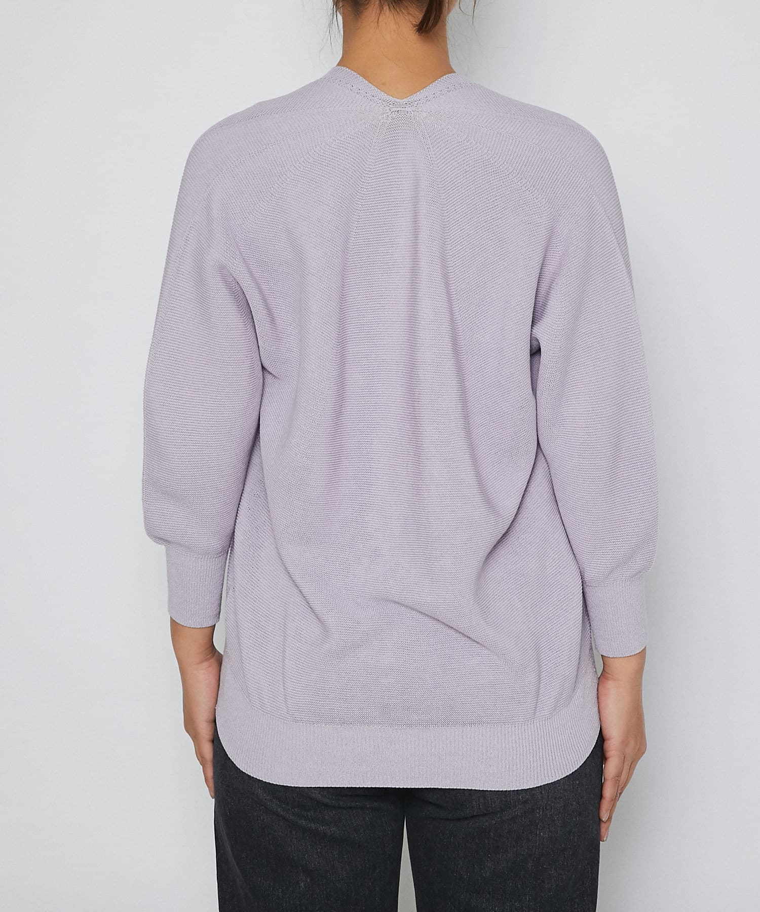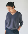 軽やかで爽やかな風合いのバックボリュームニットは、麻のようなシャリシャリとした風合いが特徴的。石油由来などの合成素材ではなく、天然素材が使用されており環境や身体にも優しい素材になっています。表情感があり肌ざわりが良くシンプルな編地は、春から初夏まで長く着て頂けます。