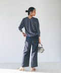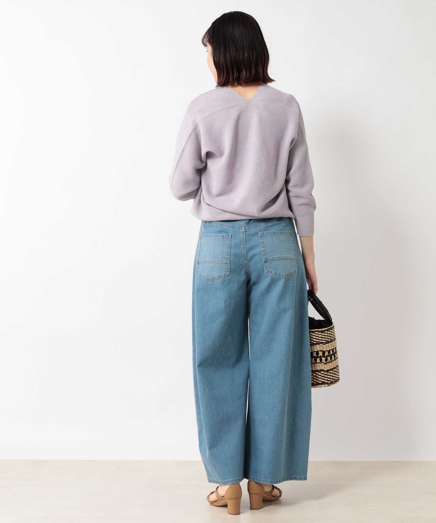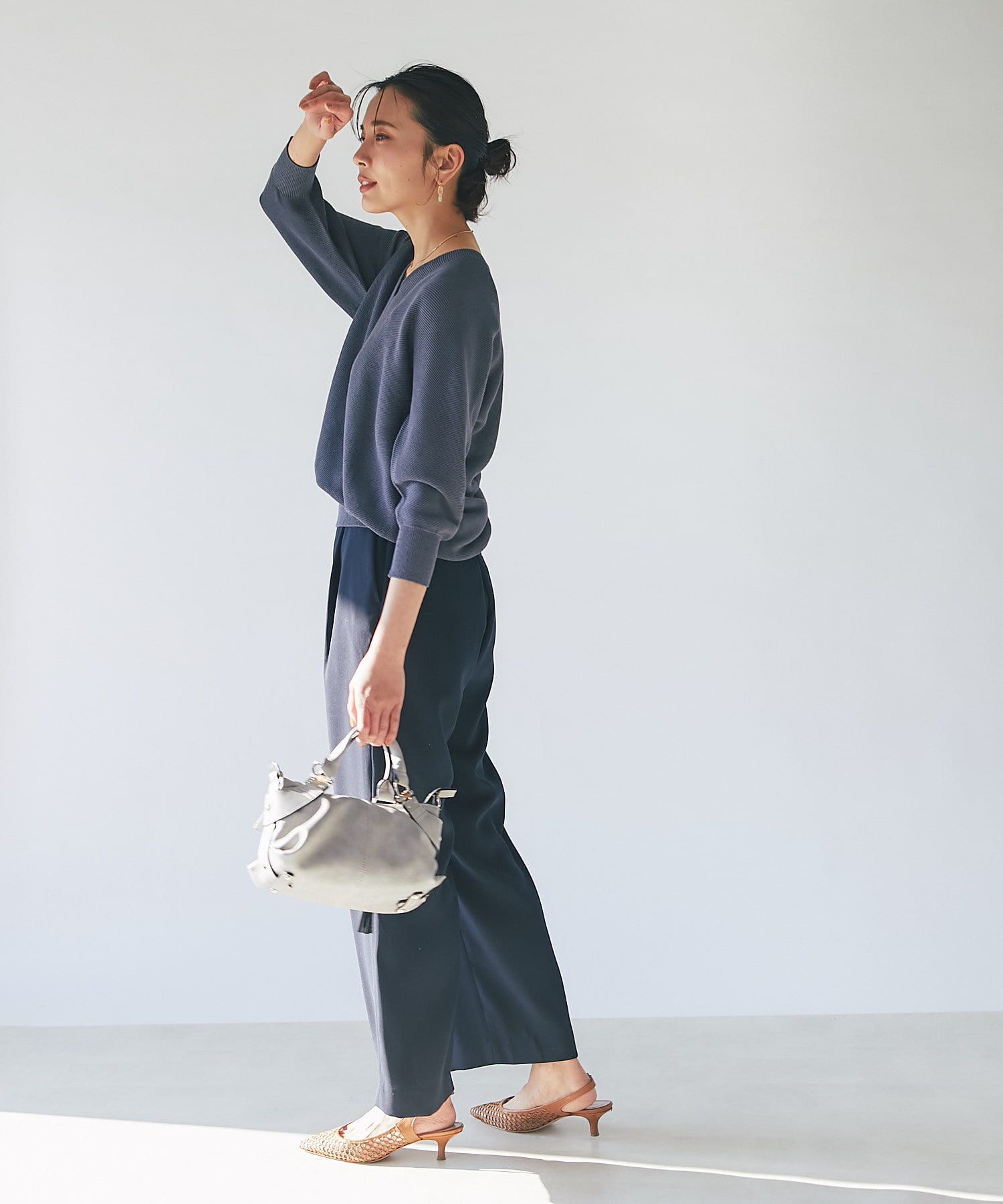 綺麗めなコーデにぴったりのバックボリュームニットですが、ガーター編みの凹凸感や綿の素材感からカジュアルスタイルにもおすすめな一枚。
