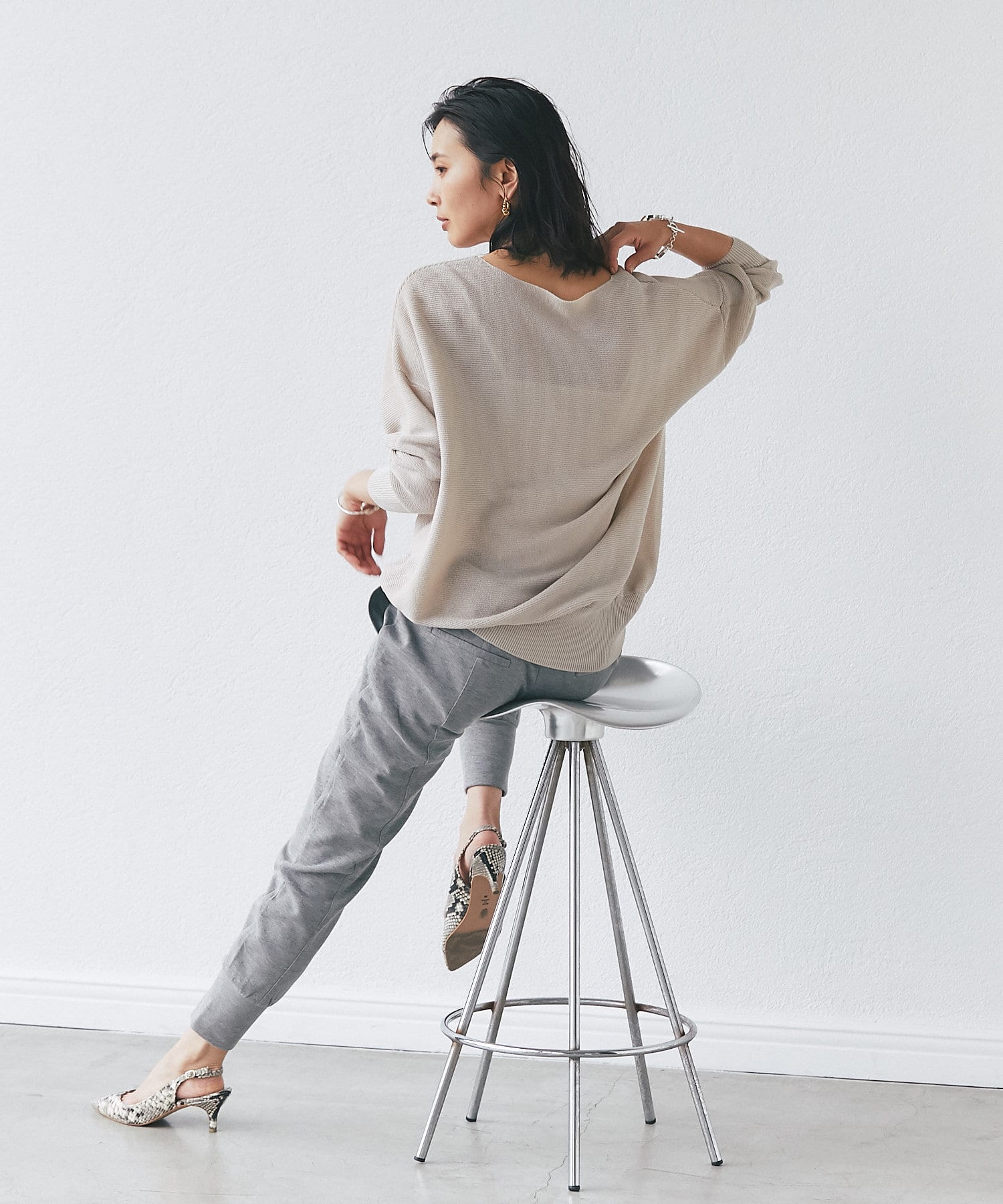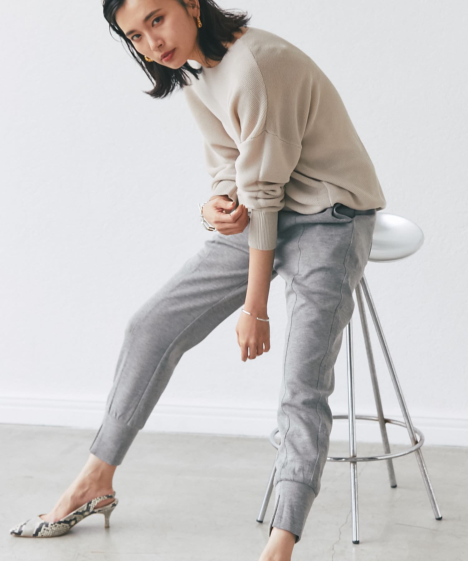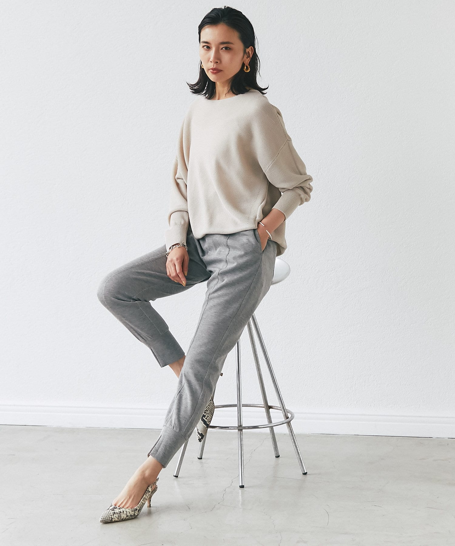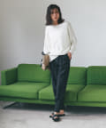落ち感のあるルーズなシルエットが女性らしい
