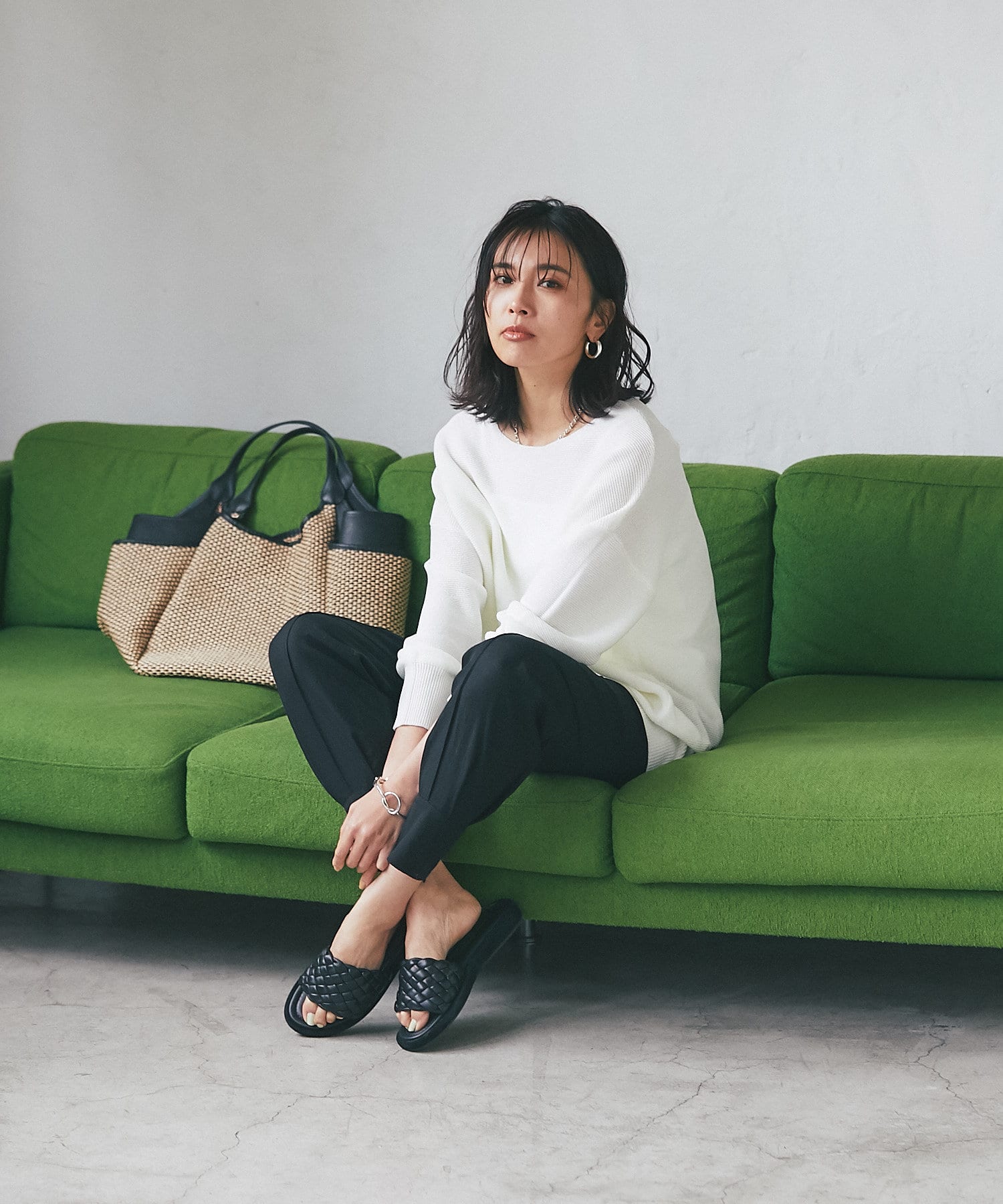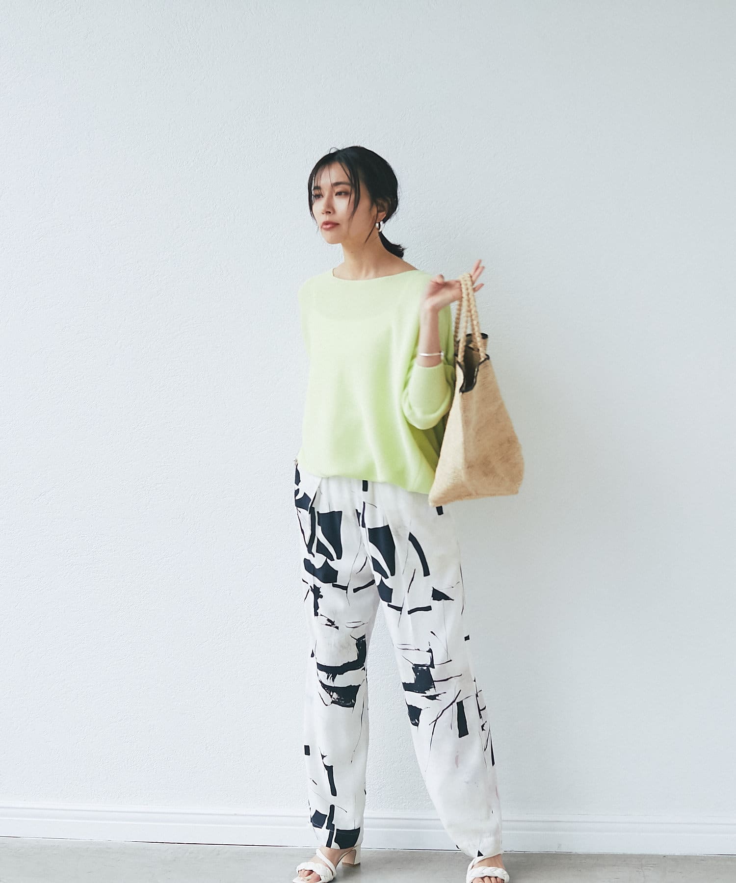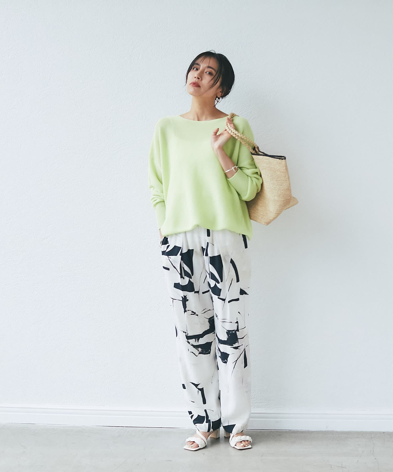 落ち感のあるルーズなシルエットが女性らしい