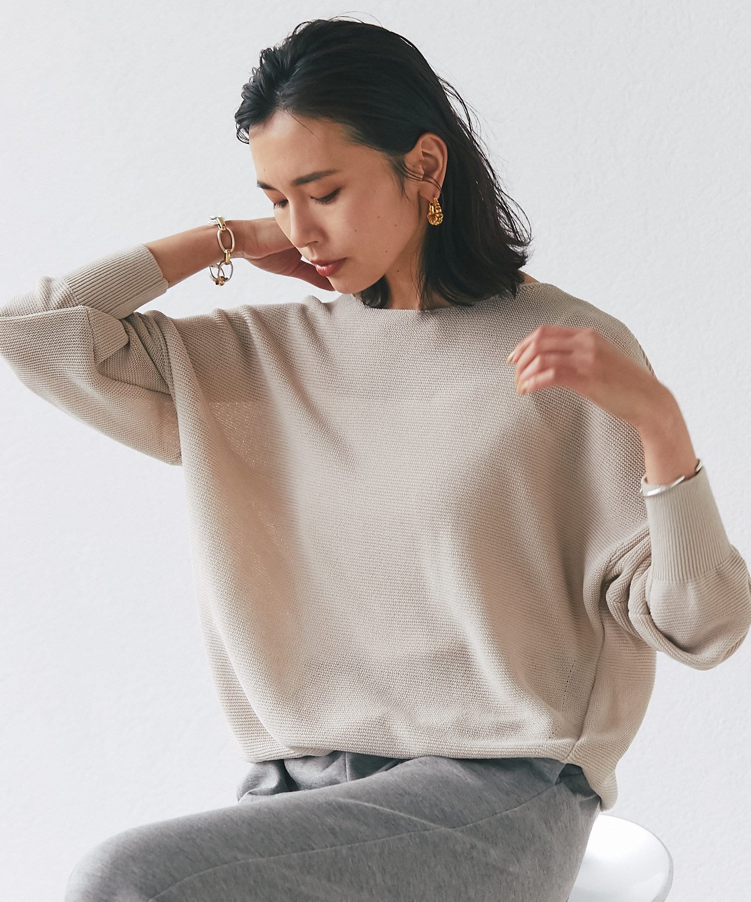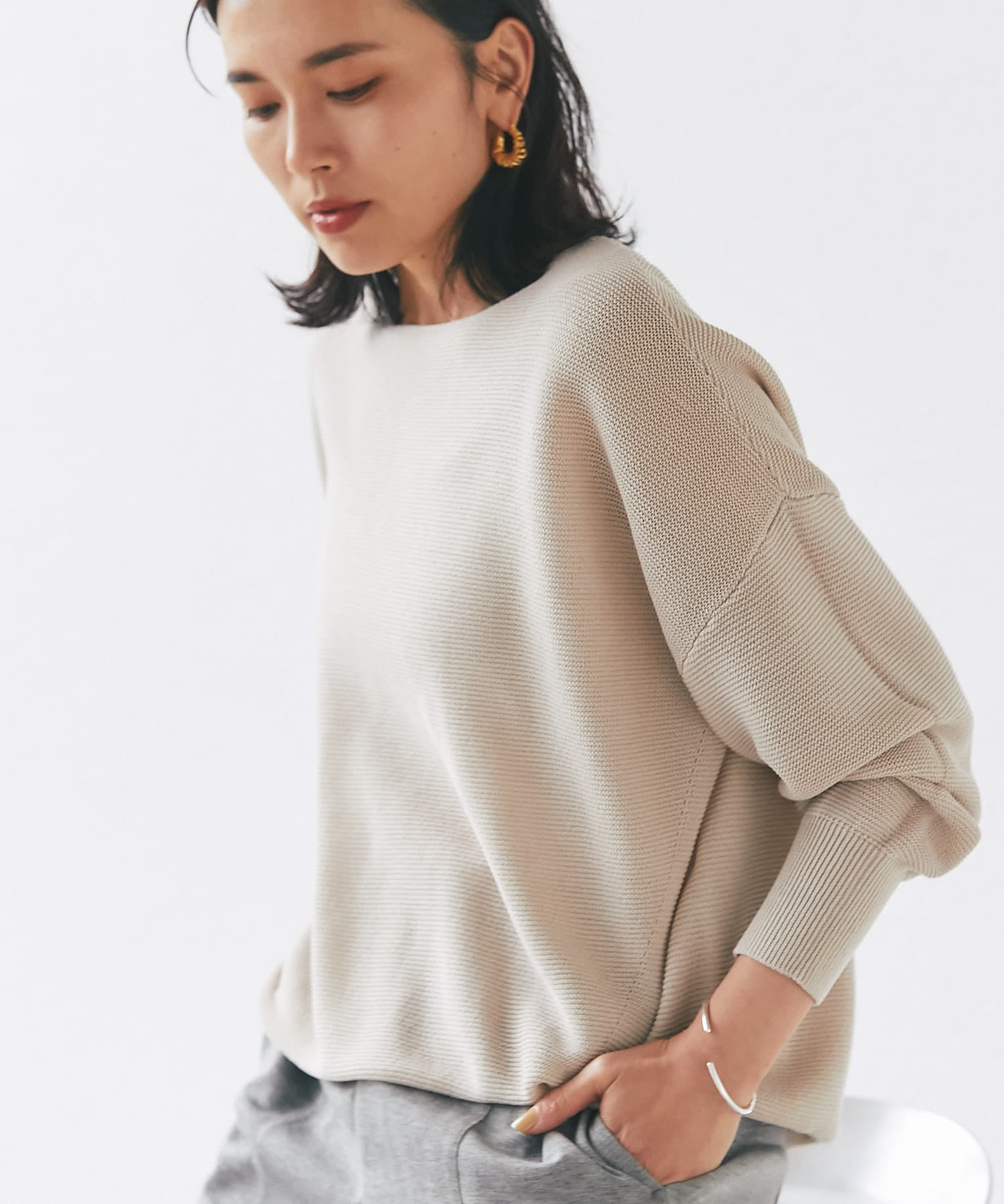 #今買いアイテム#大人カジュアル#心地良い服#デイリーユース#無地#長袖#ミドル丈#ニット#着映えニット#洗えるニット#シンプルニット #華やぎアイテム #リラックス#定番#ベーシック#ライトカラー#ベーシックアイテム#春#春物