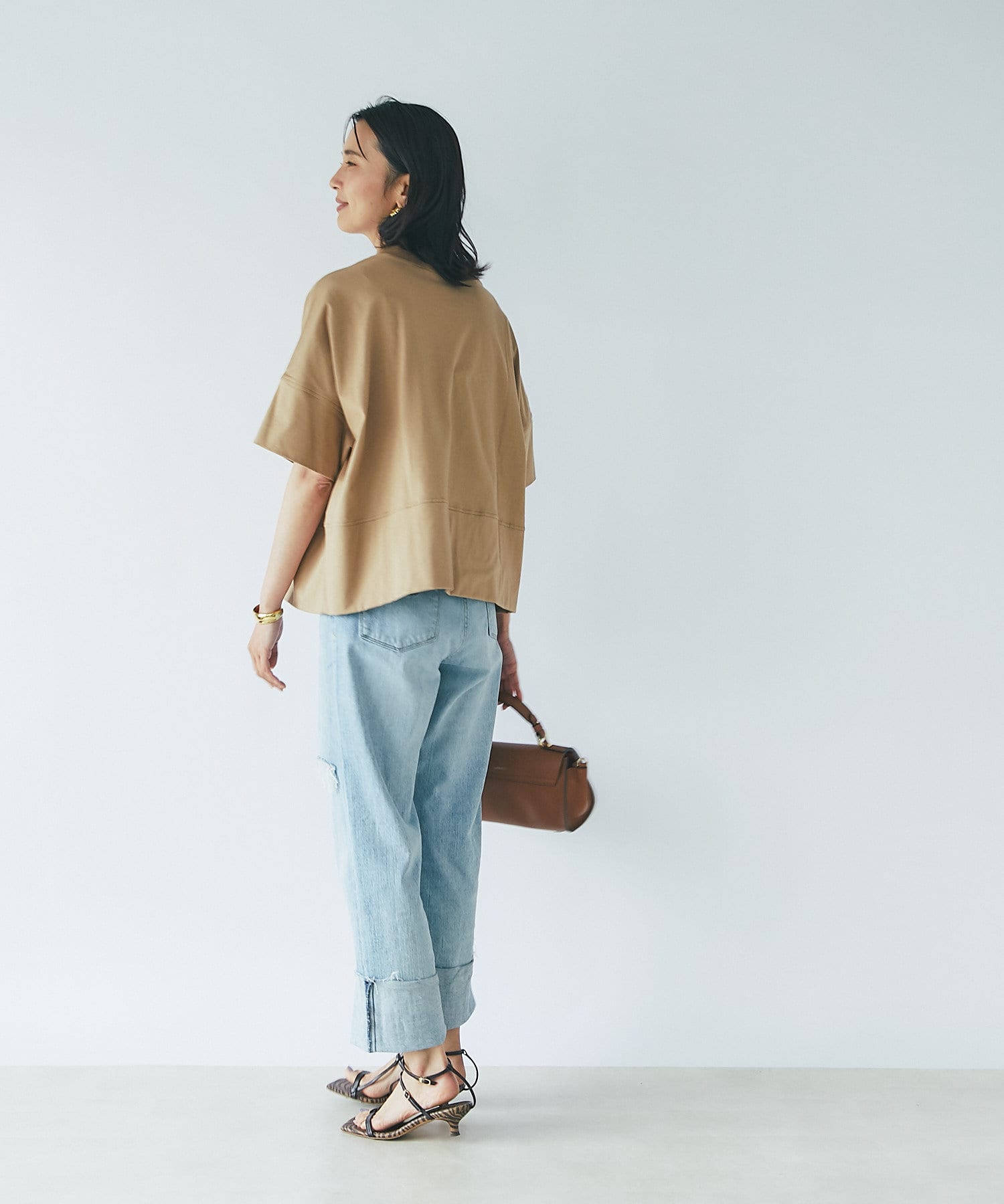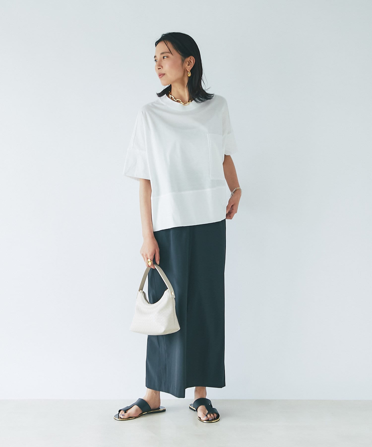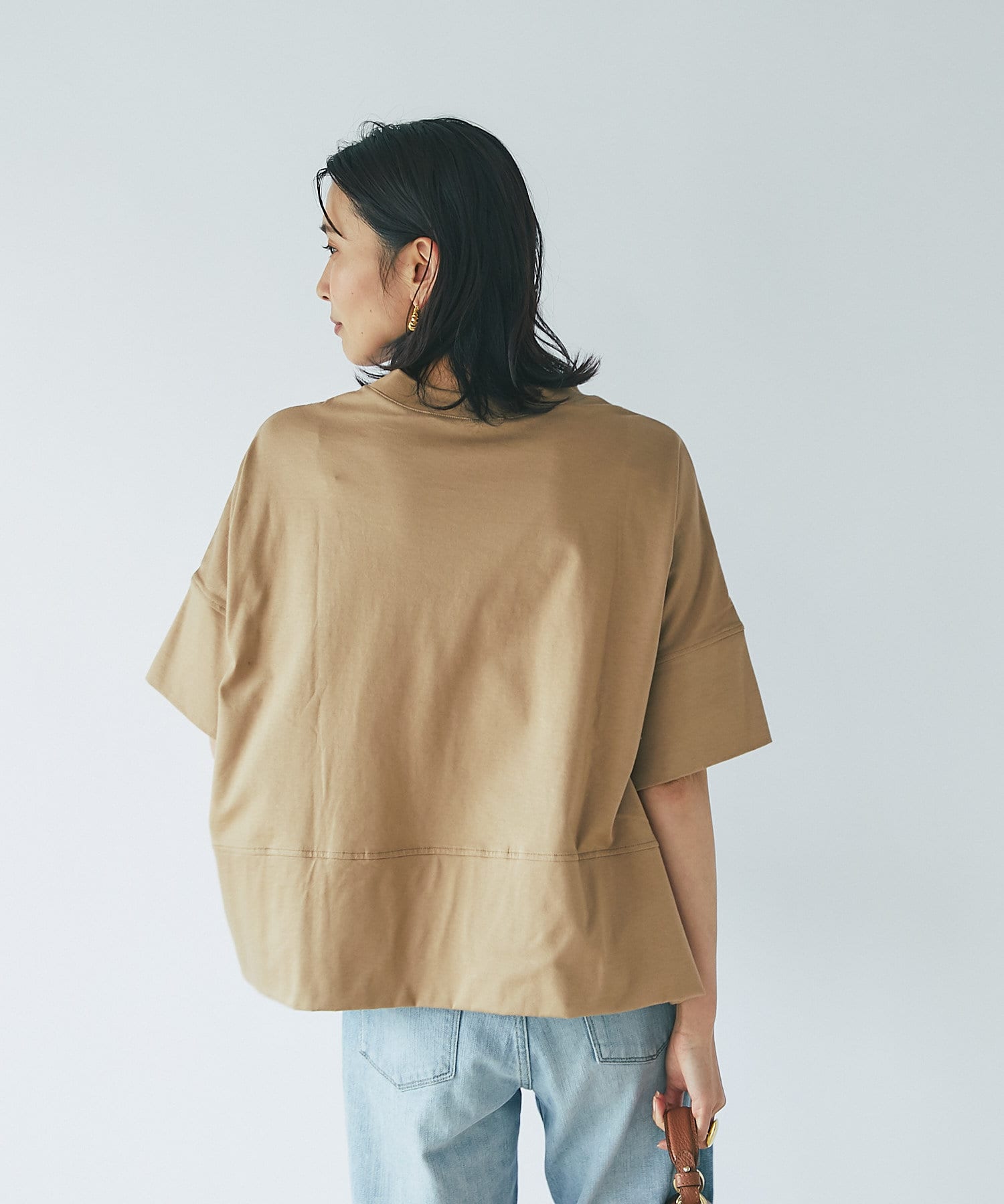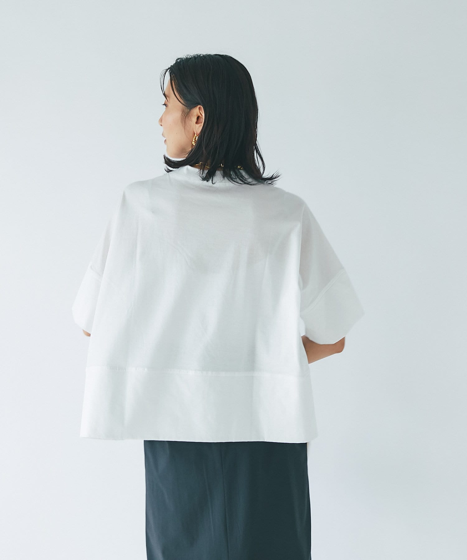 ショート丈なので、ワイドボトムやふわっと広がるスカートと合わせてもバランスよく着ていただけます。