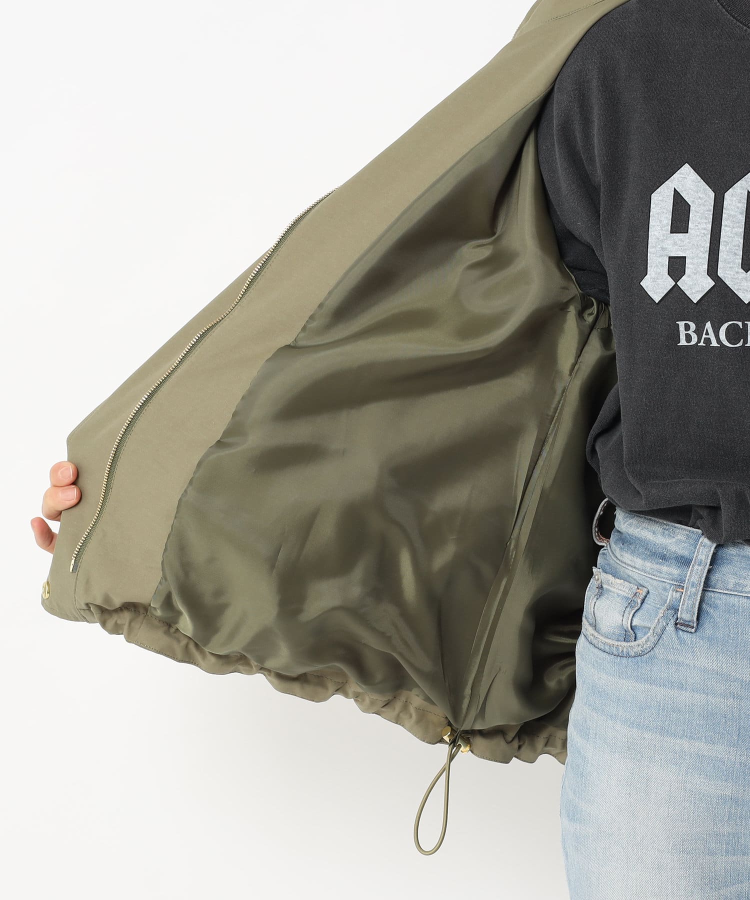 ジップや金具をマットゴールドでまとめているので、大人女子にお似合いのブルゾンです。