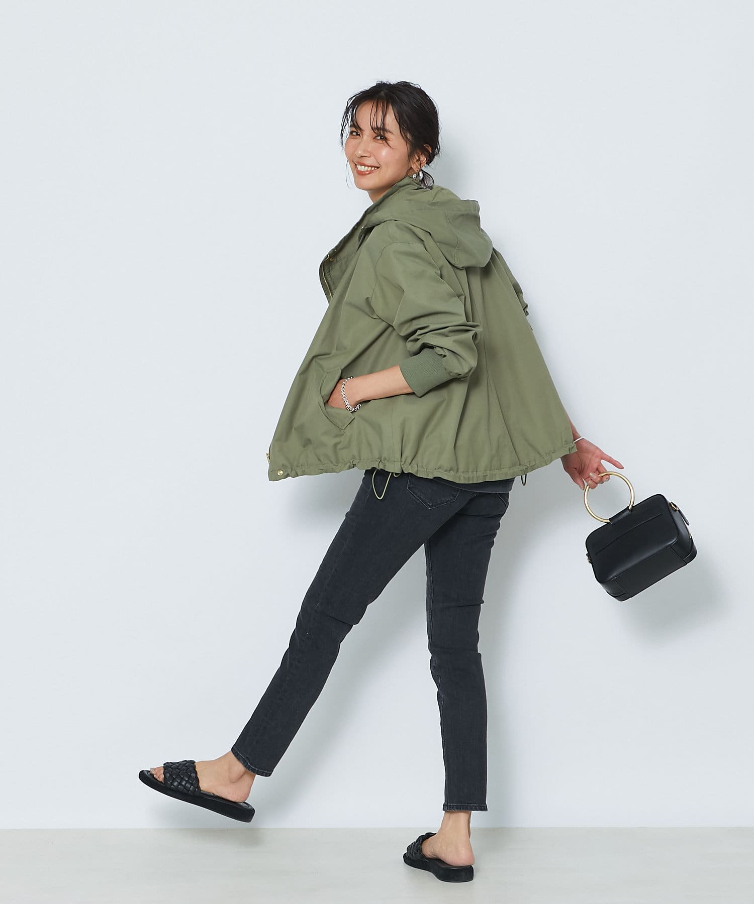裾はコードで調整できるので、コーディネートに合わせてシルエット変化を楽しめます。