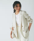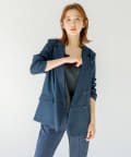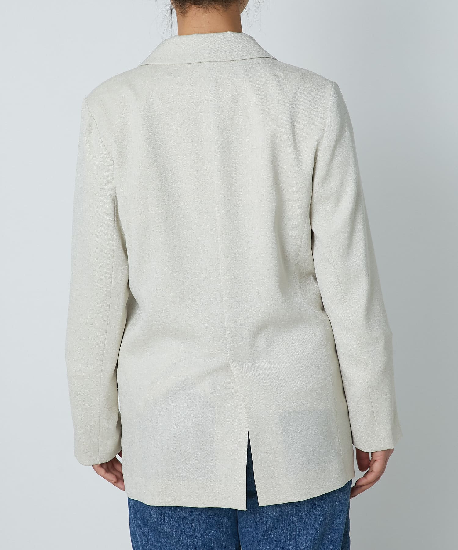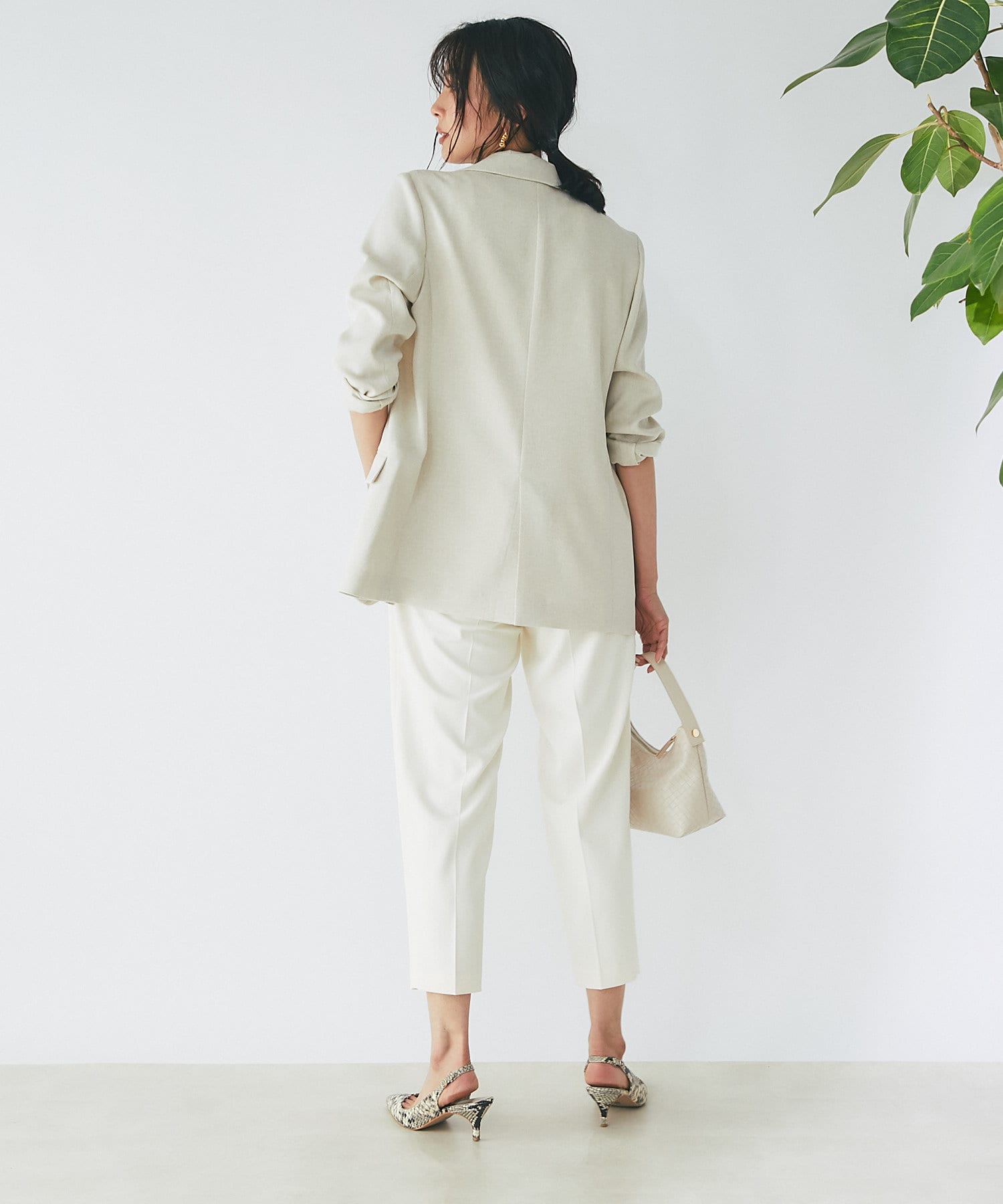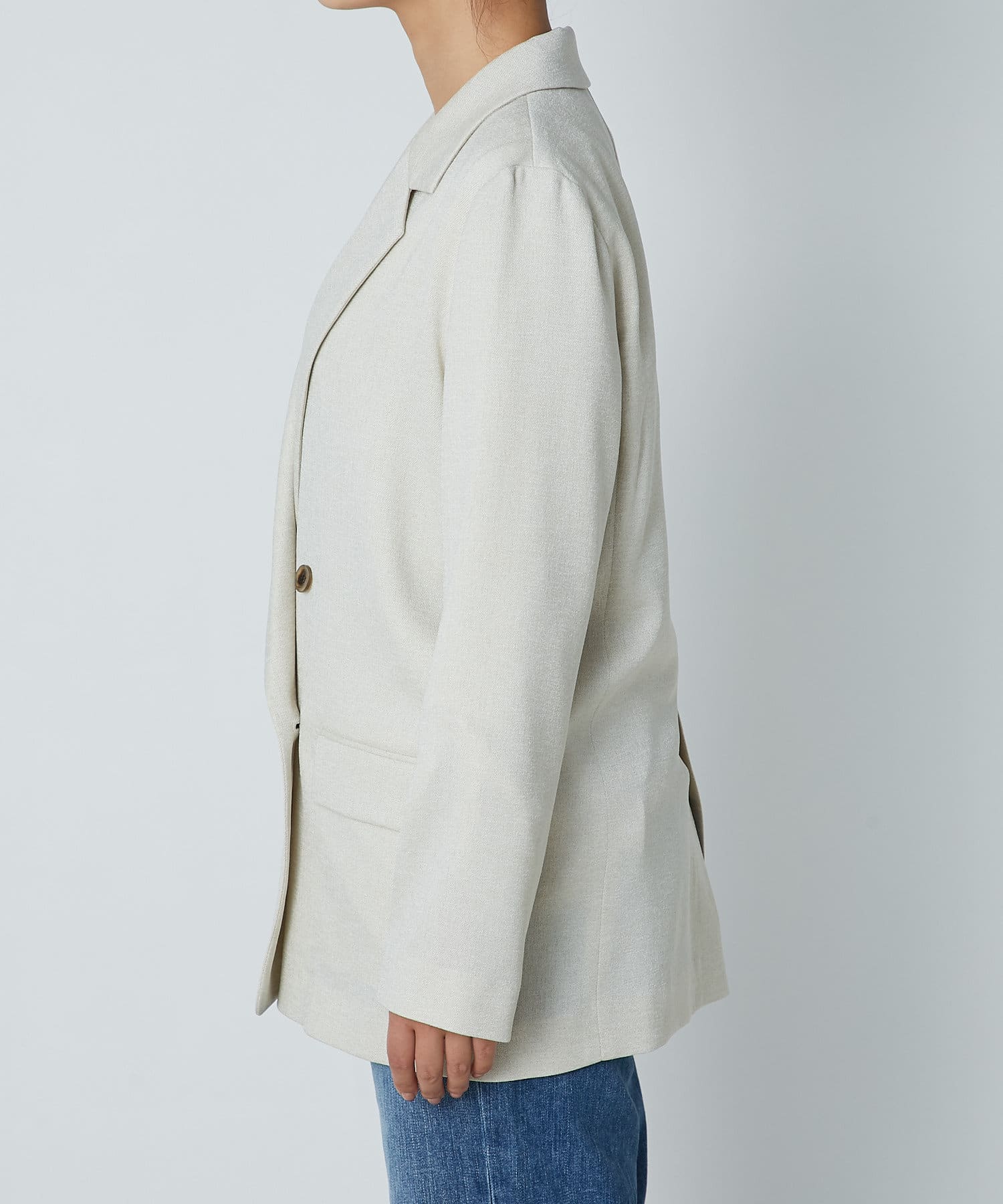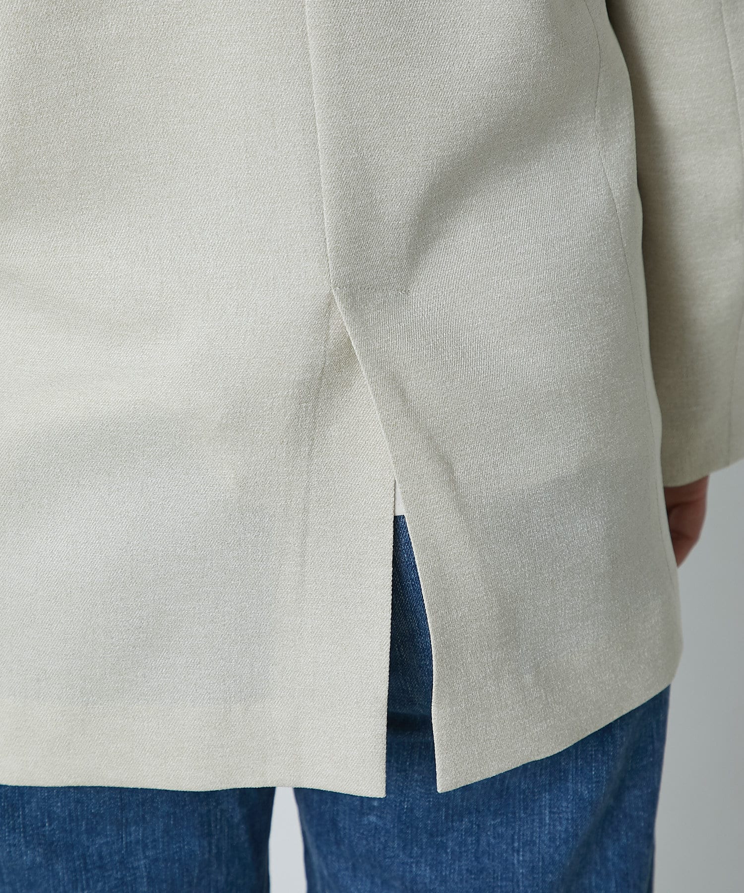羽織るだけでこなれ感のあるリネンライクジャケット。軽さとシワになりにくい素材が嬉しい一枚です。袖はややゆとりのあるシルエットです。薄手ですっきり見えるので、ジャケット特有の着られた感がなく着用できます。