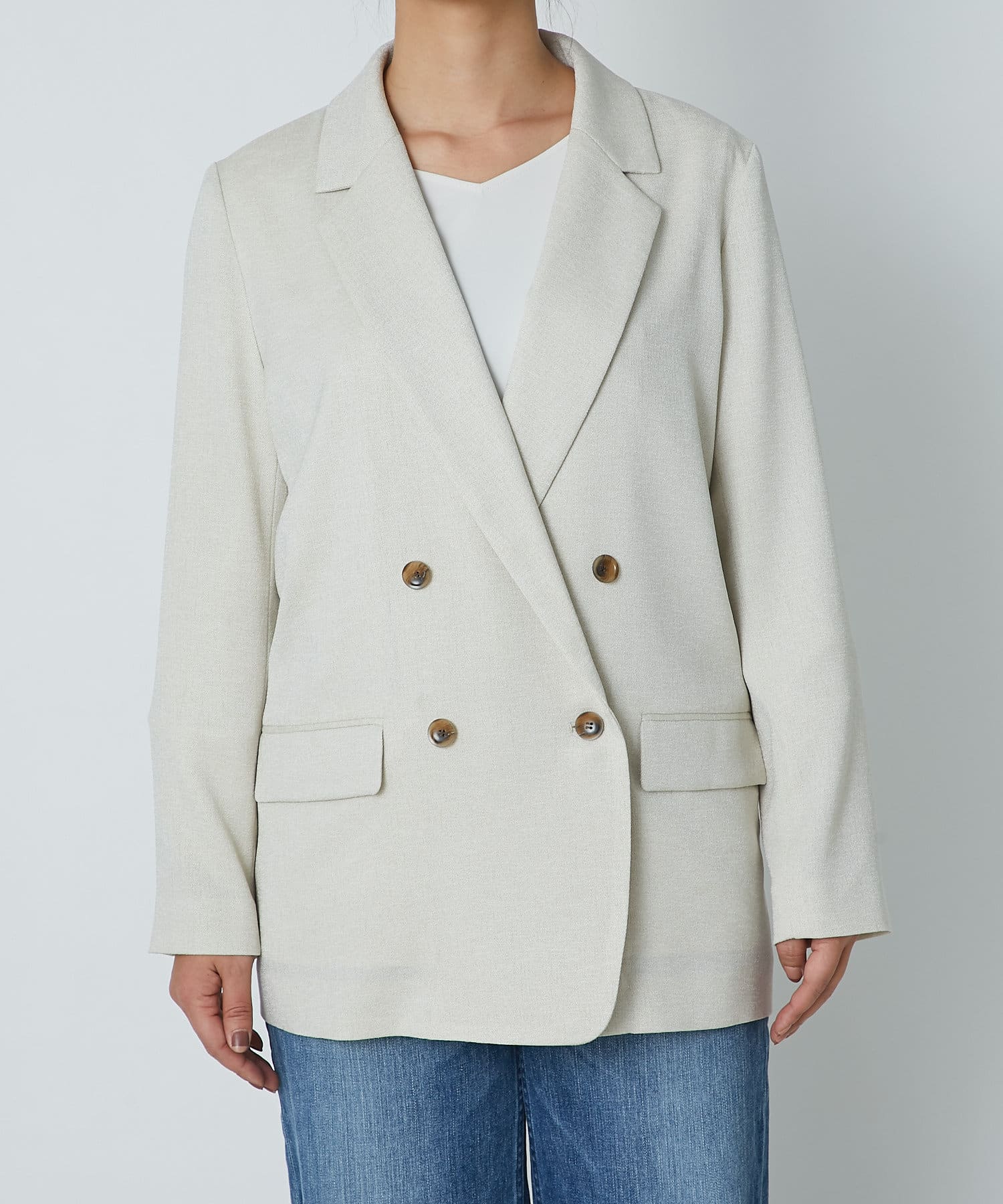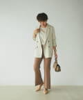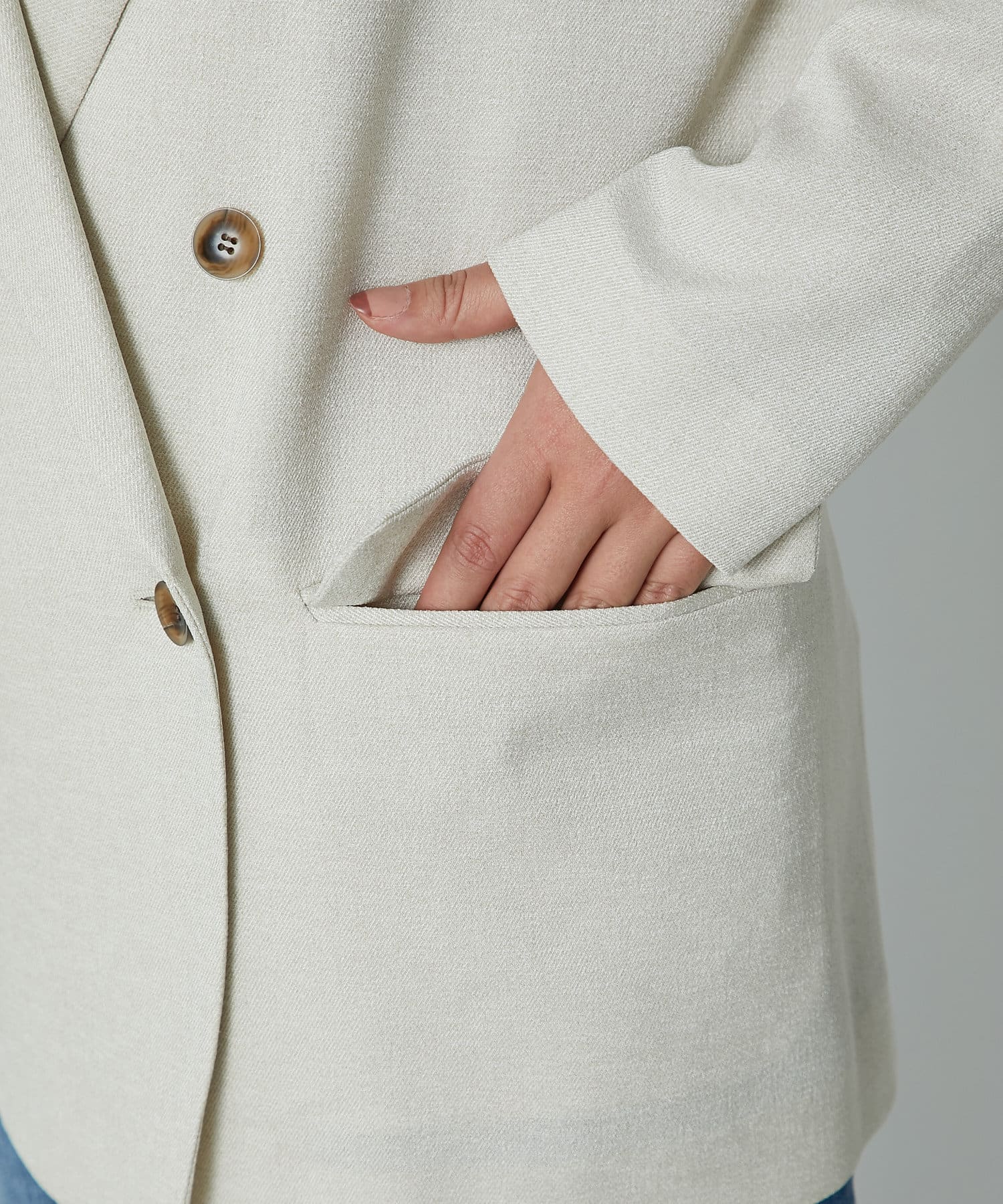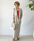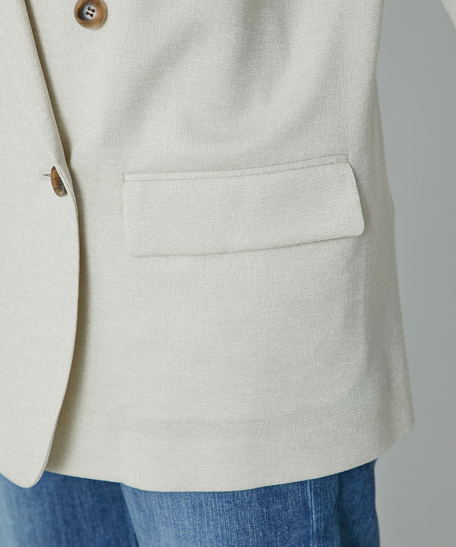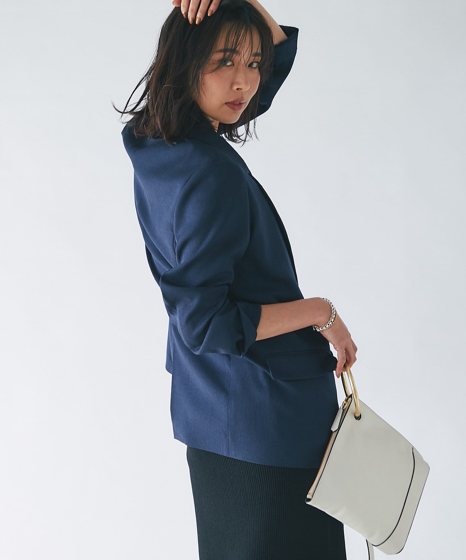 羽織るだけでこなれ感のあるリネンライクジャケット。軽さとシワになりにくい素材が嬉しい一枚です。袖はややゆとりのあるシルエットです。薄手ですっきり見えるので、ジャケット特有の着られた感がなく着用できます。