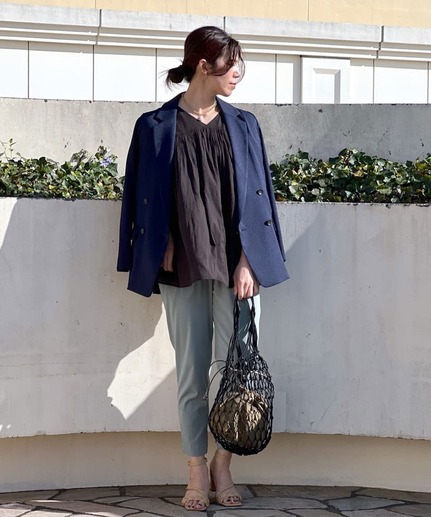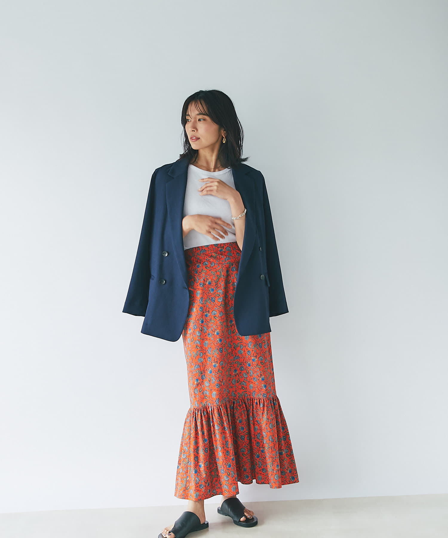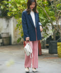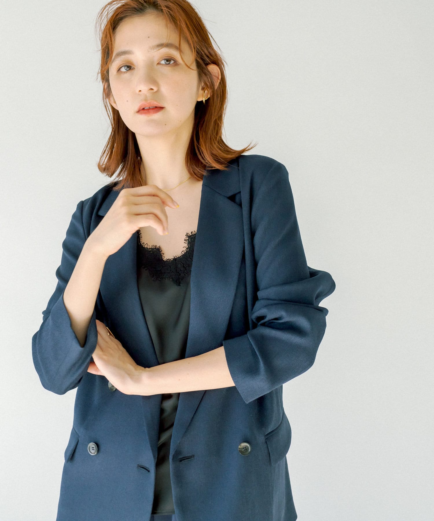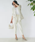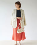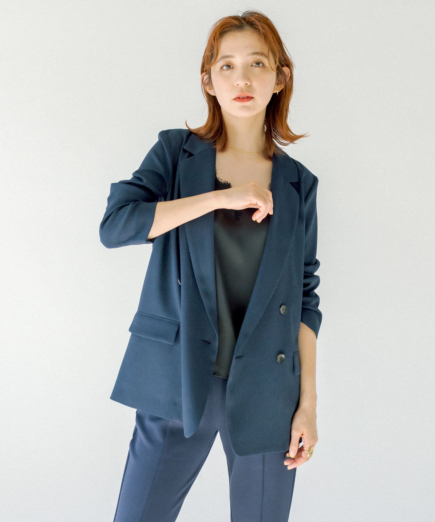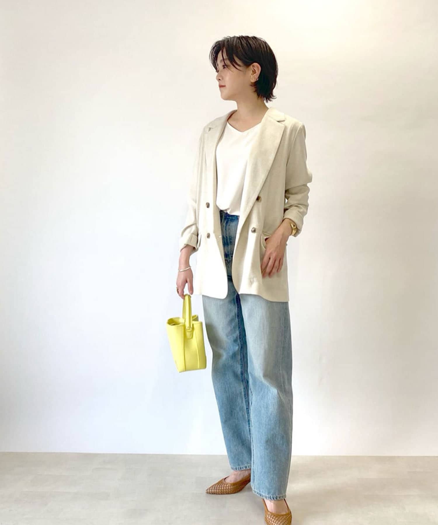 ジャケットを外しのアイテムとして着用するのが今季のトレンド。Tシャツにデニムとカジュアルなスタイリングに羽織るだけで、洗練されたコーディネートに。またオーバーサイズのジャケットは、ブラウスをトップスインしてタイトスカートやパンツとあわせると品よく着こなせます。オフィスからカジュアルまで着用シーンを選ばない万能ジャケットです。