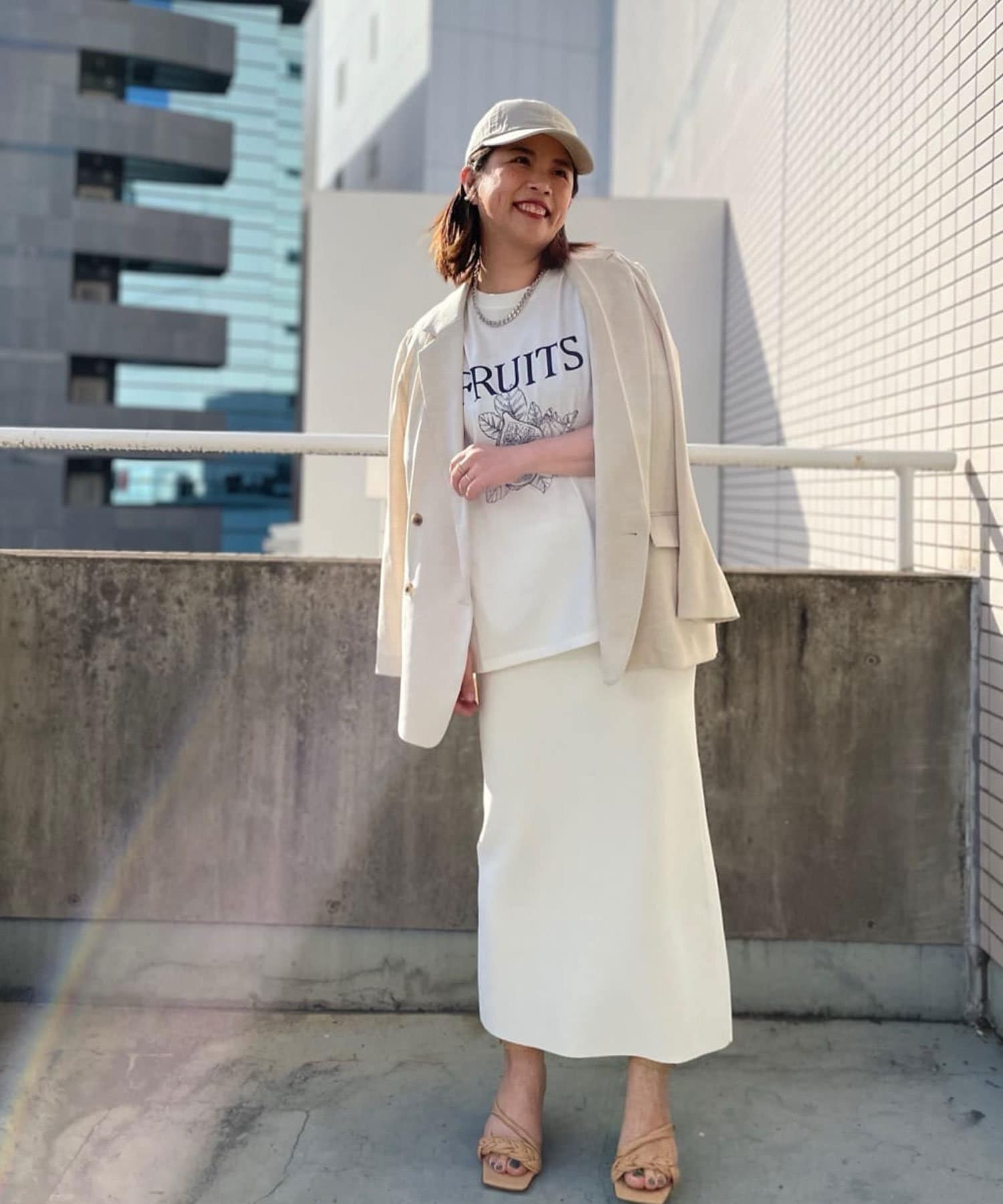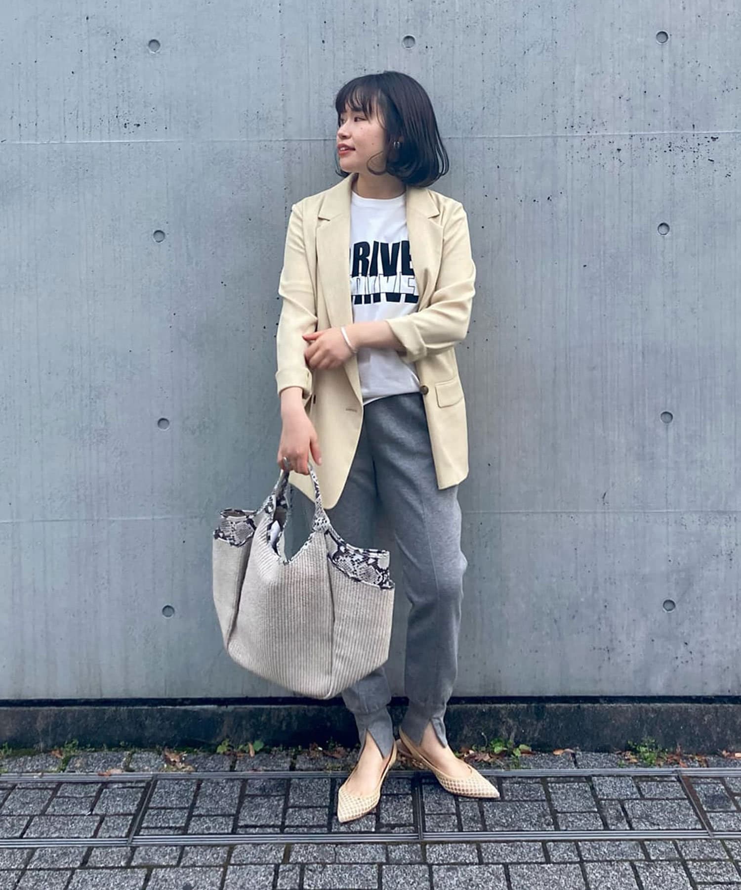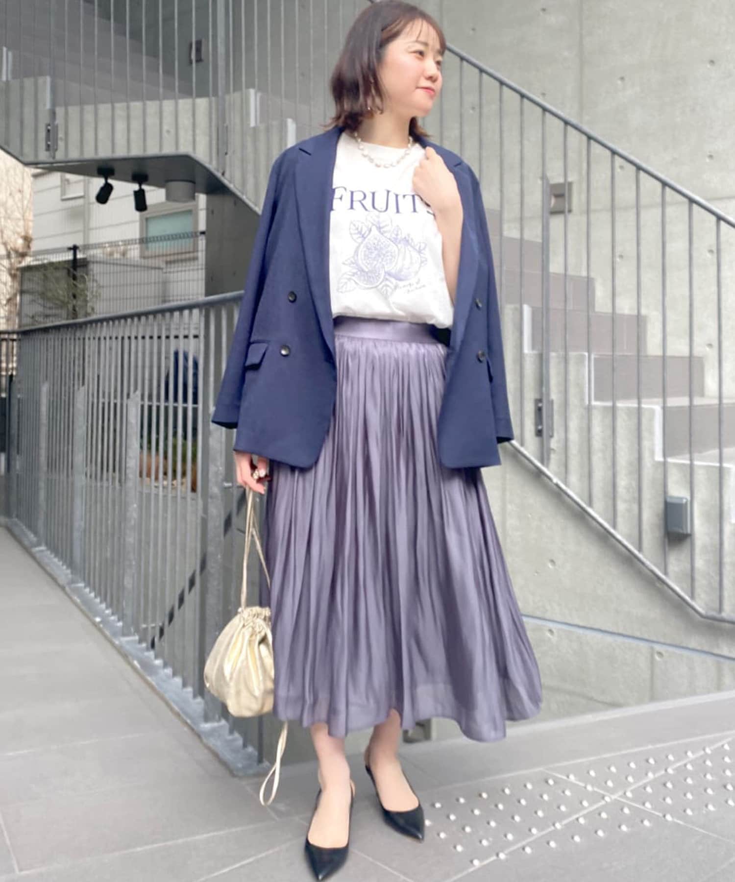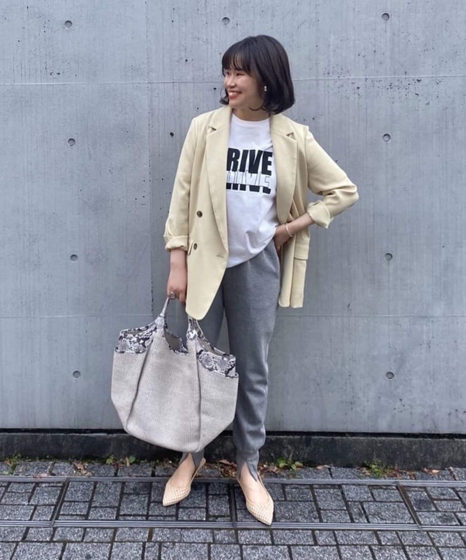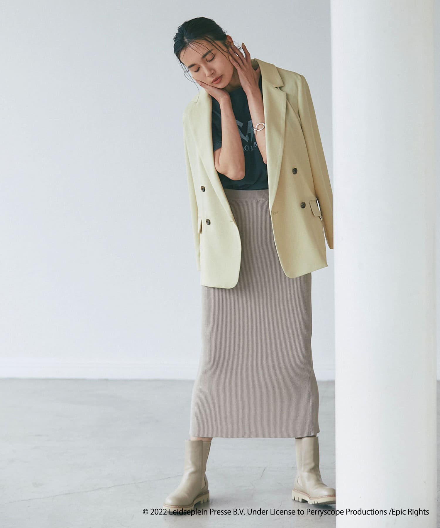 ジャケットを外しのアイテムとして着用するのが今季のトレンド。Tシャツにデニムとカジュアルなスタイリングに羽織るだけで、洗練されたコーディネートに。またオーバーサイズのジャケットは、ブラウスをトップスインしてタイトスカートやパンツとあわせると品よく着こなせます。オフィスからカジュアルまで着用シーンを選ばない万能ジャケットです。