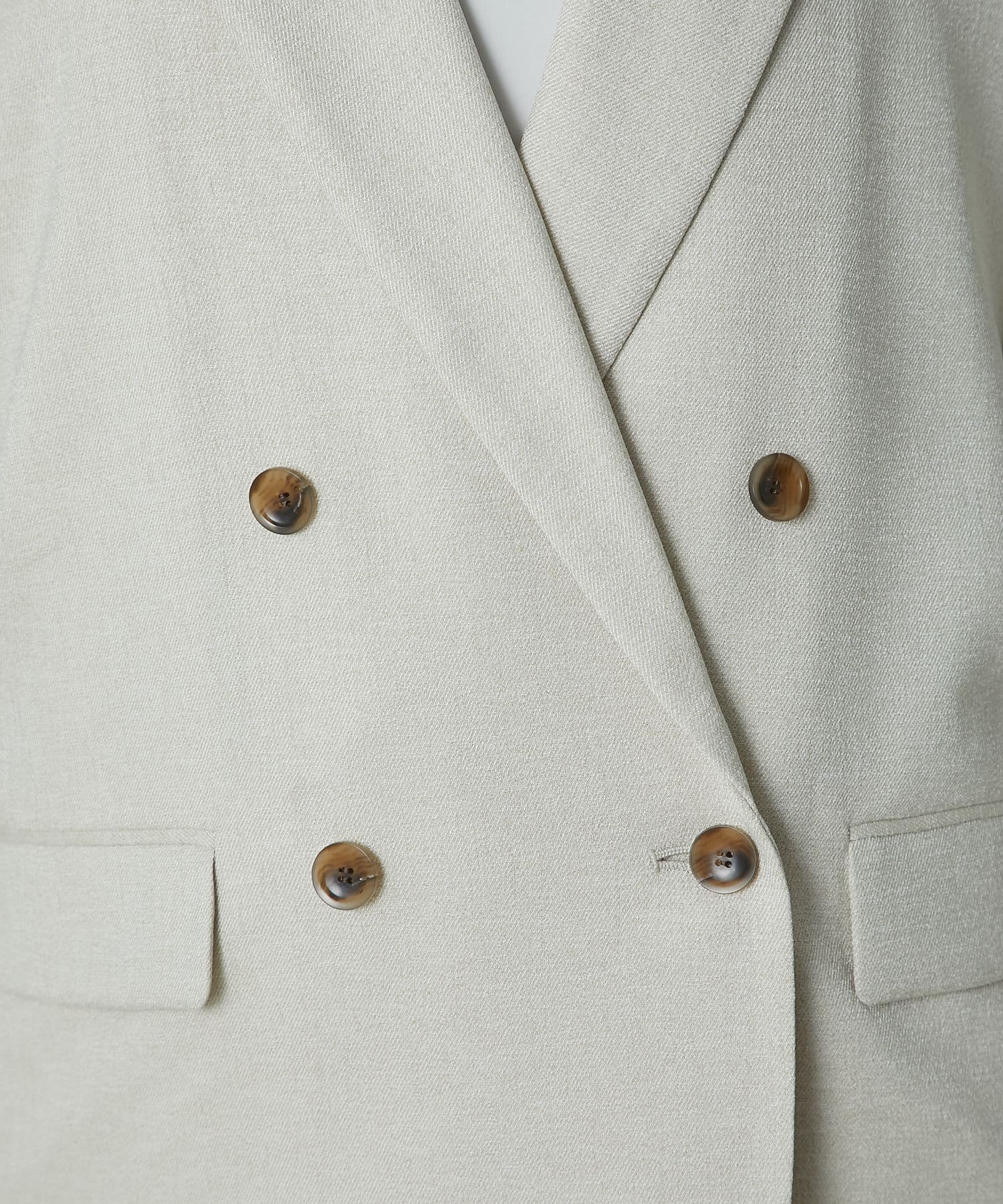 麻のようなナチュラルな風合いと軽いストレッチ性のあるオーバーサイズジャケット。軽い仕立てと程よくリラックス感のあるサイズは、羽織るだけで今っぽい着こなしが叶います。サラッとドライな肌ざわりの非常に軽い着心地で冷房対策にも便利なアイテム。シワにもなりにくくカーディガンのように気兼ねなく羽織っていただけます。
