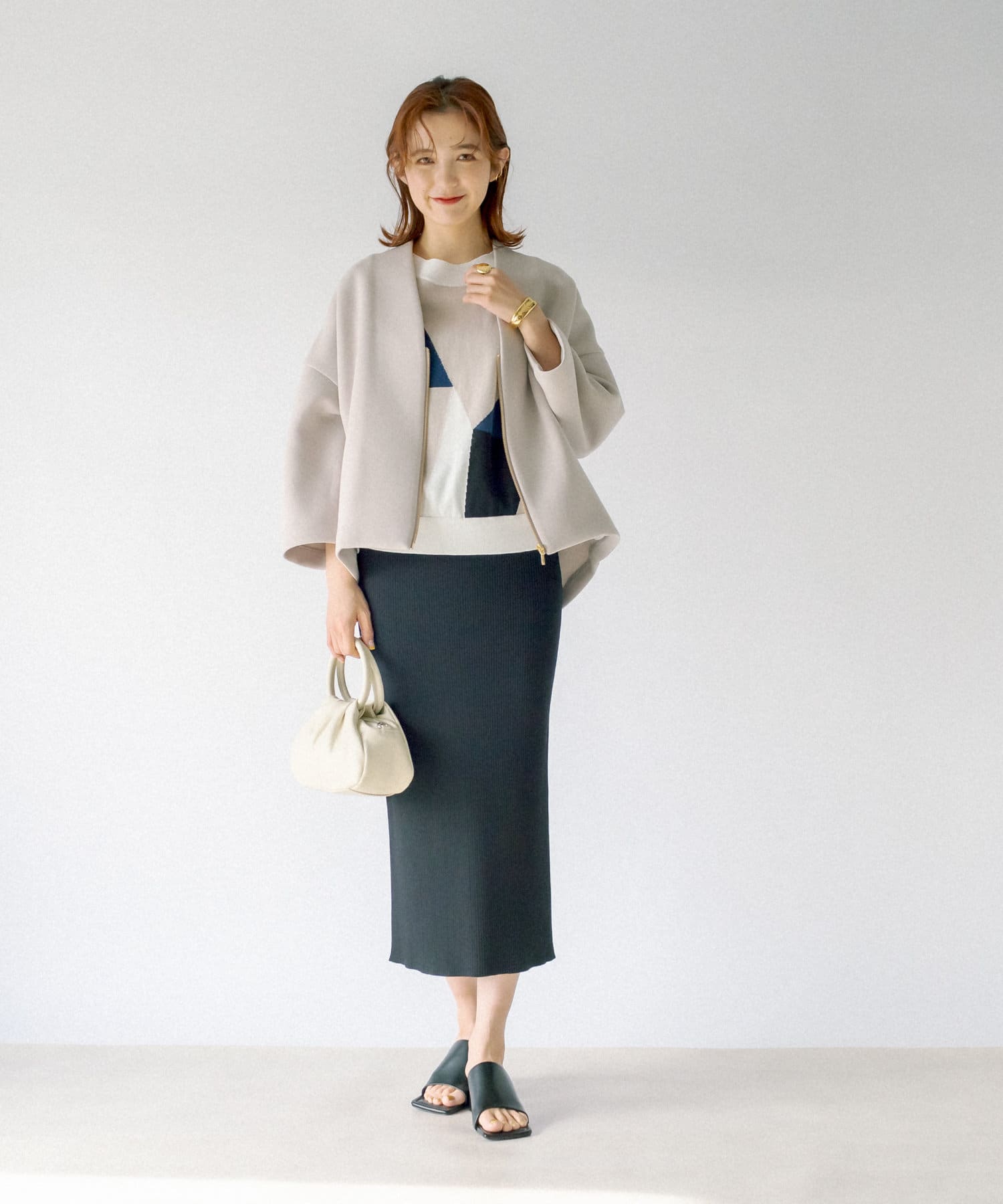 ショート丈なのでロングスカートやワンピースとのコーディネートに